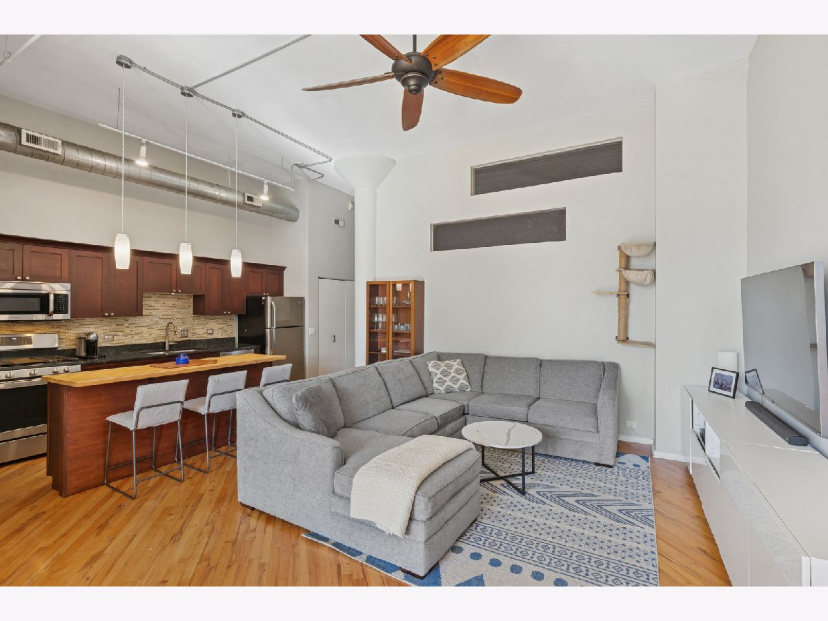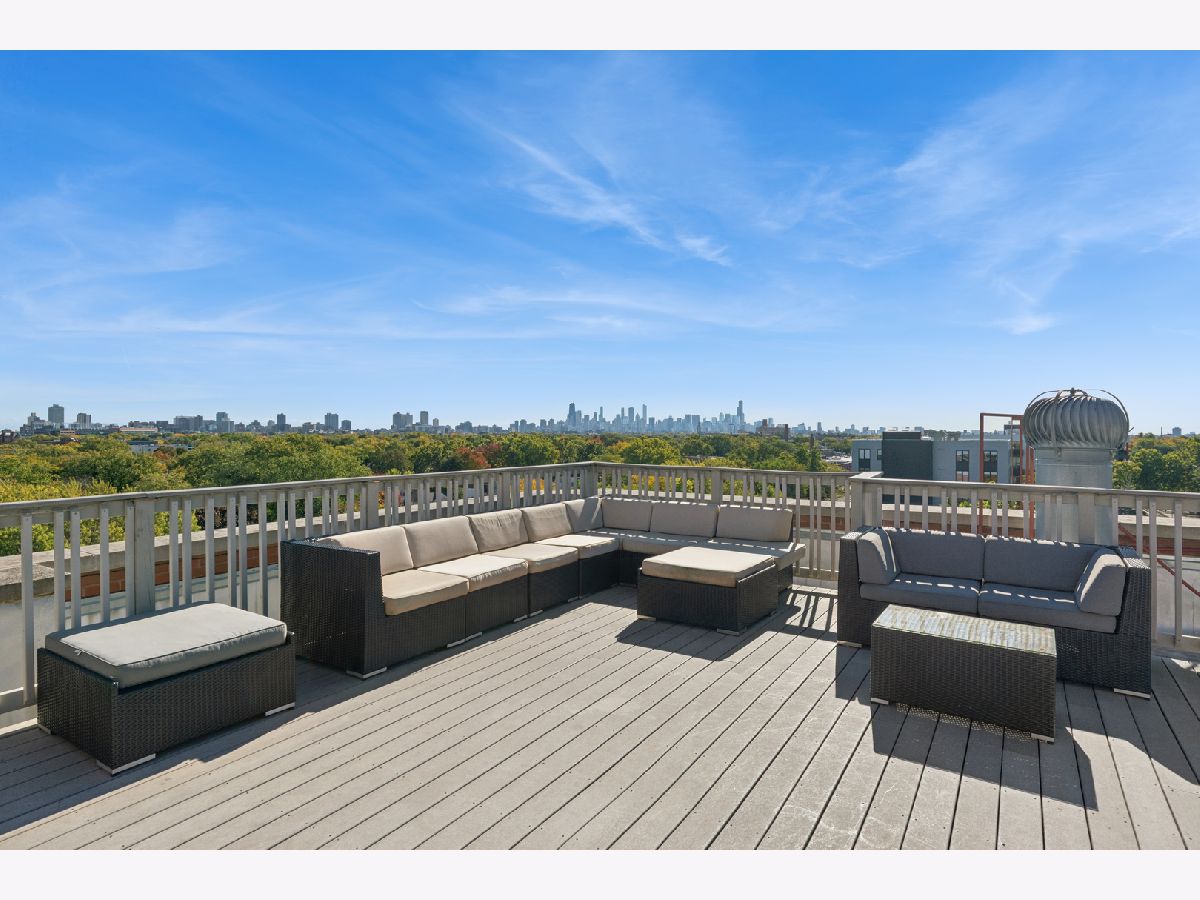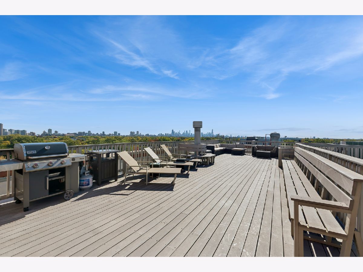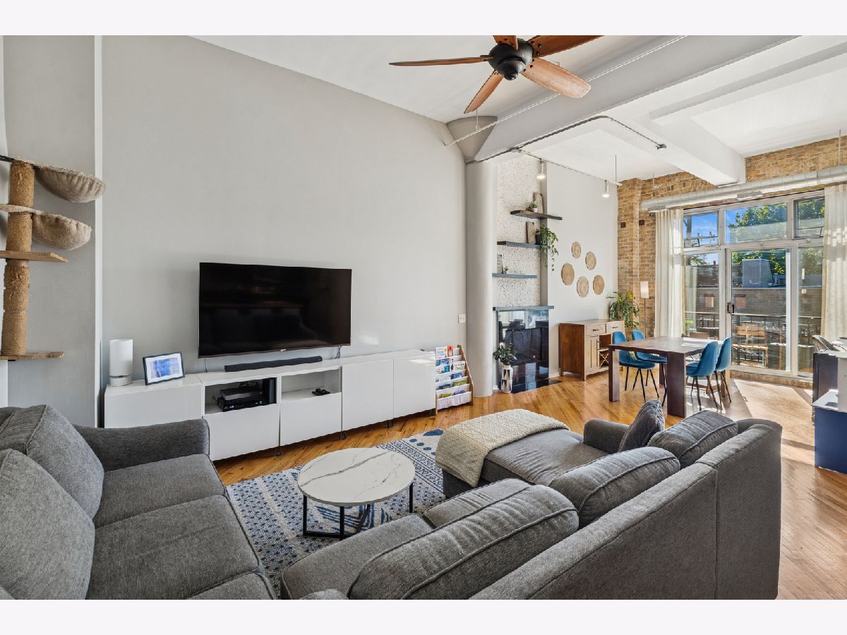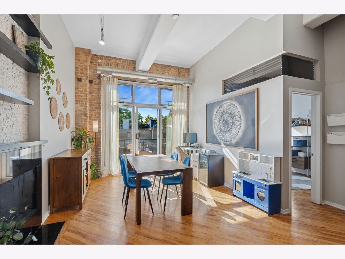 Loft living at its finest in this rarely available 2 bed/2 bath move-in ready unit in the iconic Bell and Howell lofts in the heart of North Center! Enter and find soaring 13 ft ceilings, exposed brick, and a private south-facing balcony. Spacious, light-filled open layout with flexible living and dining room spaces, hardwood floors throughout, gas fireplace, and an open concept kitchen with black granite counters, stainless steel appliances, abundant cabinetry + pantry, and a butcher block island with seating. The spacious primary bedroom has been fully enclosed with paneled windows allowing natural light to filter through. The large walk-in closet leads to a stunning 2024 renovation of the primary ensuite bathroom featuring new tub and matte black fixtures, new shower tiles & floor tiles, new mirrors, and a refreshed dual vanity with updated quartz countertop, double sinks and faucets. The in-unit washer/dryer is conveniently placed right outside the primary suite. The second bedroom is ideal for guests or a dedicated office, and is also fully enclosed with full height walls and paneled windows allowing for extra privacy. Additional updates include freshly painted walls and buffed hardwood floors (2020), new stove/oven (2024), in-unit washer/dryer (2020), A/C (2019), water heater and dishwasher (2016). A secure gated parking space conveniently located close to the building entrance is included in the price, and your guests will appreciate the on-site visitor parking. There is both a passenger and freight elevator for convenient moving, two bike rooms, and a renovated mailroom and lobby with secure entry. Reasonable assessments in a well-run building with cable, internet and parking all included in the assessment. Residents have access to an amazing common rooftop deck with a grill, lounge seating, sweeping skyline views, trex decking, common area bathroom, and the building's beloved clock tower. Located in the coveted Coonley School District, with the Brown Line, Metra, Trader Joe's, parks, restaurants, breweries, and all that North Center offers. This unit has a rare combination of historic loft character with modern comfort in a hard to beat location!