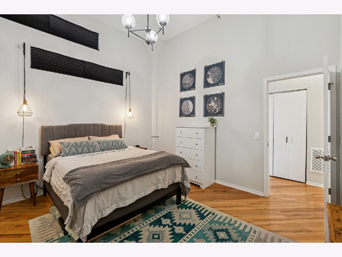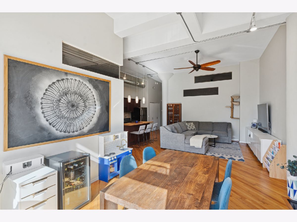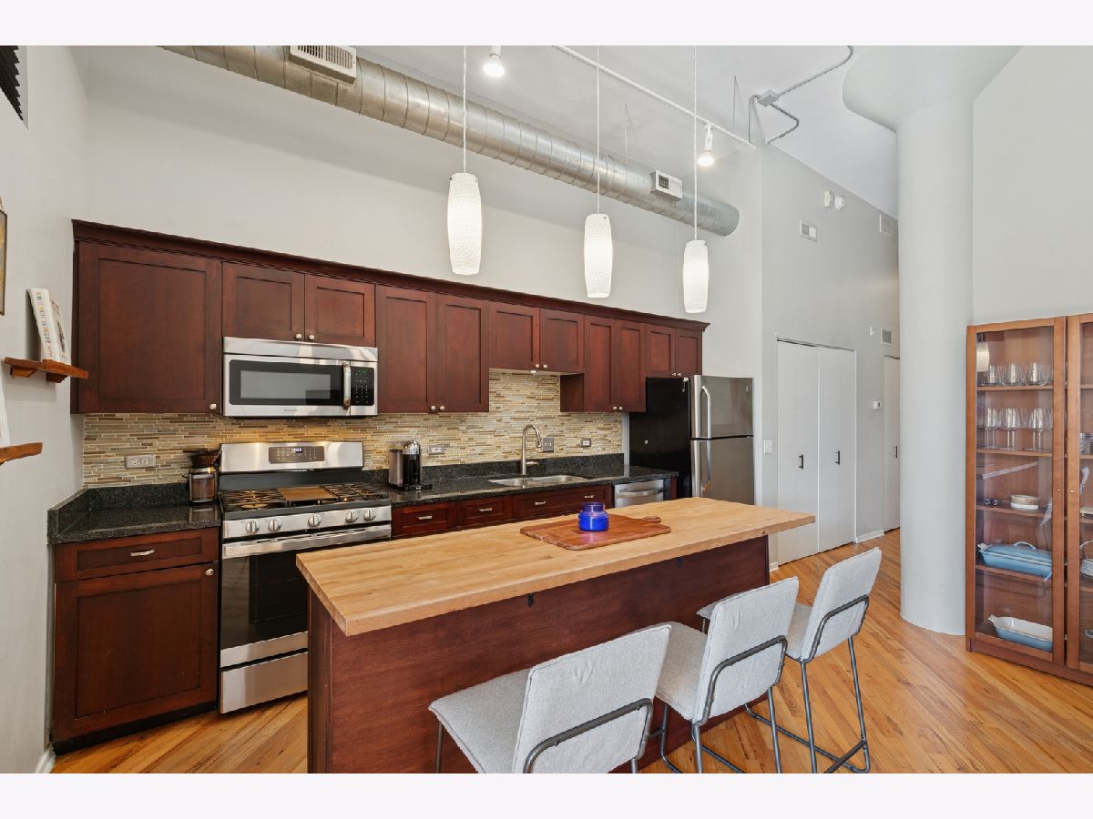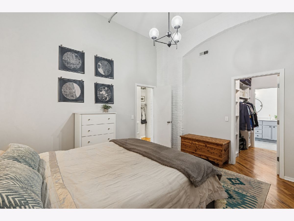 Loft living at its finest in this rarely available 2 bed/2 bath move-in ready unit in the iconic Bell and Howell lofts in the heart of North Center! Enter and find soaring 13 ft ceilings, exposed brick, and a private south-facing balcony. Spacious, light-filled open layout with flexible living and dining room spaces, hardwood floors throughout, gas fireplace, and an open concept kitchen with black granite counters, stainless steel appliances, abundant cabinetry + pantry, and a butcher block island with seating. The spacious primary bedroom has been fully enclosed with paneled windows allowing natural light to filter through. The large walk-in closet leads to a stunning 2024 renovation of the primary ensuite bathroom featuring new tub and matte black fixtures, new shower tiles & floor tiles, new mirrors, and a refreshed dual vanity with updated quartz countertop, double sinks and faucets. The in-unit washer/dryer is conveniently placed right outside the primary suite. The second bedroom is ideal for guests or a dedicated office, and is also fully enclosed with full height walls and paneled windows allowing for extra privacy. Additional updates include freshly painted walls and buffed hardwood floors (2020), new stove/oven (2024), in-unit washer/dryer (2020), A/C (2019), water heater and dishwasher (2016). A secure gated parking space conveniently located close to the building entrance is included in the price, and your guests will appreciate the on-site visitor parking. There is both a passenger and freight elevator for convenient moving, two bike rooms, and a renovated mailroom and lobby with secure entry. Reasonable assessments in a well-run building with cable, internet and parking all included in the assessment. Residents have access to an amazing common rooftop deck with a grill, lounge seating, sweeping skyline views, trex decking, common area bathroom, and the building's beloved clock tower. Located in the coveted Coonley School District, with the Brown Line, Metra, Trader Joe's, parks, restaurants, breweries, and all that North Center offers. This unit has a rare combination of historic loft character with modern comfort in a hard to beat location!