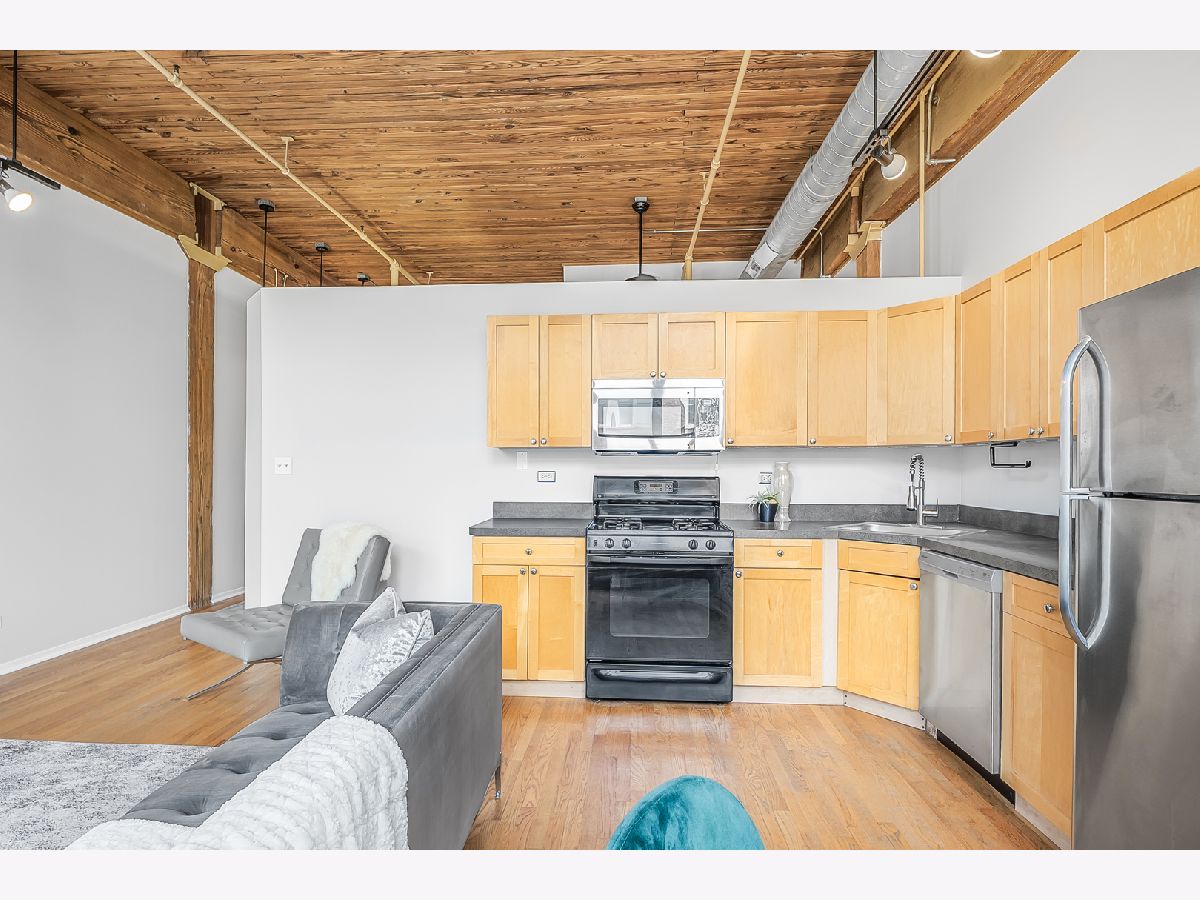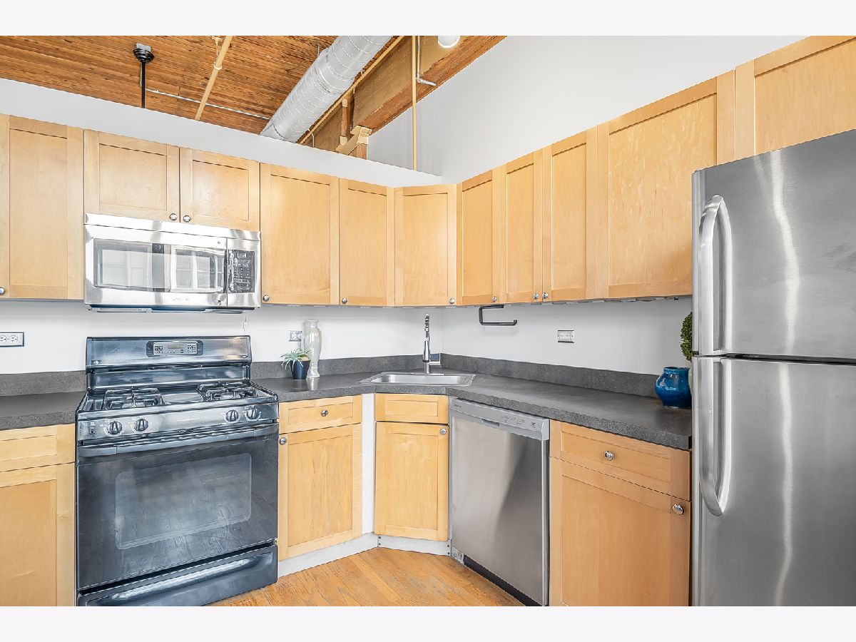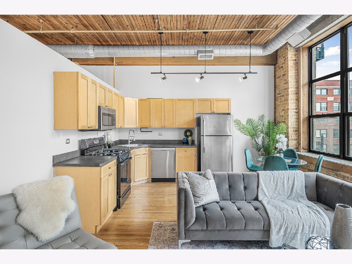 Located in the heart of the South Loop, this stylish, investor friendly 1 bed, 1 bath timber loft has a cool urban vibe with exposed brick and original tongue in groove ceiling. This unit is thoughtfully laid out, and gets a ton of sunlight from the large windows. The kitchen features maple cabinets, and it connects to the large living room with gas fireplace. The bedroom is spacious enough to fit a king size bed, and has a large closet. In-unit laundry and a great balcony complete this unit. Heated garage parking and large storage unit included in price! Assessments include high speed internet, cable TV, and water. The building features Butterfly entry/intercom system, updated fitness center, and secure bike room. All just steps away from public transportation, the lakefront, museum campus, Soldier Field, Grant Park, dining, shopping, and so much more!