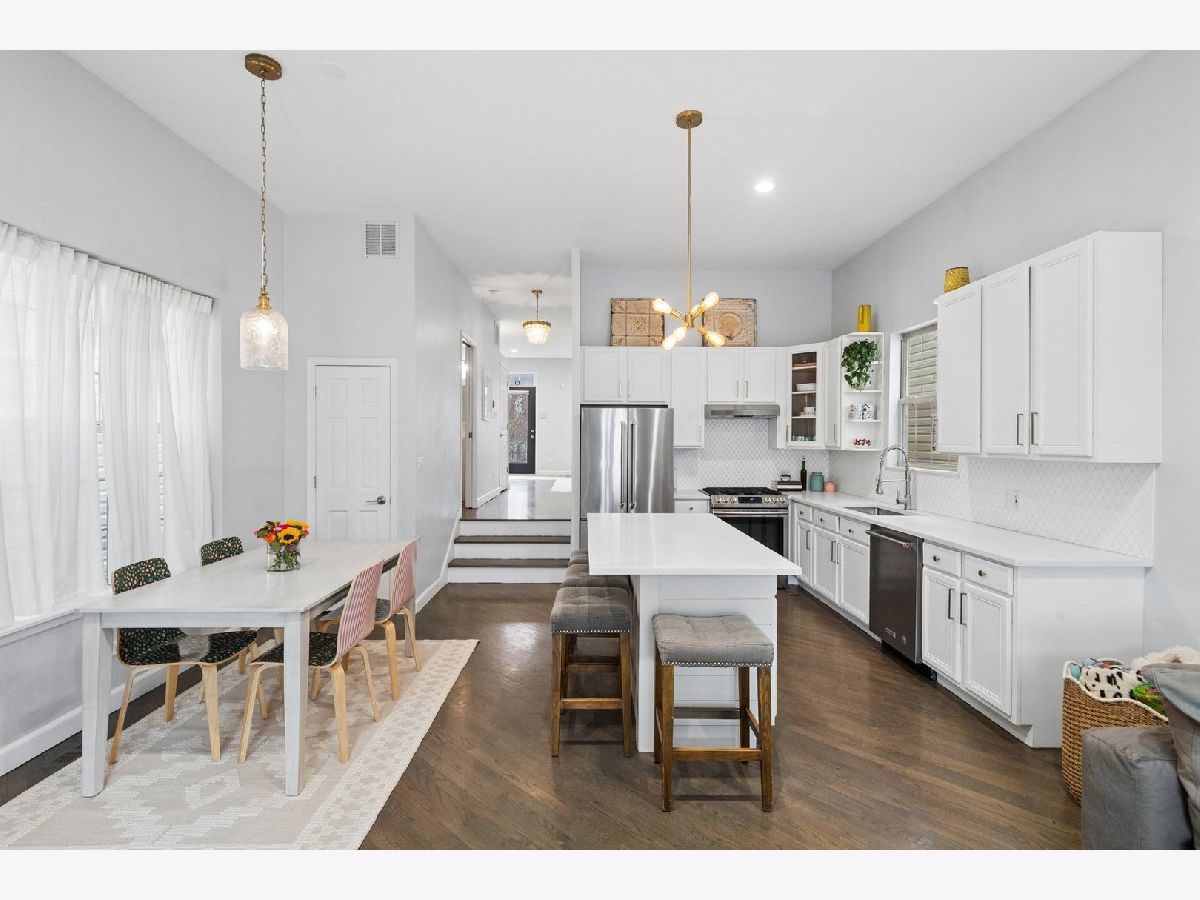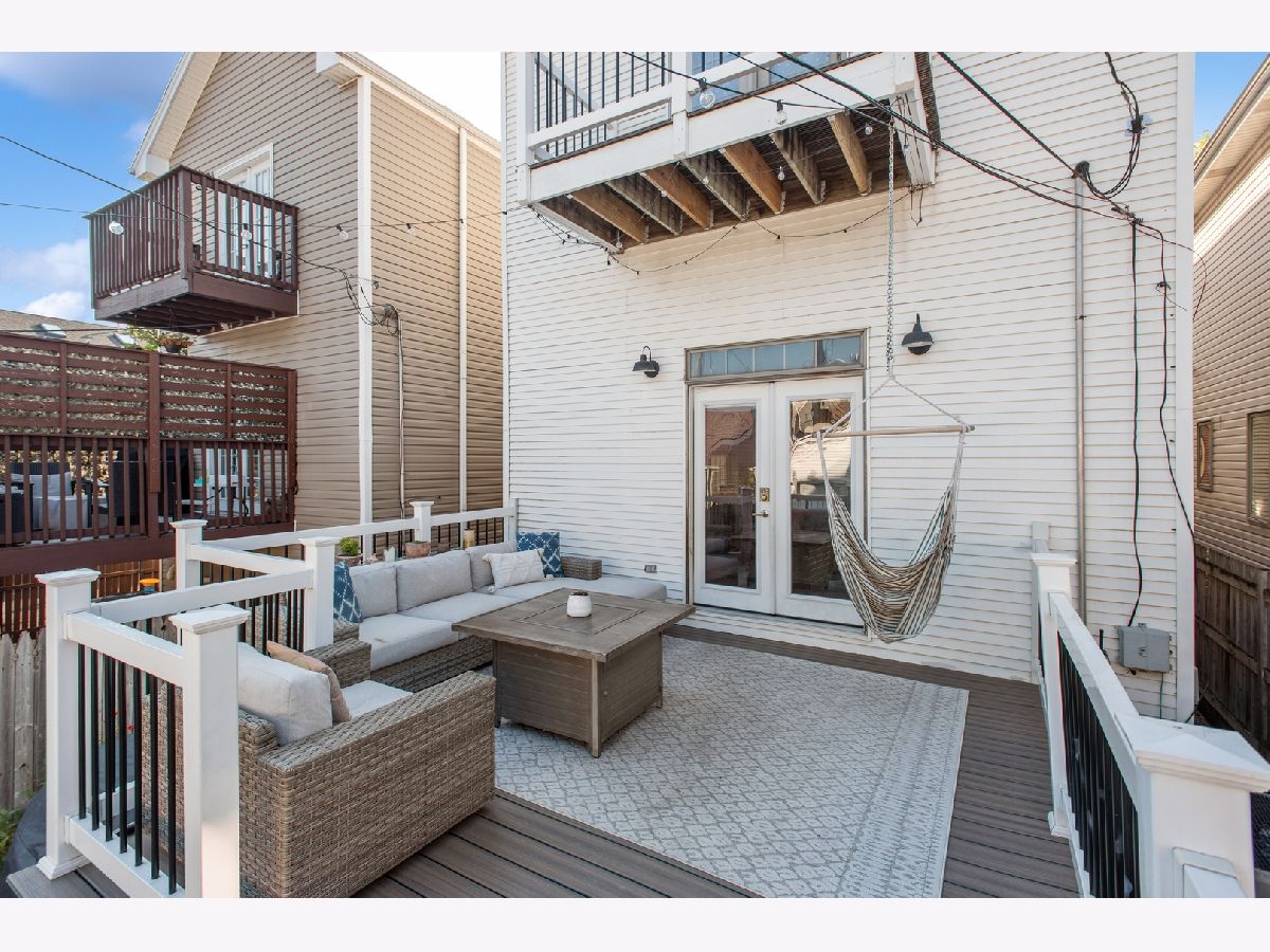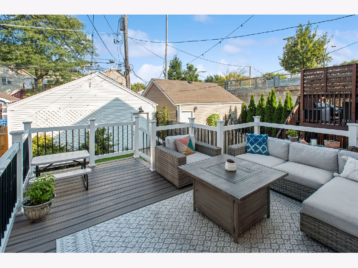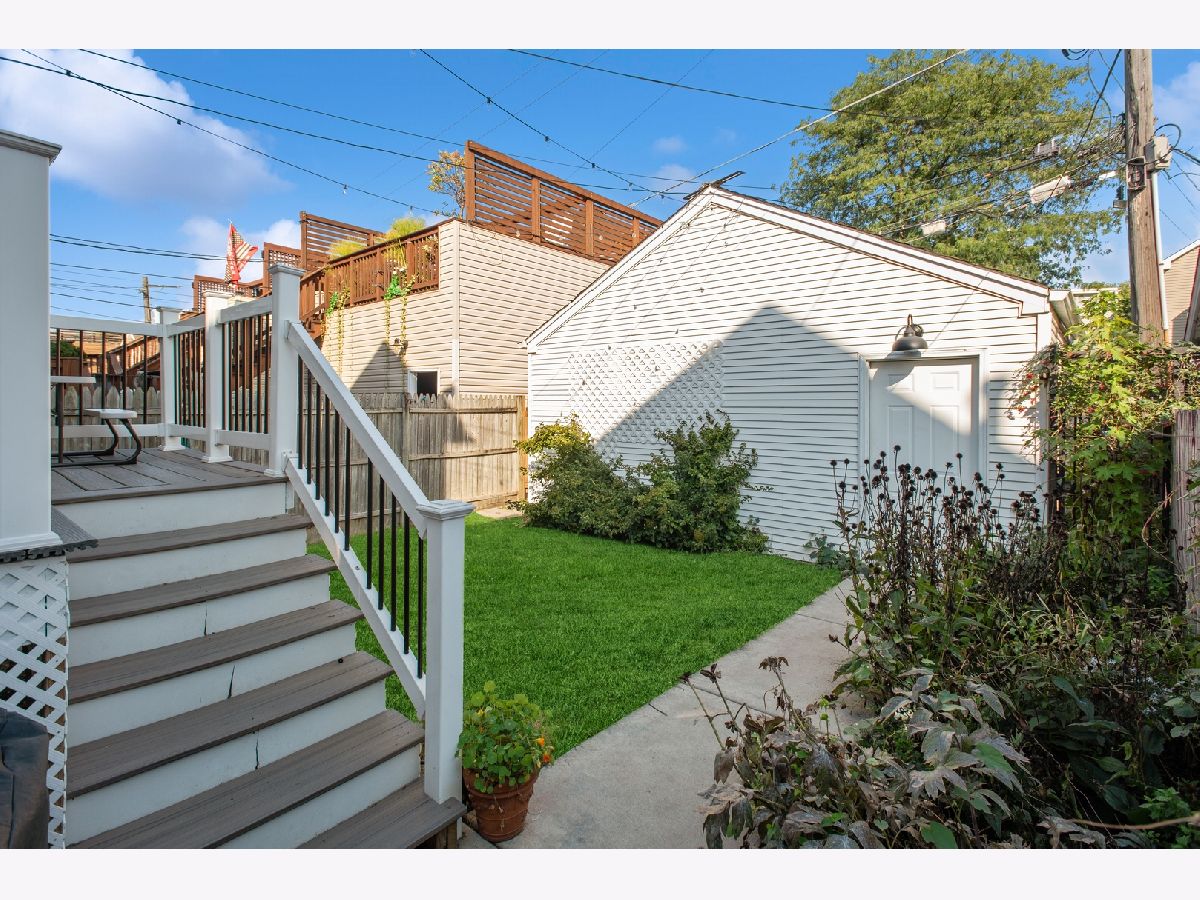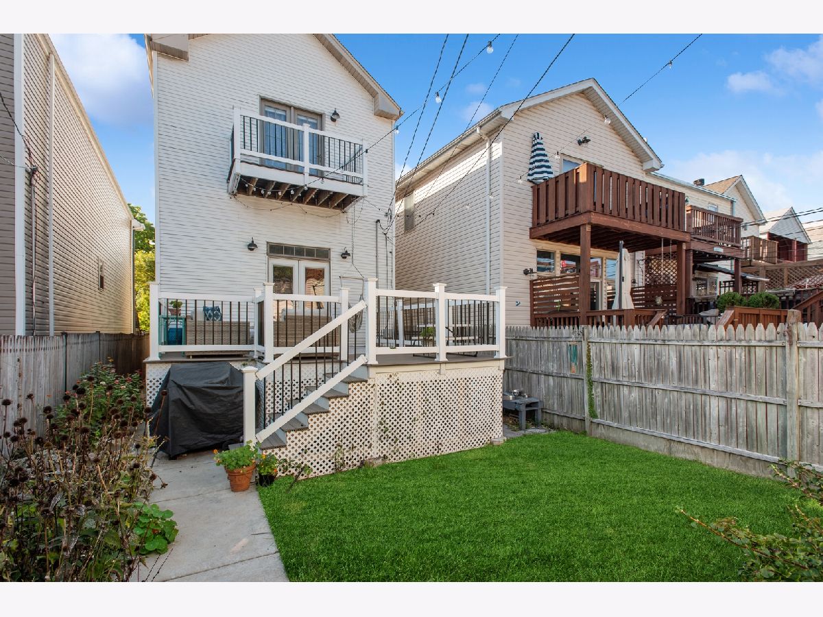 Fantastic single-family home on a picturesque, tree-lined street in the heart of prime Logan Square, just steps from the 606! This beautifully updated home offers an ideal open-concept main level filled with natural light, featuring an inviting sun-drenched living room with soaring vaulted ceilings, a modern updated white kitchen, and a spacious family room with dedicated dining area, pantry, fireplace, and beautiful hardwood flooring throughout. Seamlessly extending from the main living space, step out onto an expansive deck overlooking a rare, true backyard with lush grass-perfect for entertaining, summer gatherings, and everyday outdoor living. A two-car garage adds convenience and functionality. A striking center-entry staircase with skylight leads to the second level, where you'll find three generously sized bedrooms. The exceptional primary suite is a true retreat, showcasing vaulted cathedral ceilings, a beautiful bay window, a walk-in closet, and a fully gut-renovated en-suite bath complete with skylight. The finished lower level offers incredible additional living space, including a large family room with a built-in bar, gas fireplace, a spacious fourth bedroom, and a full bathroom-ideal for guests, office space, or flexible living arrangements. Unbeatable location with easy access to the 606, Blue Line, and Logan Square's vibrant dining scene, coffee shops, breweries, boutiques, and more-this is city living at its finest!