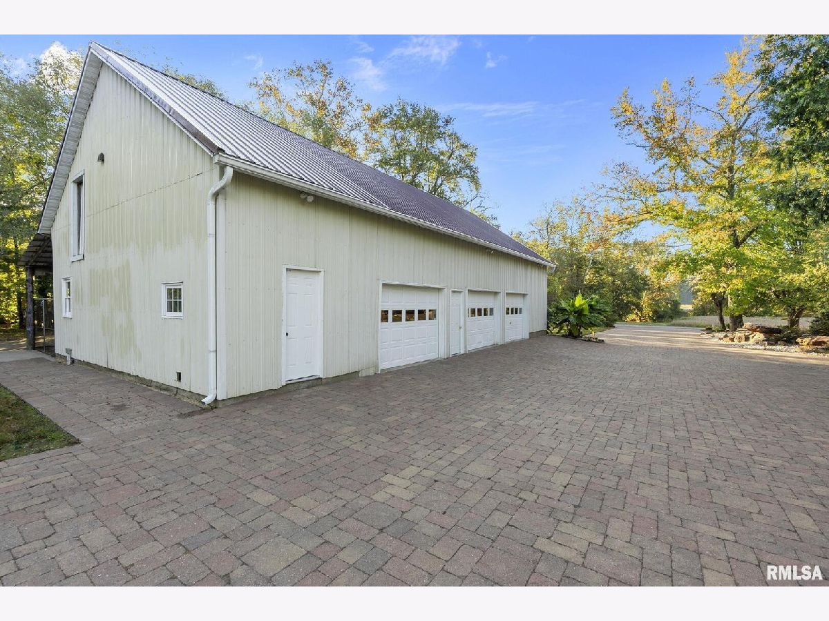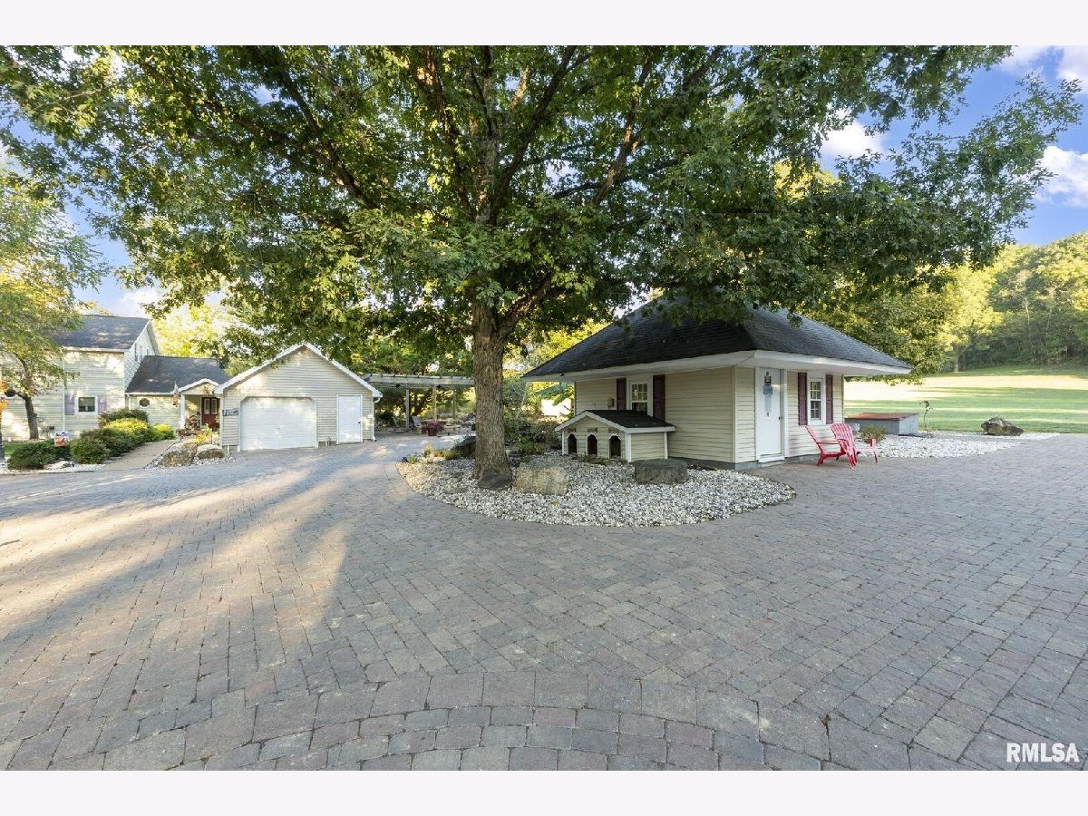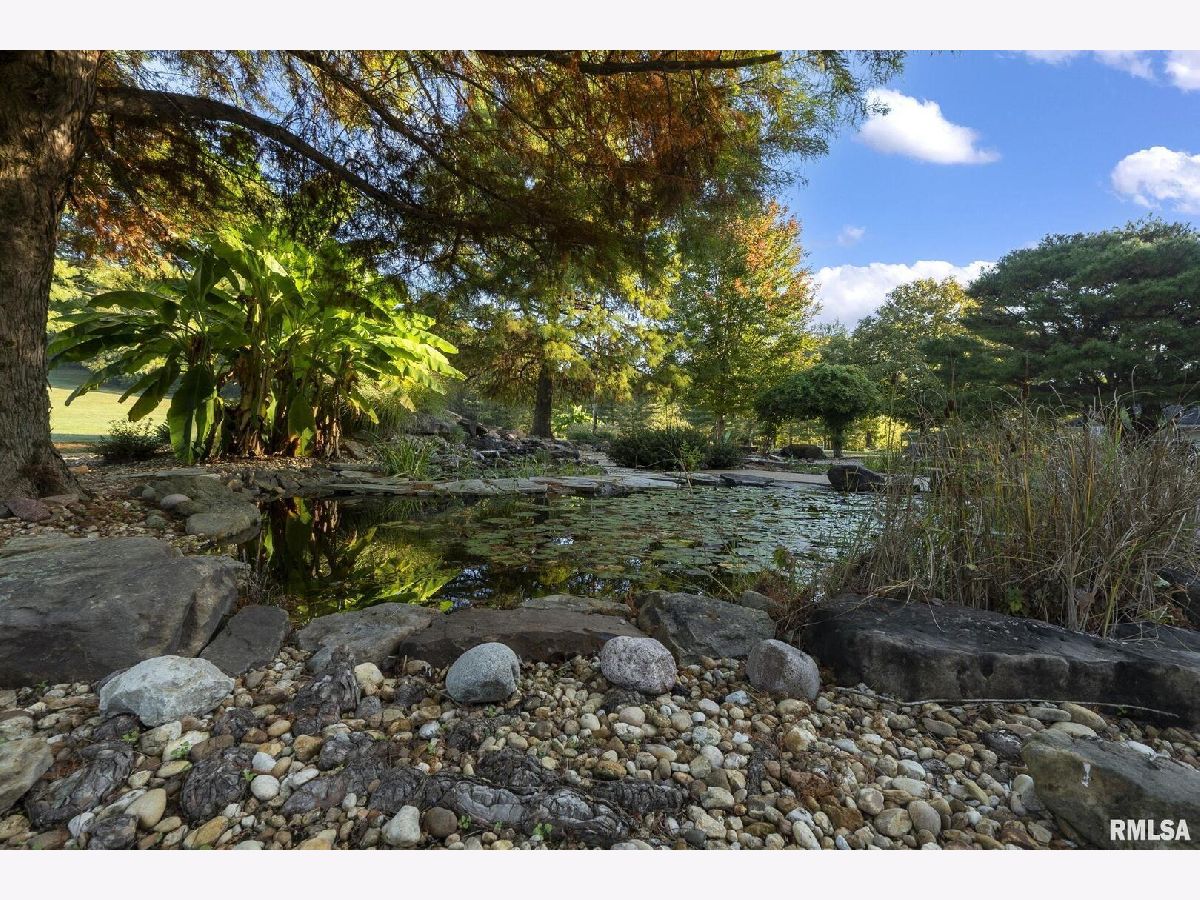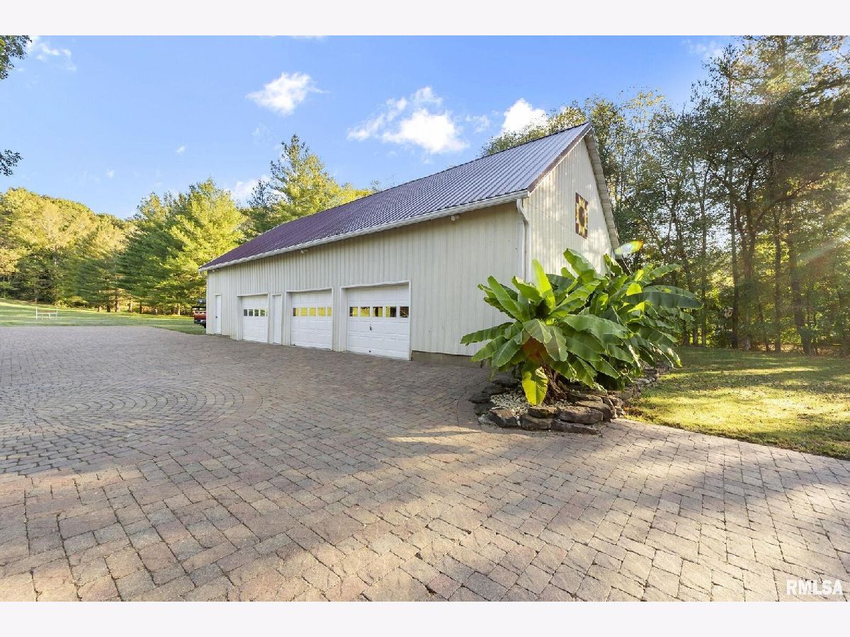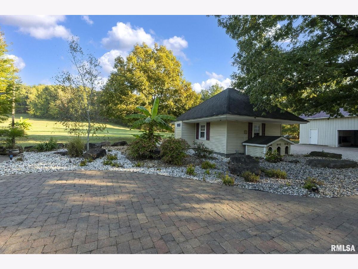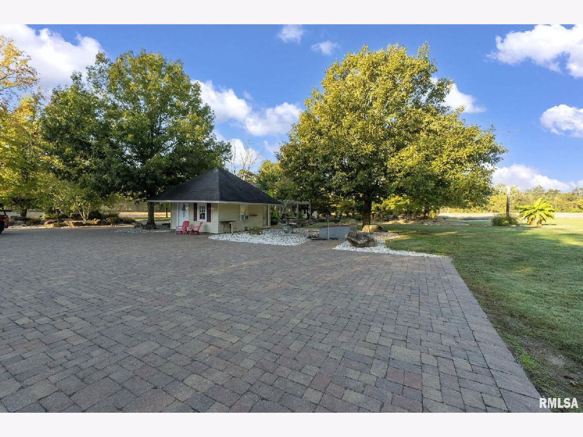 Your inner peace starts when you head down a picturesque country road, canopied by mature trees that lead you to your 21.5 +/- acre property waiting to erase the stresses of the day! This custom home and property were hand-crafted by the current owner, and no corners were cut. Natural landscaping stone touches every corner of this spacious home and picturesque patio. Words are not able to do justice to the tranquil and lush outdoor patio showcasing koi ponds connected by streams, various waterfalls, and water features. A gazebo area that features a custom-made hexagon stone table with ample seating, along with a custom serving table. Steps away from the house, you will find 3 outbuildings for all your needs. Building 1 boasts a 30'x60' with a concrete floor, insulated and heated. Complete with 3 automatic garage doors, 2 walk-in doors, and a 13'x60' lean-to off the back side. Building 2 is 22'x18' with a concrete floor, a garage door, and walk doors. Building 3 is 18'x16', perfect for a wood shop or mancave/she-shed. A concrete floor covered with easy walk foam floor, electric, heat, and A/C. The driveway boasts custom-designed pavers that add a beautiful touch as you drive into the property. The remaining property has a small ag field that is currently being used for farming, a great wooded area that borders some of the Shawnee Nation Forest, and a fully stocked pond. The pond is surrounded by cypress trees and has its own dock, a 5-hp commercial aerator, and is fully stocked! This pond is full of large Catfish, Bluegill, and Bass! Whether you enjoy hunting, fishing, or just enjoying the peaceful outdoors, this property has it all. The home boasts approximately 3,800 square feet of custom high-end touches that are tastefully rustic and extremely well done. As you enter the great room, you will fall in love with the natural stone fireplace that encompasses the entire wall and includes a custom barn wood firebox. The floors are gorgeous natural stone that span the entirety of this main floor. This open concept room includes a large kitchen area and is the perfect marriage of high-end touches. The granite countertops are highlighted on the very large entertaining island that seats 6, while the cooking island allows you to interact with guests while preparing meals. Off the side of the island area is a spacious dining area with a beautiful view through the picture windows looking out to the patio area. A step up from the great room takes you into a perfect private dining area surrounded by barn wood wainscoting. Onward takes you to another sitting area and a gorgeous fireplace! The theme of natural stone and rustic feel continues throughout this level. The main floor is complete with a laundry room, office, full bath off the great room, and a master suite with another full bath. The master suite is as rustic and cozy as it gets. With reclaimed barn wood, rustic barn tin, and natural stone work in the master bath, this is a must-see master area! Upstairs features 4 more bedrooms and a full bath! Perfect for hosting guests and family. This whole level of space provides plenty of privacy and space for your family or guests. This property truly has so much to offer and is a must-see to appreciate the true beauty the current owner has put into it.