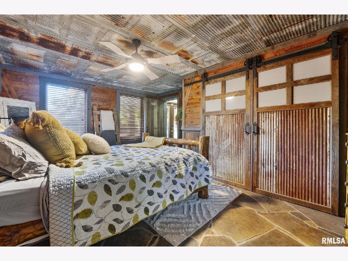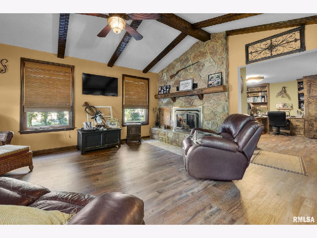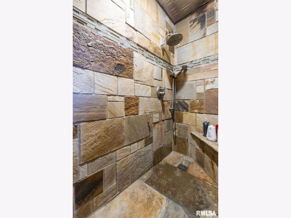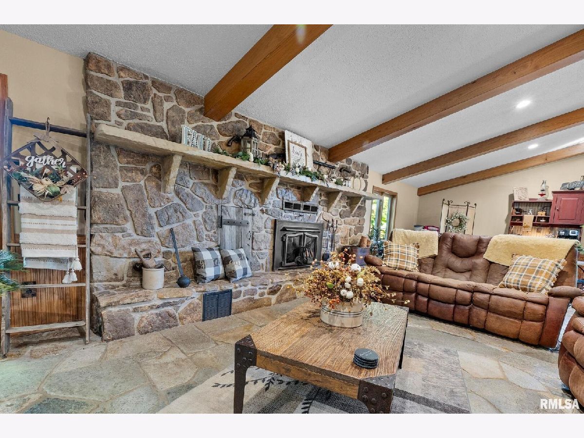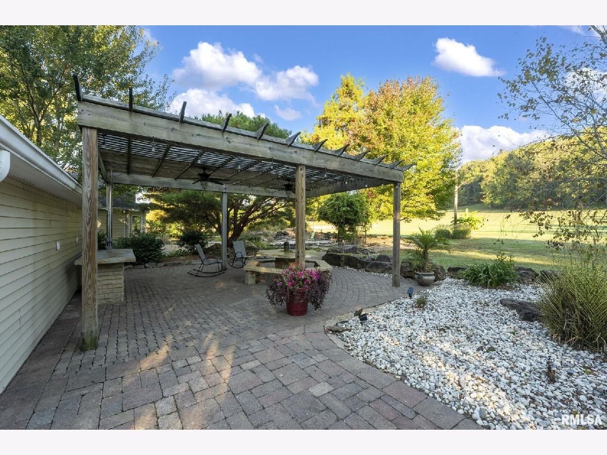 Your inner peace starts when you head down a picturesque country road, canopied by mature trees that lead you to your 21.5 +/- acre property waiting to erase the stresses of the day! This custom home and property were hand-crafted by the current owner, and no corners were cut. Natural landscaping stone touches every corner of this spacious home and picturesque patio. Words are not able to do justice to the tranquil and lush outdoor patio showcasing koi ponds connected by streams, various waterfalls, and water features. A gazebo area that features a custom-made hexagon stone table with ample seating, along with a custom serving table. Steps away from the house, you will find 3 outbuildings for all your needs. Building 1 boasts a 30'x60' with a concrete floor, insulated and heated. Complete with 3 automatic garage doors, 2 walk-in doors, and a 13'x60' lean-to off the back side. Building 2 is 22'x18' with a concrete floor, a garage door, and walk doors. Building 3 is 18'x16', perfect for a wood shop or mancave/she-shed. A concrete floor covered with easy walk foam floor, electric, heat, and A/C. The driveway boasts custom-designed pavers that add a beautiful touch as you drive into the property. The remaining property has a small ag field that is currently being used for farming, a great wooded area that borders some of the Shawnee Nation Forest, and a fully stocked pond. The pond is surrounded by cypress trees and has its own dock, a 5-hp commercial aerator, and is fully stocked! This pond is full of large Catfish, Bluegill, and Bass! Whether you enjoy hunting, fishing, or just enjoying the peaceful outdoors, this property has it all. The home boasts approximately 3,800 square feet of custom high-end touches that are tastefully rustic and extremely well done. As you enter the great room, you will fall in love with the natural stone fireplace that encompasses the entire wall and includes a custom barn wood firebox. The floors are gorgeous natural stone that span the entirety of this main floor. This open concept room includes a large kitchen area and is the perfect marriage of high-end touches. The granite countertops are highlighted on the very large entertaining island that seats 6, while the cooking island allows you to interact with guests while preparing meals. Off the side of the island area is a spacious dining area with a beautiful view through the picture windows looking out to the patio area. A step up from the great room takes you into a perfect private dining area surrounded by barn wood wainscoting. Onward takes you to another sitting area and a gorgeous fireplace! The theme of natural stone and rustic feel continues throughout this level. The main floor is complete with a laundry room, office, full bath off the great room, and a master suite with another full bath. The master suite is as rustic and cozy as it gets. With reclaimed barn wood, rustic barn tin, and natural stone work in the master bath, this is a must-see master area! Upstairs features 4 more bedrooms and a full bath! Perfect for hosting guests and family. This whole level of space provides plenty of privacy and space for your family or guests. This property truly has so much to offer and is a must-see to appreciate the true beauty the current owner has put into it.