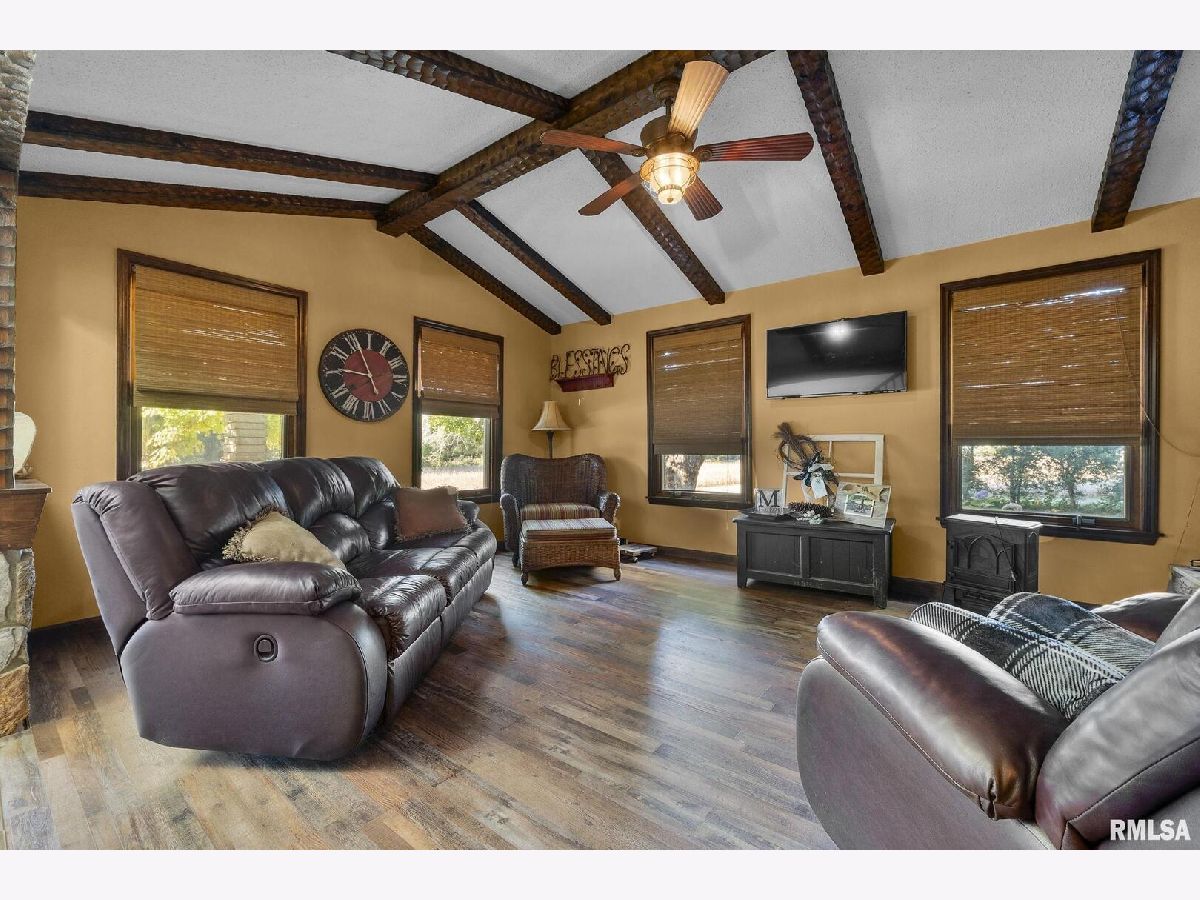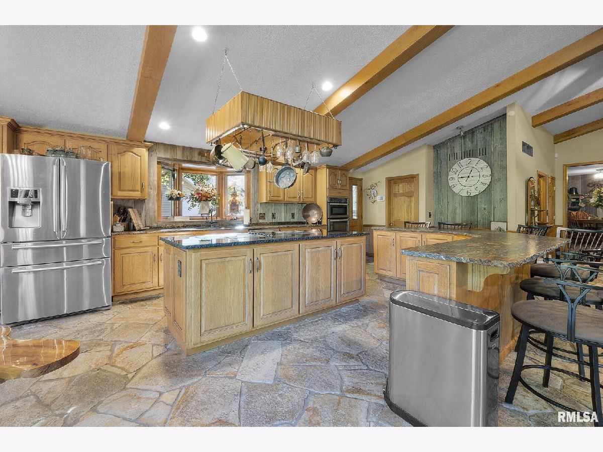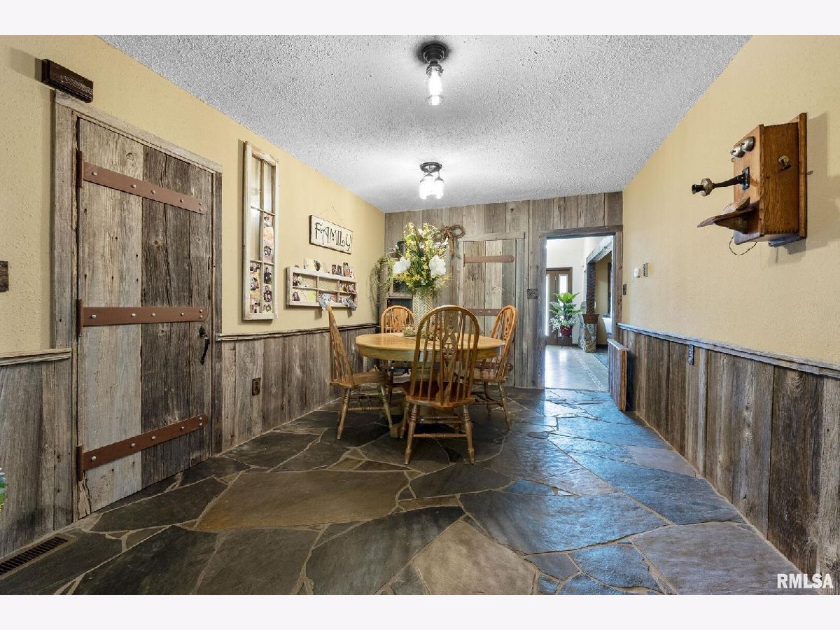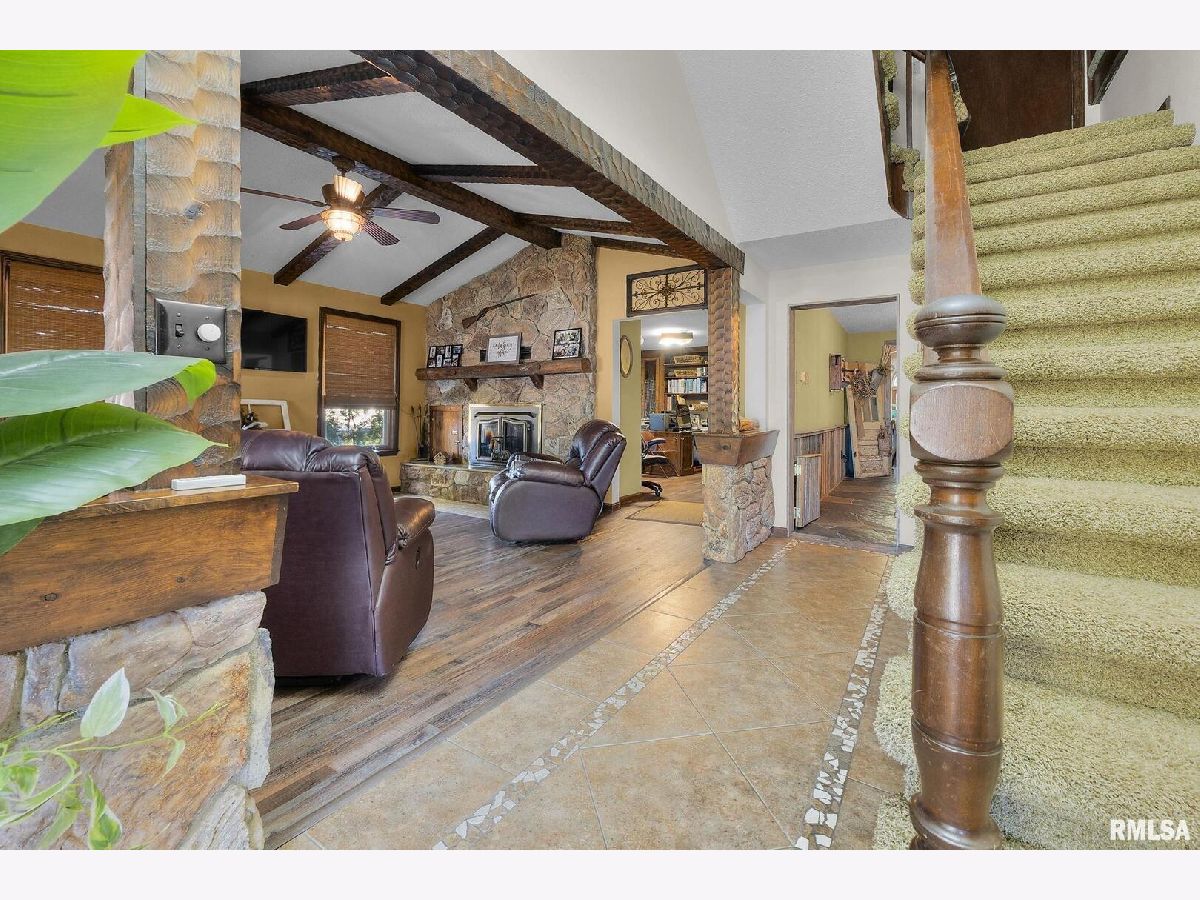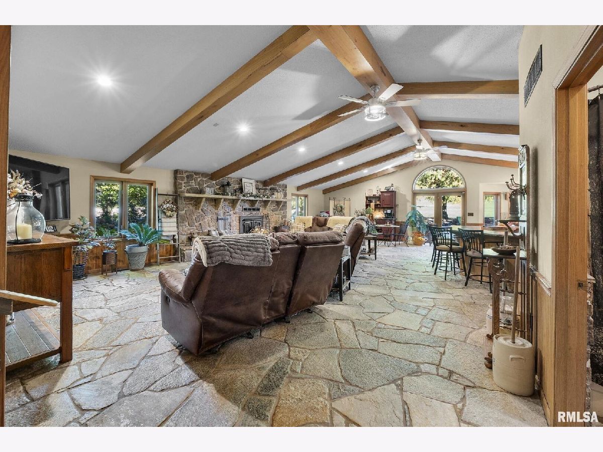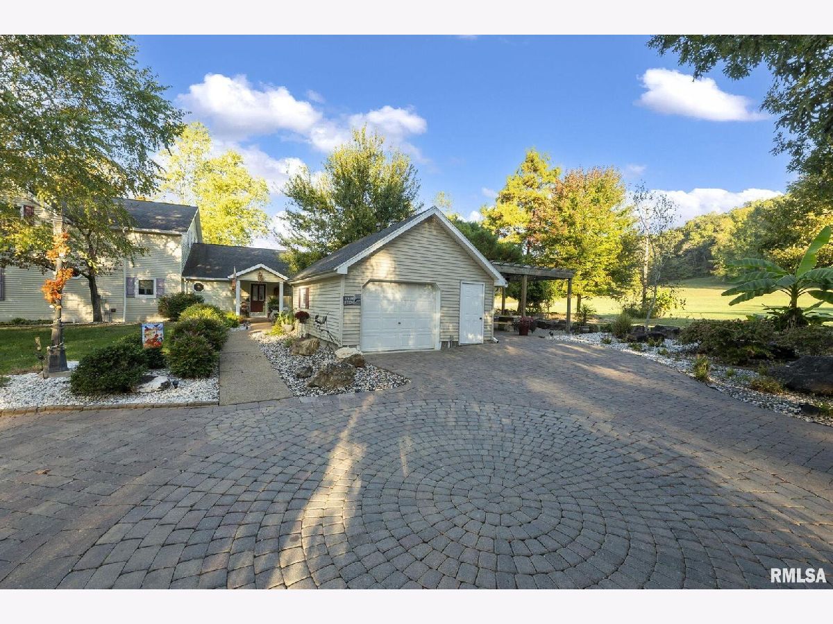 Your inner peace starts when you head down a picturesque country road, canopied by mature trees that lead you to your 21.5 +/- acre property waiting to erase the stresses of the day! This custom home and property were hand-crafted by the current owner, and no corners were cut. Natural landscaping stone touches every corner of this spacious home and picturesque patio. Words are not able to do justice to the tranquil and lush outdoor patio showcasing koi ponds connected by streams, various waterfalls, and water features. A gazebo area that features a custom-made hexagon stone table with ample seating, along with a custom serving table. Steps away from the house, you will find 3 outbuildings for all your needs. Building 1 boasts a 30'x60' with a concrete floor, insulated and heated. Complete with 3 automatic garage doors, 2 walk-in doors, and a 13'x60' lean-to off the back side. Building 2 is 22'x18' with a concrete floor, a garage door, and walk doors. Building 3 is 18'x16', perfect for a wood shop or mancave/she-shed. A concrete floor covered with easy walk foam floor, electric, heat, and A/C. The driveway boasts custom-designed pavers that add a beautiful touch as you drive into the property. The remaining property has a small ag field that is currently being used for farming, a great wooded area that borders some of the Shawnee Nation Forest, and a fully stocked pond. The pond is surrounded by cypress trees and has its own dock, a 5-hp commercial aerator, and is fully stocked! This pond is full of large Catfish, Bluegill, and Bass! Whether you enjoy hunting, fishing, or just enjoying the peaceful outdoors, this property has it all. The home boasts approximately 3,800 square feet of custom high-end touches that are tastefully rustic and extremely well done. As you enter the great room, you will fall in love with the natural stone fireplace that encompasses the entire wall and includes a custom barn wood firebox. The floors are gorgeous natural stone that span the entirety of this main floor. This open concept room includes a large kitchen area and is the perfect marriage of high-end touches. The granite countertops are highlighted on the very large entertaining island that seats 6, while the cooking island allows you to interact with guests while preparing meals. Off the side of the island area is a spacious dining area with a beautiful view through the picture windows looking out to the patio area. A step up from the great room takes you into a perfect private dining area surrounded by barn wood wainscoting. Onward takes you to another sitting area and a gorgeous fireplace! The theme of natural stone and rustic feel continues throughout this level. The main floor is complete with a laundry room, office, full bath off the great room, and a master suite with another full bath. The master suite is as rustic and cozy as it gets. With reclaimed barn wood, rustic barn tin, and natural stone work in the master bath, this is a must-see master area! Upstairs features 4 more bedrooms and a full bath! Perfect for hosting guests and family. This whole level of space provides plenty of privacy and space for your family or guests. This property truly has so much to offer and is a must-see to appreciate the true beauty the current owner has put into it.