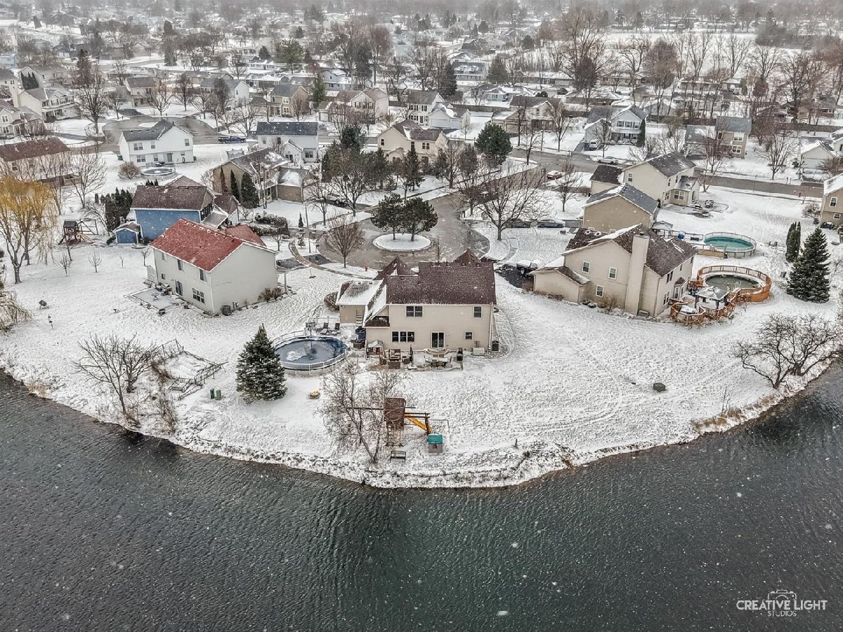 Welcome to this stunning and beautifully updated Glenmor model, offering over 2,400 square feet of above-grade living space plus a partially finished basement, all perfectly situated on a premium cul-de-sac lot with peaceful pond views. Step inside to a dramatic two-story foyer that opens to living and dining spaces, where large windows fill the home with natural light while framing the tranquil water views. The open-concept main level is designed for both everyday living and effortless entertaining. The inviting kitchen features newer stainless-steel appliances (2020), oak cabinetry, a spacious pantry, and a generous eating area overlooking the serene backyard and pond. Just steps away, the cozy family room centers around a beautiful tile gas-log fireplace-perfect for relaxing evenings or hosting guests. Upstairs, the expansive primary suite offers a private retreat with a large bedroom, a California-style walk-in closet, and a luxurious en-suite bath complete with dual sinks, a soaking tub, and a separate shower. Three additional spacious bedrooms all feature California-style closets, and the second full bathroom has been updated (2021). The partially finished basement adds even more space to enjoy, highlighted by a custom wet bar (2023) and entertainment area-ideal for gatherings, game nights, or watching the big game. Outside, your backyard oasis awaits. Enjoy the Trex deck (2020), a custom concrete patio (2020), and a 27-foot round pool(2020)-perfect for summer fun and outdoor entertaining while taking in the water views. Additional updates include a remodeled laundry room (2020), updated powder room (2020), Renewal by Andersen windows and sliding door (2022), modern light fixtures, and newer carpet (2022), Govee Lights (2024). The spacious 3-car garage features durable epoxy flooring and ample storage. Located in the highly sought-after Plainfield School District and Plainfield Township. This home is conveniently close to shopping, dining, schools, and major highways, offering both comfort and convenience.