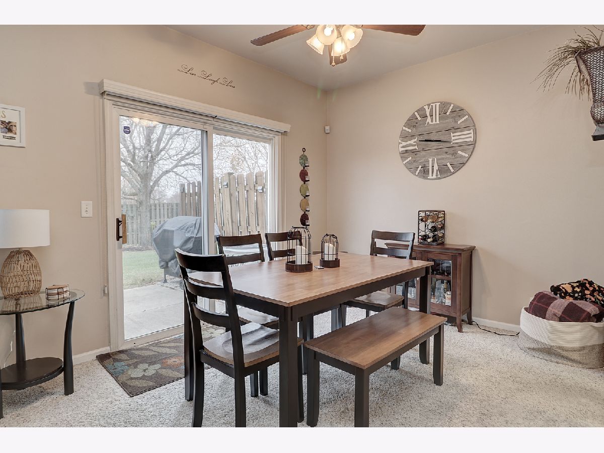 Start the new year with a move in ready townhome! The bright, eat-in kitchen features abundant cabinetry and a comfortable dining area. The spacious living room is filled with natural light thanks to a large front window, while the separate dining room offers a sliding glass door that opens to a private patio overlooking open green space. The generous owner's suite includes two closets and direct access to a large bathroom with dual sinks. A nicely sized second bedroom provides excellent storage as well. Additional highlights include a two-car garage and a fantastic location close to the clubhouse, pool, and parks. Enjoy easy access to shopping, restaurants, and major highways-everything you need is just minutes away! Plainfield District 202 schools.
