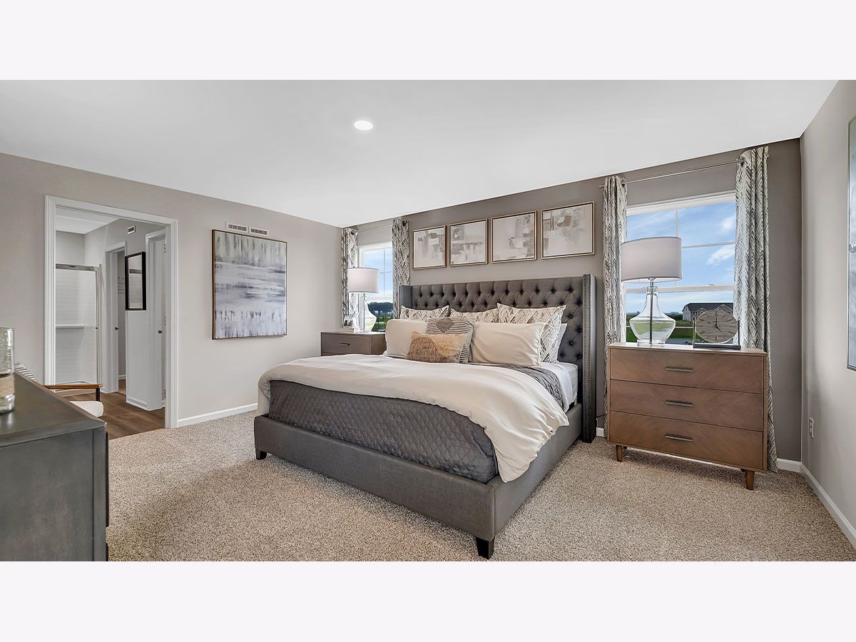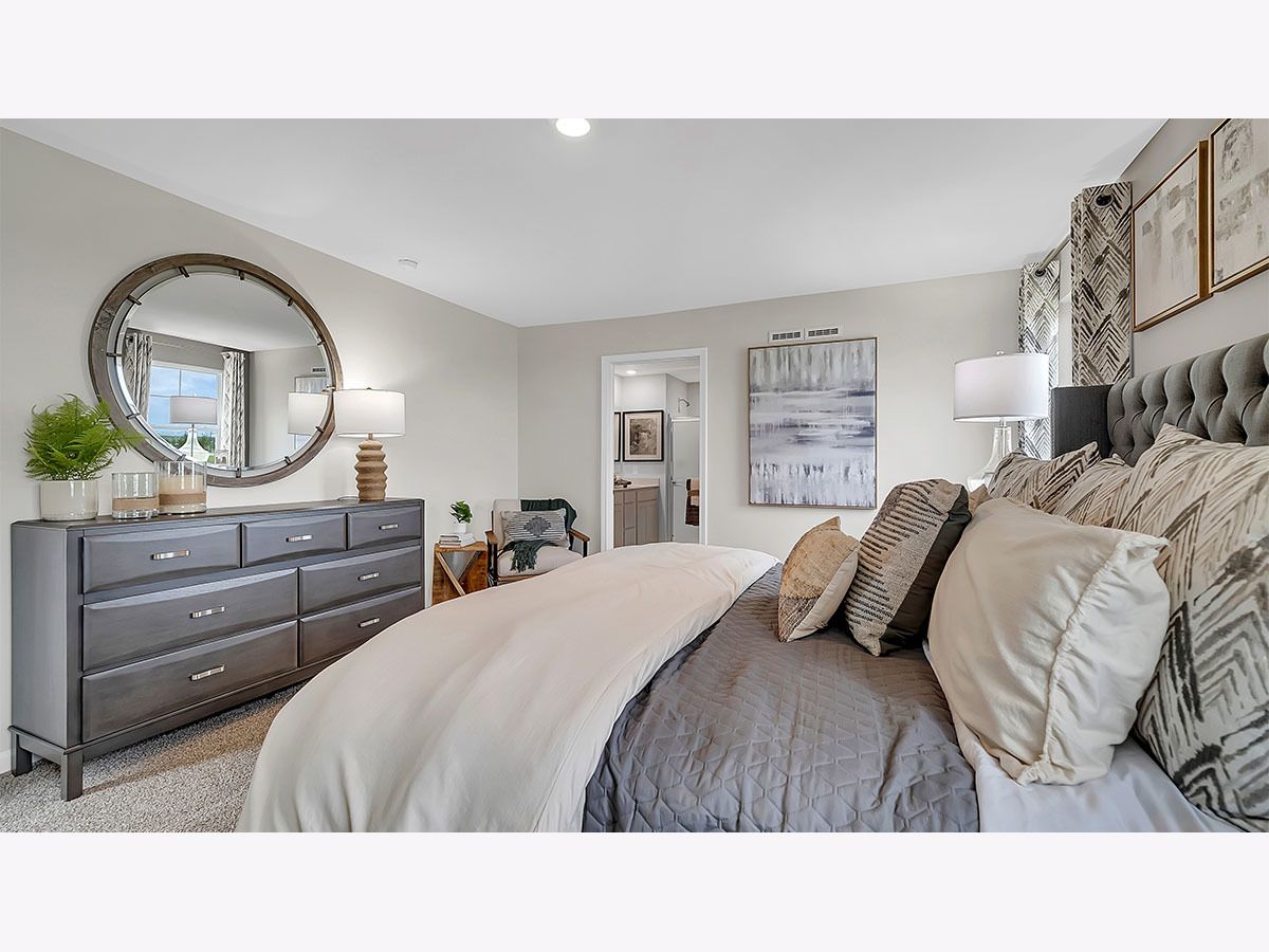 Discover yourself at 1812 Overland Drive in Plainfield, Illinois, a beautiful new home in our Ashford Place community. This home for sale is ready for a quick move-in! This home includes a beautiful brick front facing on the garage and fully sodded yard. This Haven plan offers 1561 square feet of living space, 3 bedrooms, 2.5 baths, 9-foot ceilings on first floor, and a full basement. Entertaining will be easy in this open-concept kitchen and family room layout with modern shaker, soft close cabinetry. Additionally, the kitchen features a walk-in pantry, modern stainless-steel appliances, quartz countertops, and easy-to-maintain luxury vinyl plank flooring. Enjoy your private getaway with your large primary bedroom and en suite bathroom with a raised height dual sink, quartz top vanity, and walk-in shower with chic wall surrounds and clear glass shower doors. Convenient walk-in laundry room, 2 additional bedrooms with a full second bath and a linen closet complete the second floor. All Chicago homes include our America's Smart Home Technology. Photos are of similar home and model home. Actual home built may vary.