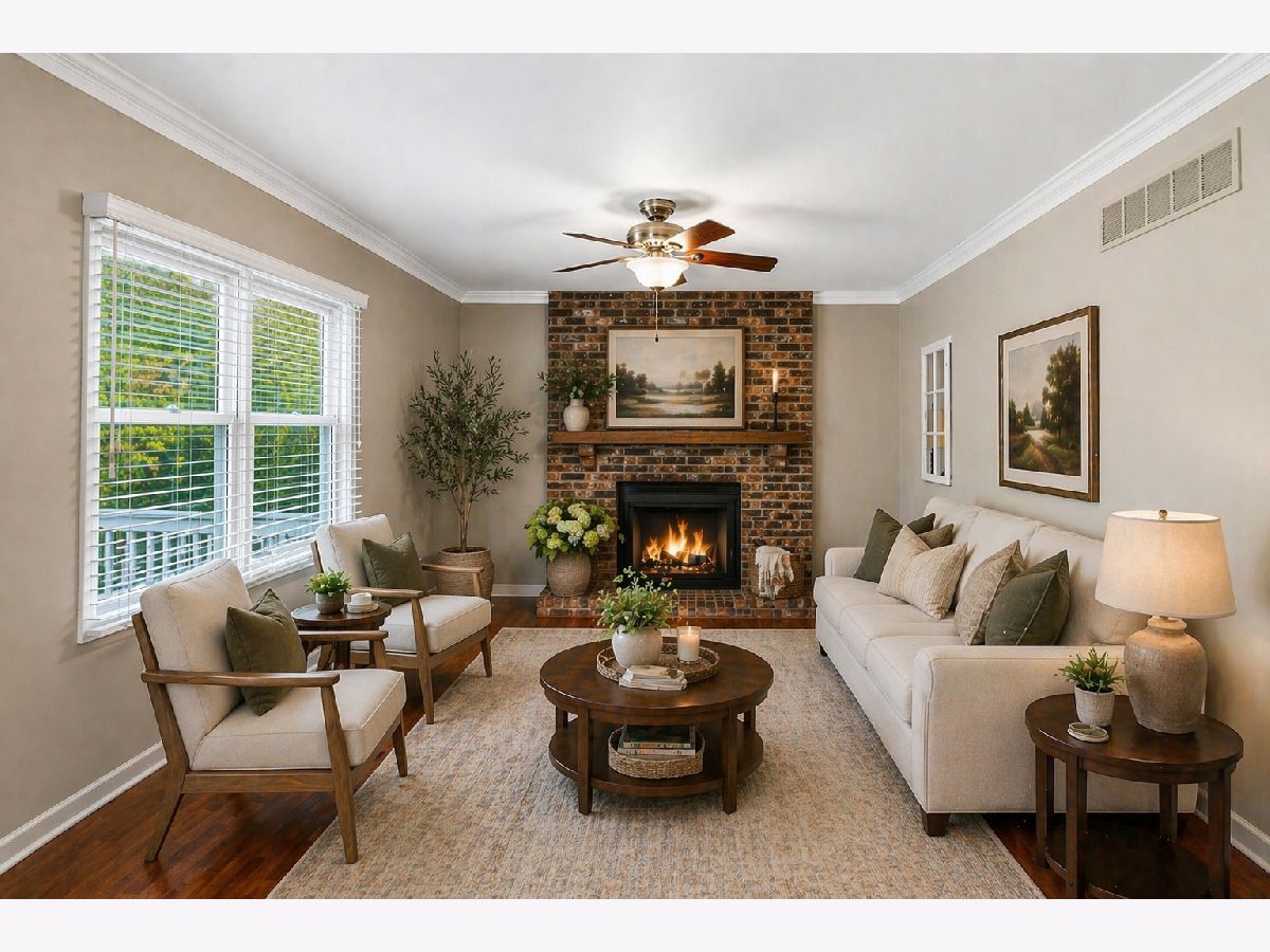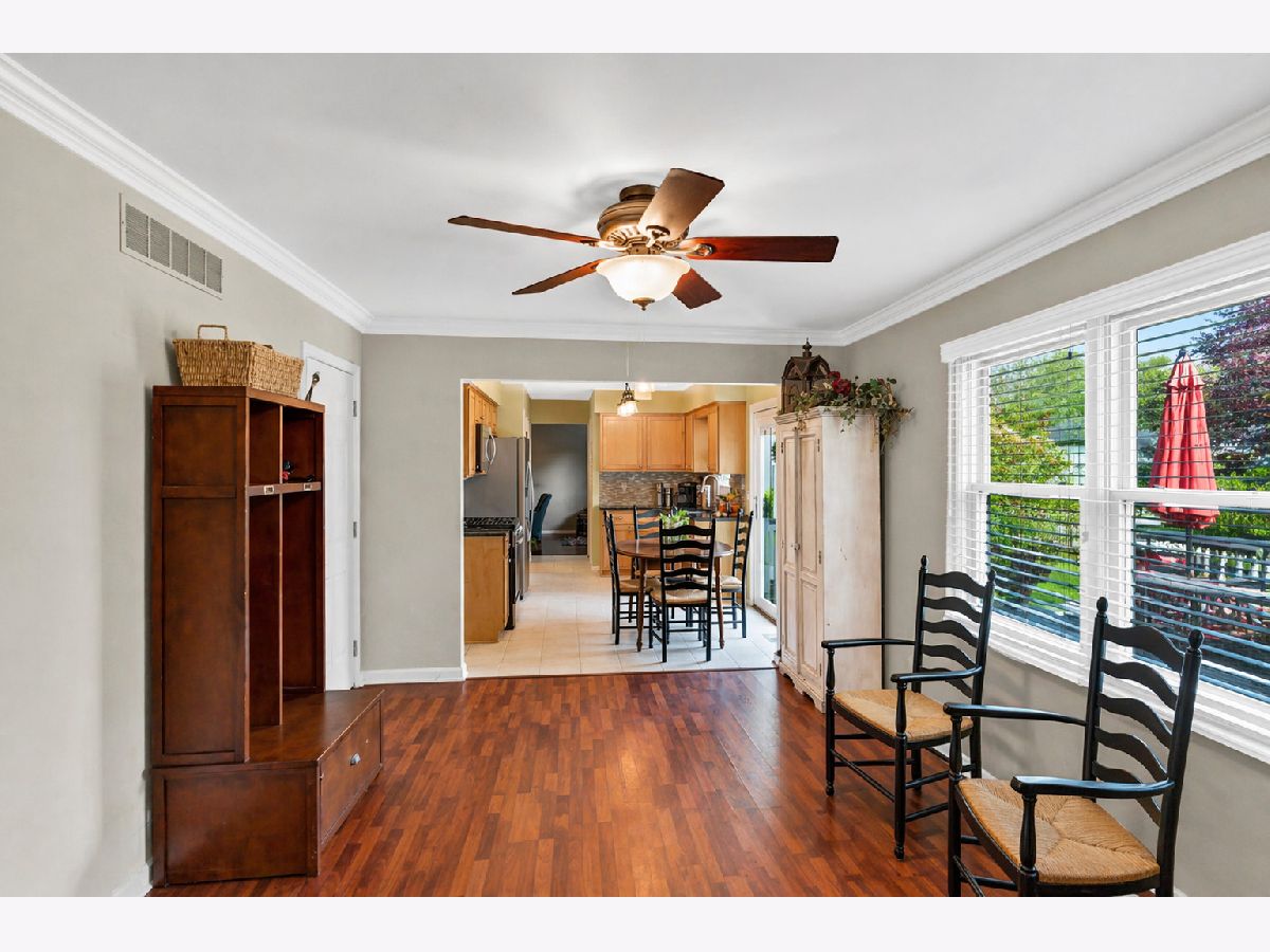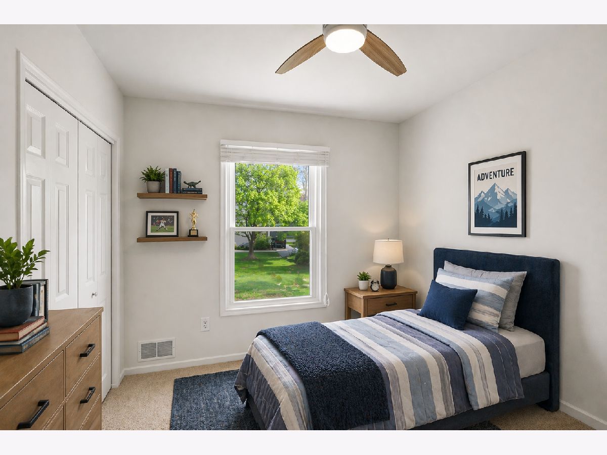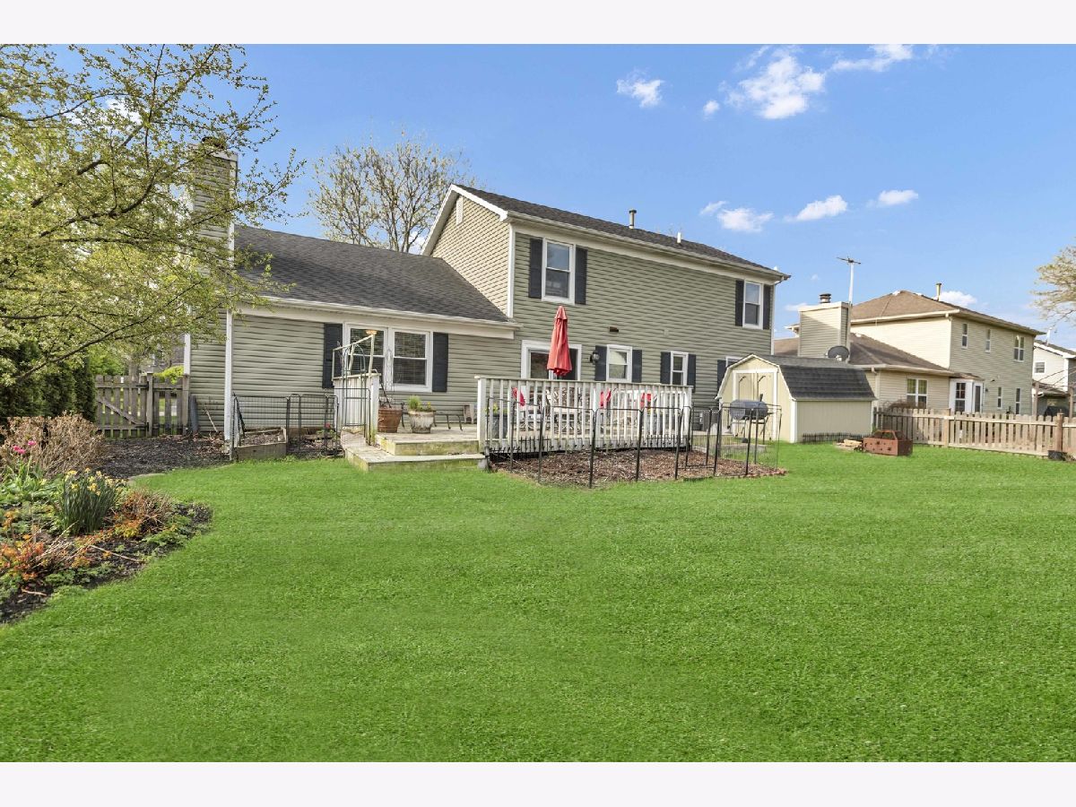 LOCATION! Set in a fantastic neighborhood near Kirk Road, this home offers an easy commute and is conveniently close to a highly desirable grade school and nearby park. It delivers generous space and strong fundamentals in an area buyers consistently seek out. The living room, dining room, and family room feature hardwood laminate flooring, with a charming brick fireplace anchoring the family room. The primary suite has been uniquely expanded and includes two closets plus a comfortable sitting area, creating a spacious retreat. The finished basement adds even more living space with brand new carpeting, a recreation room, and a flexible office or home theater space with a deep closet. Additional features include new siding, windows replaced 5 years ago, HVAC approximately 5 years old, a heated garage with cable hookup, a fenced backyard, and a storage shed. A solid home in a prime location with great space, a functional layout, and updates buyers will appreciate in a neighborhood they will love.