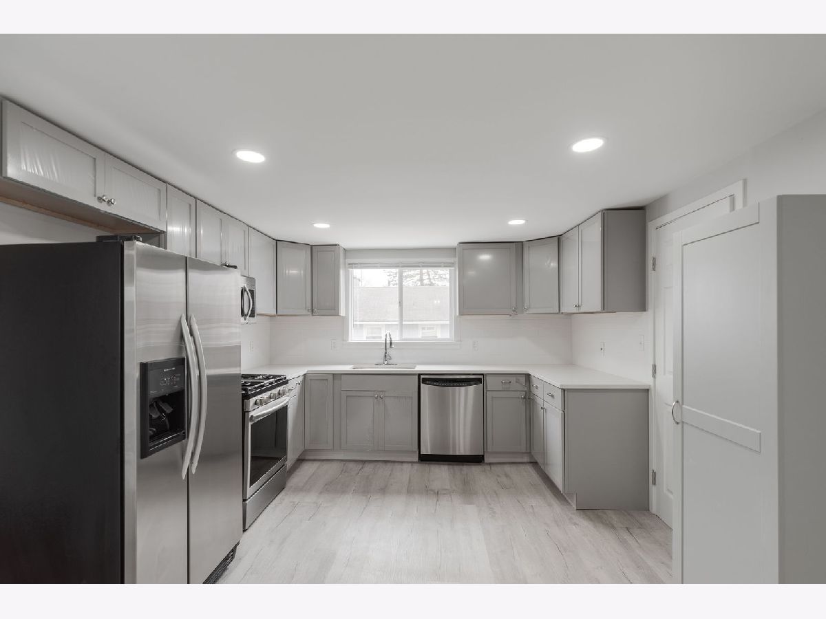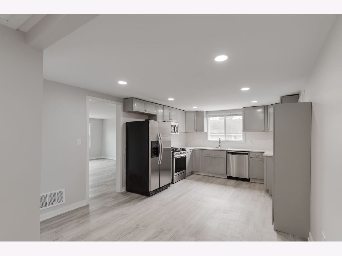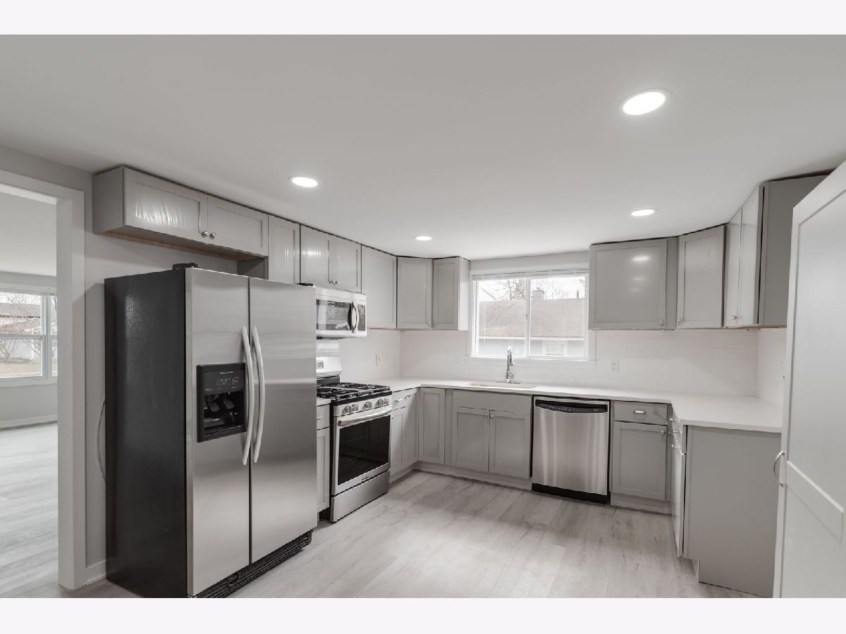 Completely rehabbed three bedroom one bath ranch on a double lot in North Zion! Vinyl plank flooring throughout first level. Canned lighting in kitchen and living area. Home has been freshly painted throughout. Brand new kitchen with new layout, featuring newer stainless steel appliances, new over-sized cabinets, quartz counter tops & subway tile backslash. Bathroom fully renovated with premium finishes and subway tile surround. Laundry in basement. All new mechanicals, A/C, water heater, furnace, sump pump. New insulation in attic. Basement waterproof drain tile system & sprinkler system with expansion tank for fire safety. New roof, fascia, gutters, downspouts on house and garage. Separate 2 car garage and spacious backyard. Move-in ready!