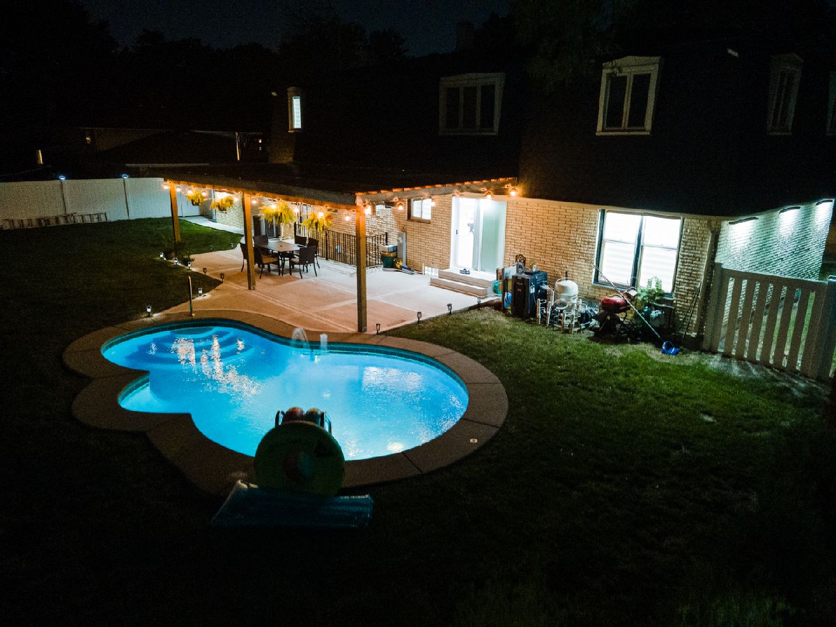 Welcome to this beautifully updated, true 5-bedroom, 2.1-bath home that offers modern elegance, spacious living, and a backyard designed for entertaining. Come inside to a very bright, open floor plan that flows seamlessly from the spacious living and dining spaces into the kitchen, ideal for entertaining. Modern sleek kitchen, accented by a beautiful kitchen island, featuring white cabinets, stainless steel appliances, and quartz countertops. Built-in drawer-style microwave, tons of storage, and a large pantry. Additional living space in the cozy family room with a wood-burning (gas starter) fireplace. Upstairs, you'll find a large private primary suite with an updated bath, double vanity, and a walk-in closet. A stunning main bathroom with 4 additional sizable bedrooms, all freshly painted with new carpet and lots of closet space, finishes off the 2nd floor. Step outside to a large fenced backyard with a massive covered patio and your gorgeous sparkling in-ground pool. Perfect for hosting, gatherings, and all the summer parties! Fully finished heated 2-car garage. A partially finished full-size basement offers you another whole level of potential living space. Newer Roof (2021). Right across from Aspen Trail Park with kids' playgrounds, baseball field, basketball, and tennis courts. This move-in-ready home perfectly combines comfort, style, and convenience. Don't miss your chance to make it yours!