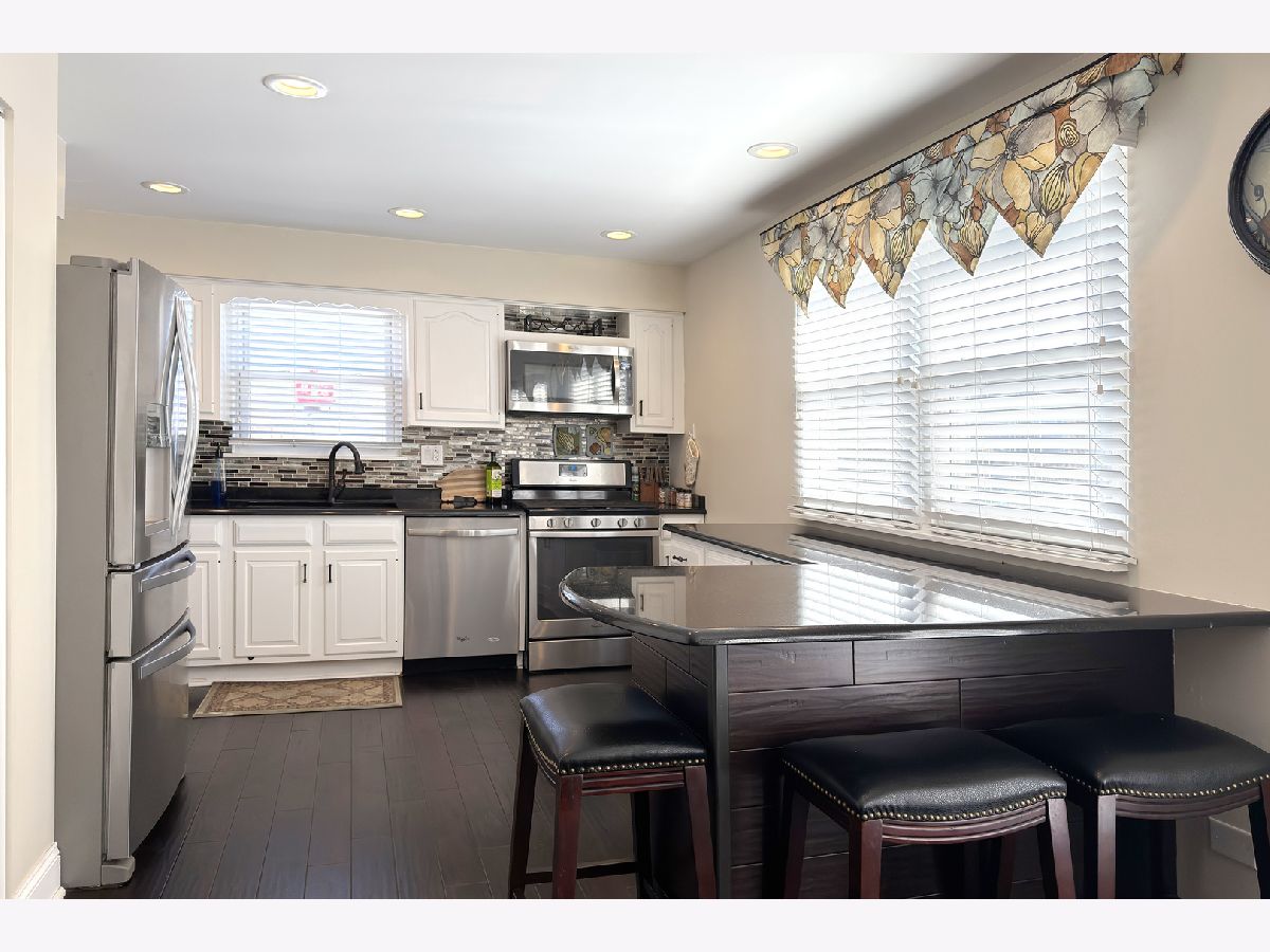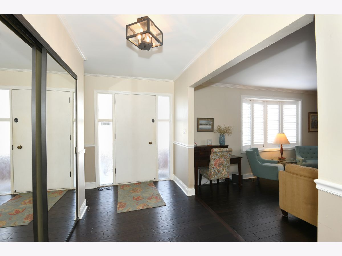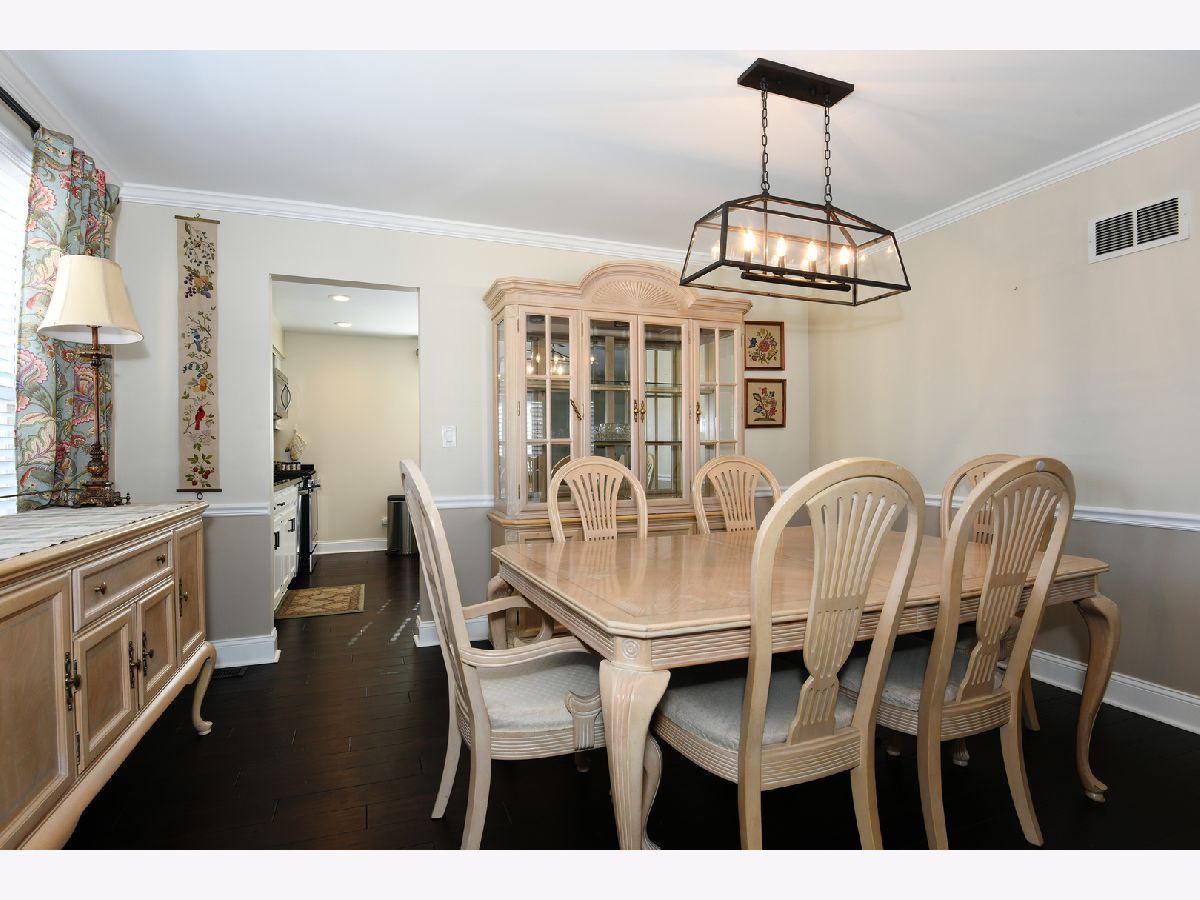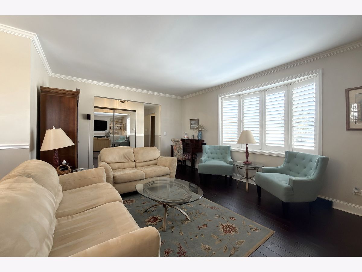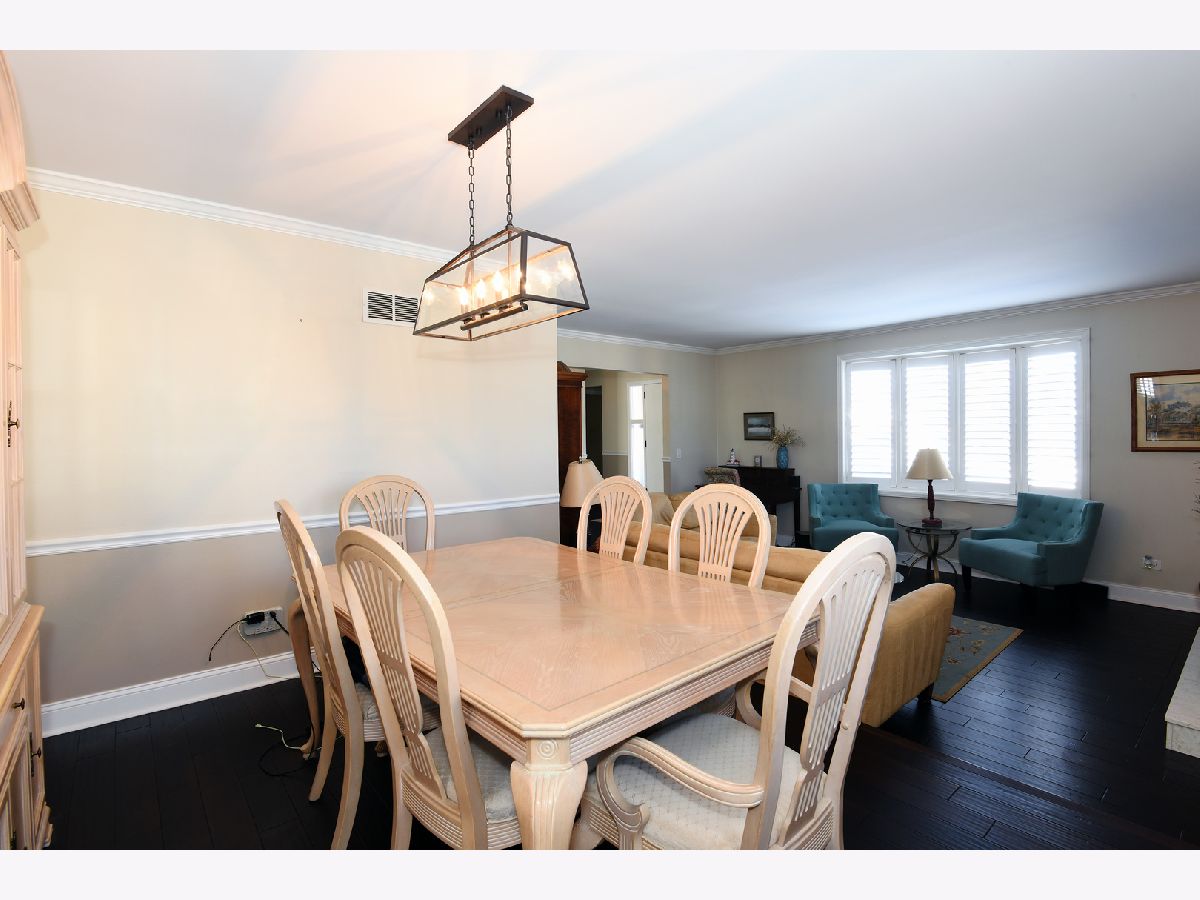 Open concept updated L-shaped ranch conveniently located a couple of blocks from shopping, restaurants, Metra bus line, 20 minutes to O'Hare and minutes from all expressways! In addition to this premium location is a superb house with an easy living ranch floor plan with exceptional engineered hardwood flooring throughout the first floor except for the bedrooms which have parquet. There is a large foyer upon entering, a huge sunken (one step) living room to the left and separate formal dining room. The living room is highlighted with premium engineered hardwood flooring, classic crown molding, a bay window with plantation shutters, a gas fireplace with custom built in cabinets and bookshelves! Then there is the spacious separate dining room with premium engineered hardwood flooring. Walking straight ahead upon entering the foyer is the incredible family room which also has a huge eating area off and open to the kitchen. The kitchen is update with stainless appliances, granite counters, recessed lighting, a pantry closet, L-shaped counter breakfast bar and French doors to the deck overlooking the backyard. The kitchen and family room faces south so you get great amount of bright sunshine during the day. The bathrooms are remodeled. The primary bedroom is excellent size and has crown molding and a separate attractive bath with shower. The hall bath has a double sink vanity with a modern basket weave ceramic tile floor. There is tremendous storage in the 3/4 partial basement with a powder room and additional multipurpose finished room and a great space for workout equipment or rec room fun. All in all, a wonderful home for the most discerning buyer!