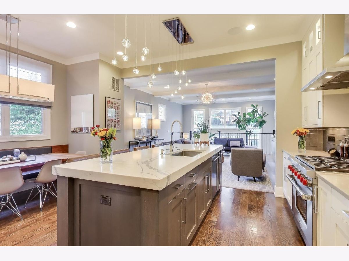 This is a simply stunning newer construction home with about 4200 sq ft of living space at the end of a rare cul de sac street in east Bowmanville. This is where Bowmanville, meets Andersonville, Ravenswood and Lincoln Square. This home will wow you with how meticulously maintained and thoughtfully designed it is. The home features 6 bedrooms, 3 of which are en-suite and have heated bathroom floors. All 4 bedrooms upstairs have vaulted ceilings. The primary features dual walk-in closets. The primary bath, has a private water closet, steam shower and separate bath and dual bowl vanity. There are 4 full baths, in total and 2 powder rooms. Stunning construction materials throughout. Thoughtful and smart design is seen throughout the home, with an ideal flow and functionality. The main floor greets you with a foyer and entry closet that opens onto a stunning living room and dining room with 1 of 2 of this floors fireplaces. The Kitchen is a dream with a huge island, wolf and subzero appliances quartz counters, an eating area, walk-in pantry and butler pantry/wet bar area. Off the kitchen is a spacious family room that is beautifully outfitted and features the second fireplace. There is a very nice mudroom that is seperated from the main living area and leads to the best lower level I've seen any home. Every closet is custom outfitted, Hardwood floors throughout the main two levels. Soothing Radiant Floor heat in the lower level. along with a gorgeous wet bar area, in the expansive, bright and warm recreation room. The home also features Control 4 automation which allows you to control your homes temperature, lights, speakers etc all from your phone. The design choices are stunning and timeless. The yard is low maintenance and fully finished garage features with an electric charger for your car. The recently upgraded garage roof deck is fully finished with trex, privacy fencing and metal louver pergola, that is built to last.