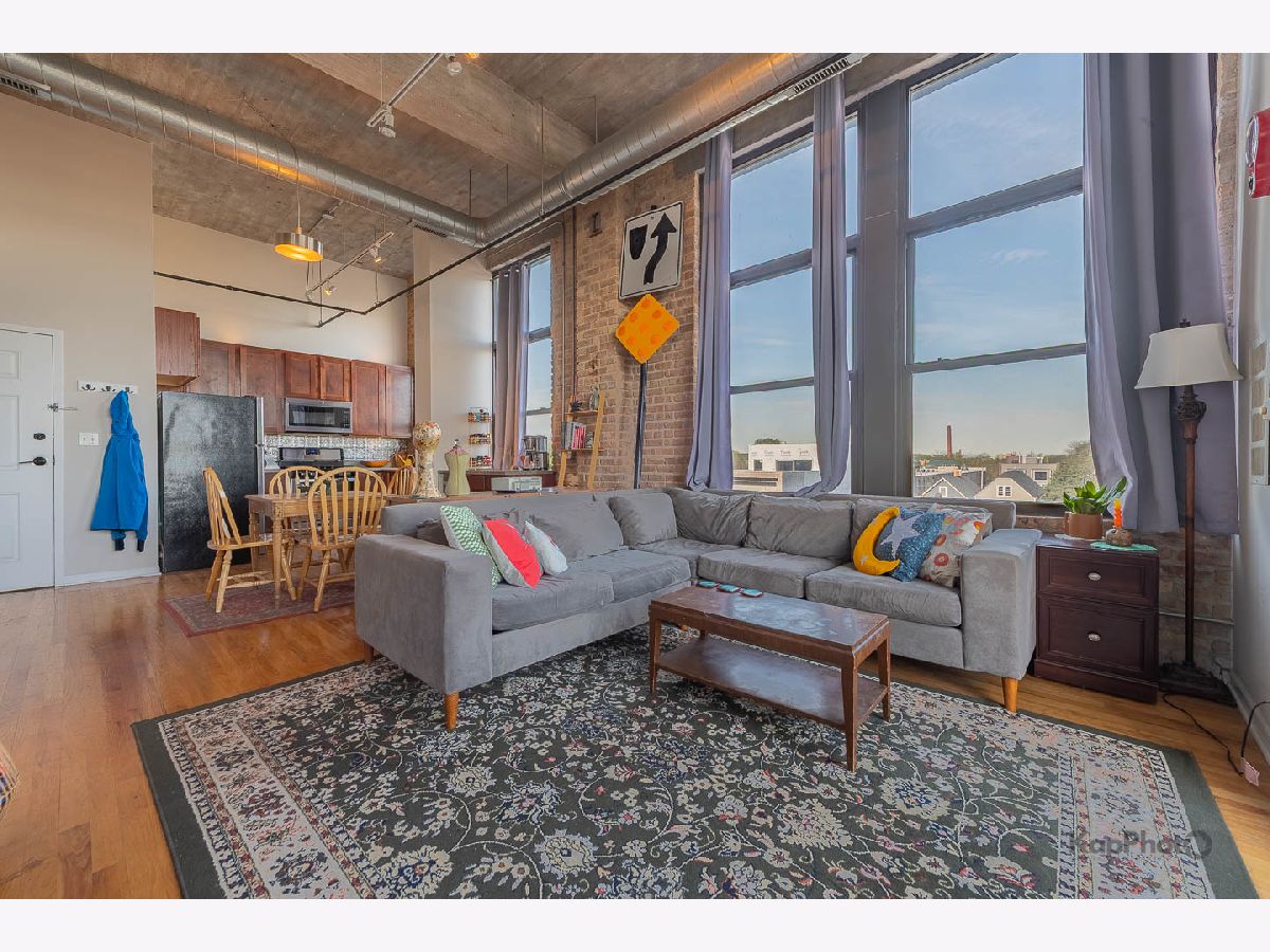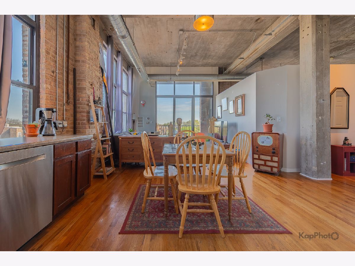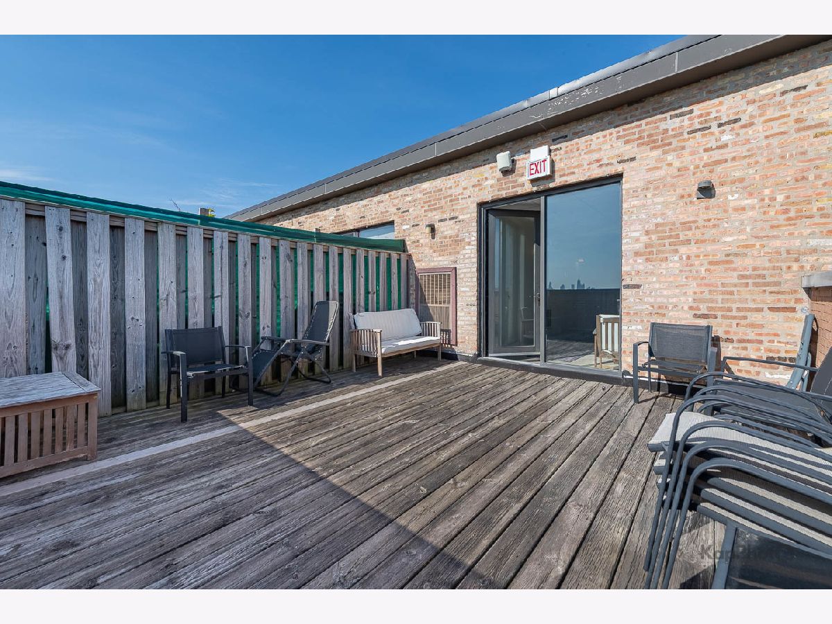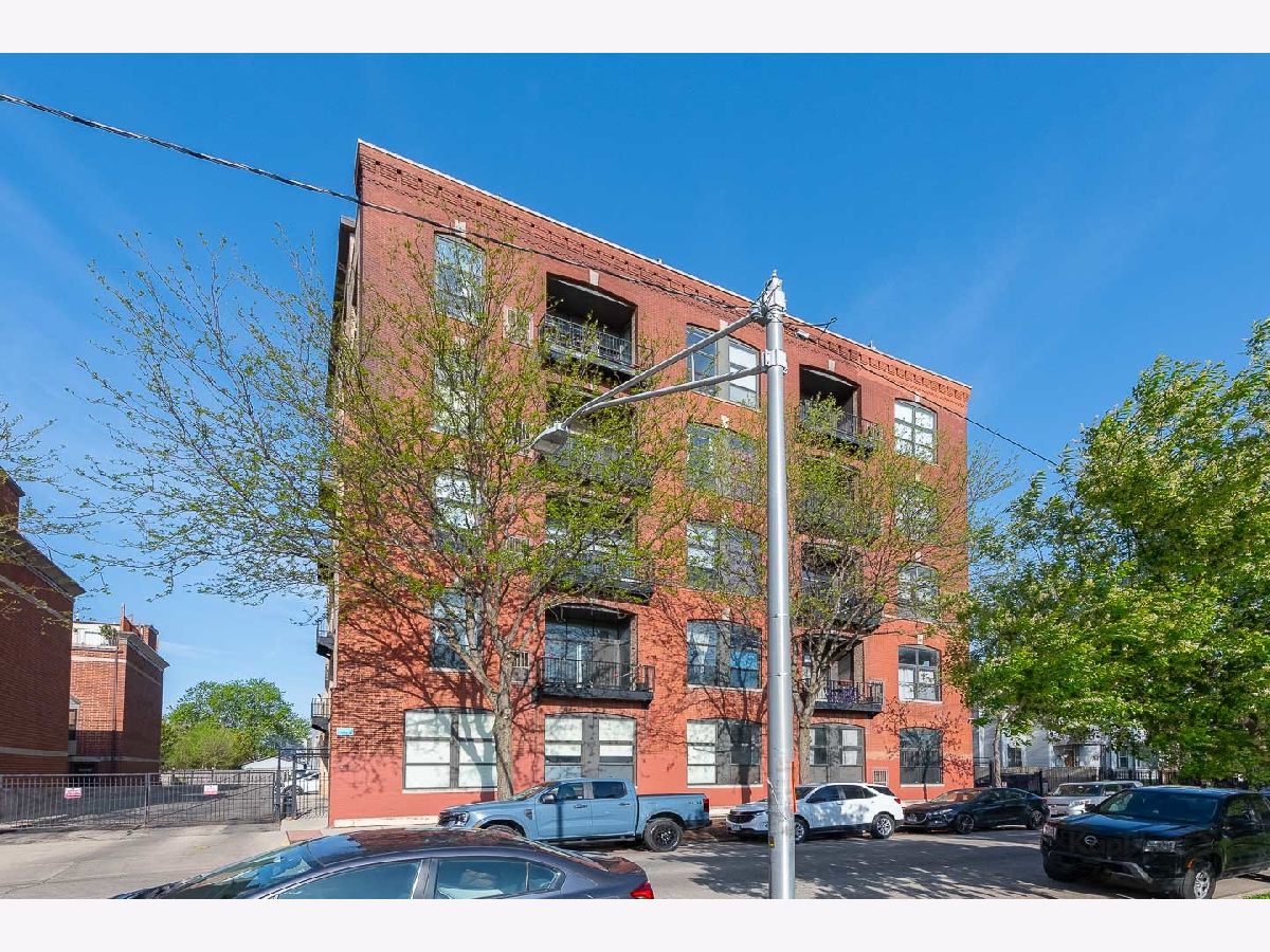 Great opportunity to own this corner 2 bed/1 bath condo/artist loft with access to the 606 Trail in Logan Square. Spacious living/dining room combo with large windows that saturate the space with natural light. Beautiful hardwood floors throughout the common areas of the unit. Kitchen contains 42-in. cabinets and stainless steel appliances. Bathroom has a double sink and natural stone tile. Both bedrooms have exposed brick walls and large windows. There is an in-unit washer/dryer combo and a huge private balcony. In addition, there is access to the rooftop deck that offers amazing views of the city. A parking space inside a gated lot is included. Plenty of amenities in the neighborhood for you to enjoy. Must see!