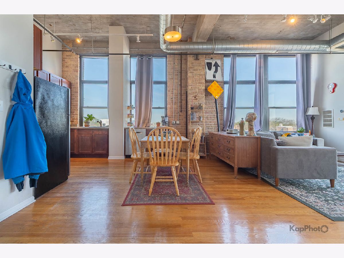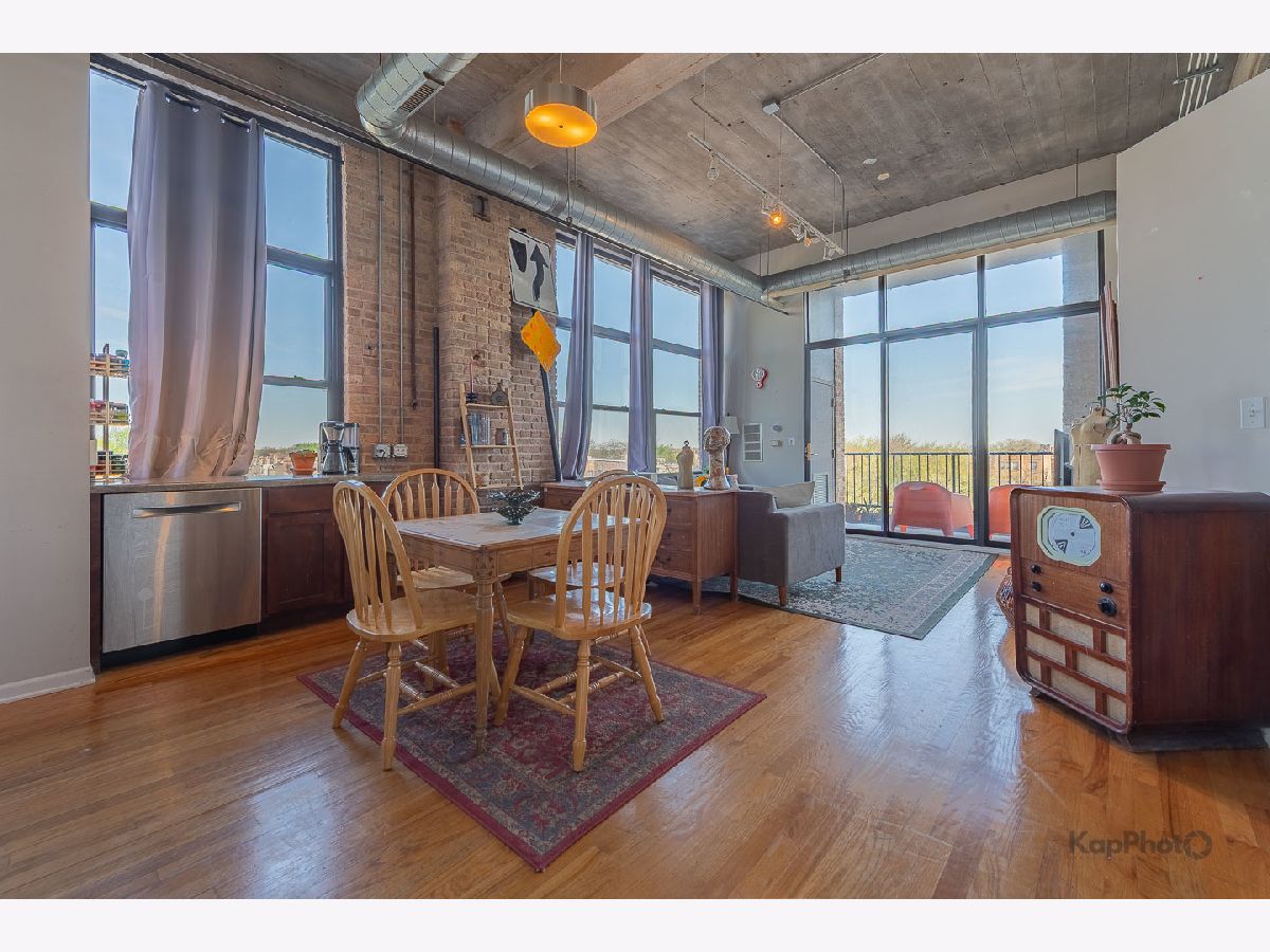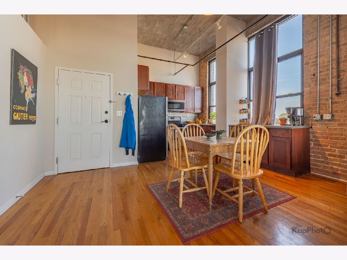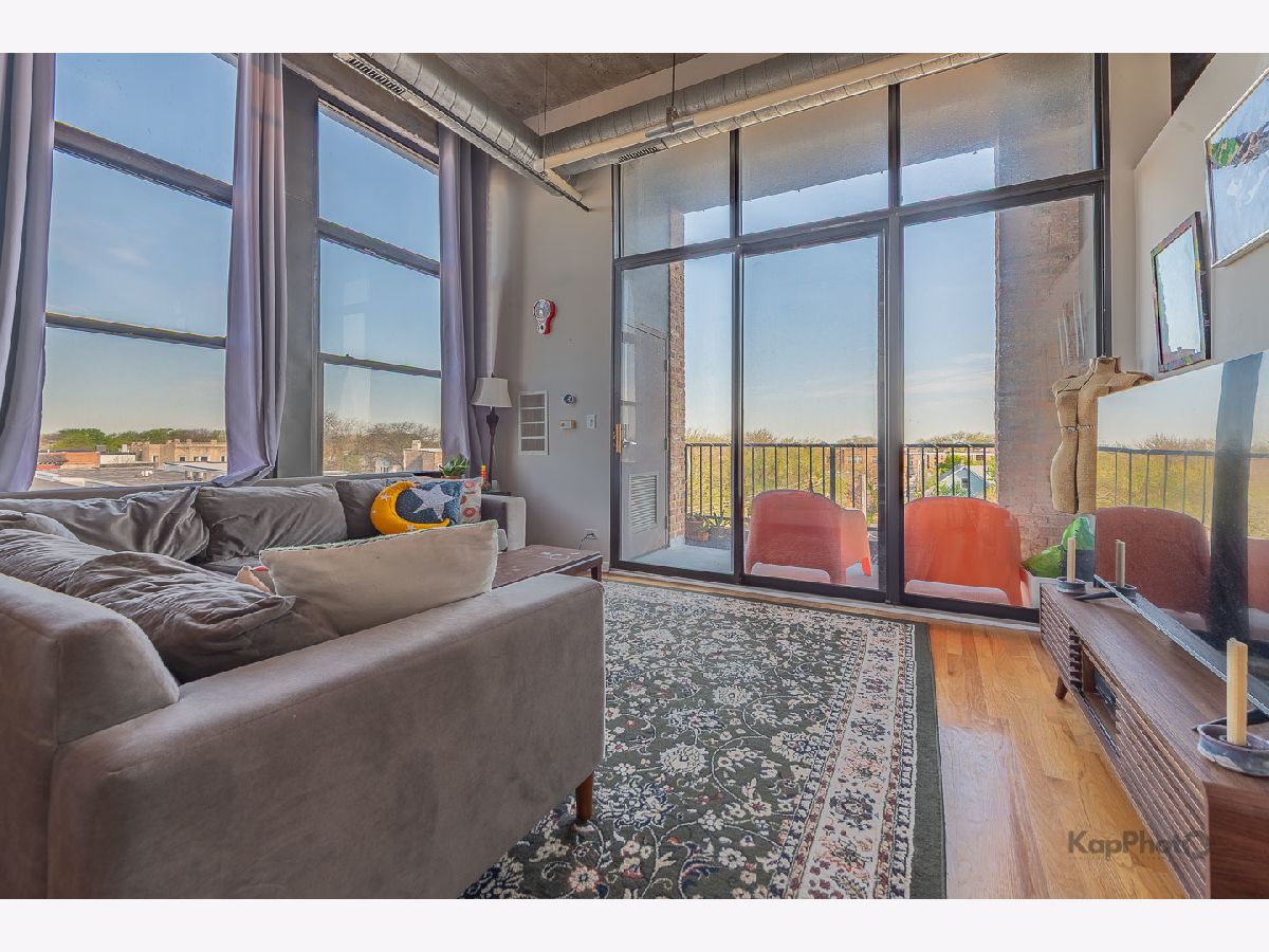 Great opportunity to own this corner 2 bed/1 bath condo/artist loft with access to the 606 Trail in Logan Square. Spacious living/dining room combo with large windows that saturate the space with natural light. Beautiful hardwood floors throughout the common areas of the unit. Kitchen contains 42-in. cabinets and stainless steel appliances. Bathroom has a double sink and natural stone tile. Both bedrooms have exposed brick walls and large windows. There is an in-unit washer/dryer combo and a huge private balcony. In addition, there is access to the rooftop deck that offers amazing views of the city. A parking space inside a gated lot is included. Plenty of amenities in the neighborhood for you to enjoy. Must see!