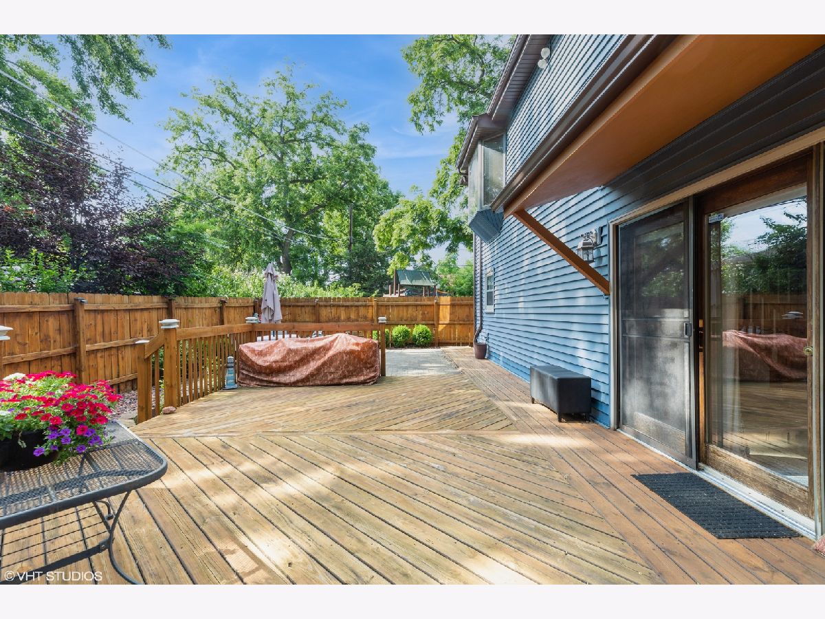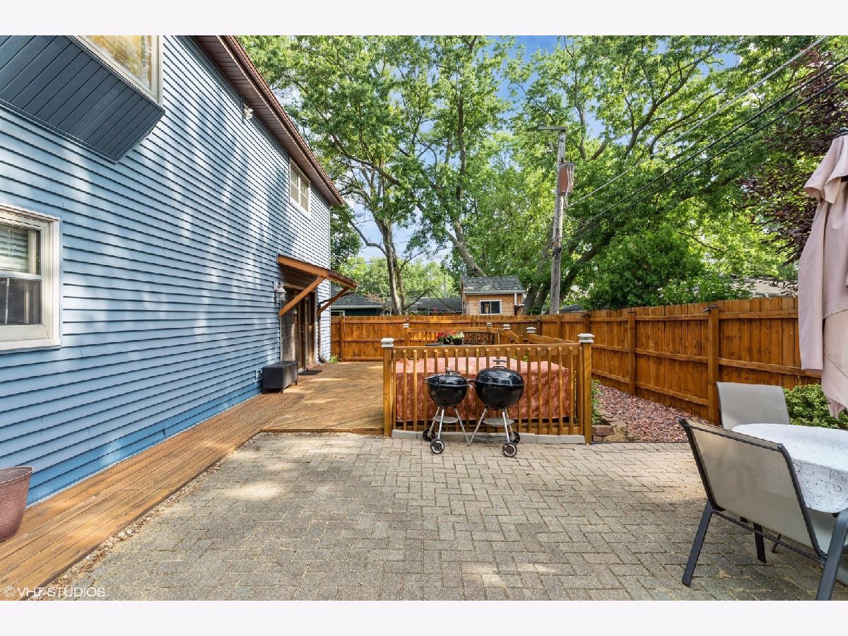 Welcome to this beautifully maintained 2-story home featuring 3 comfortable bedrooms, including one conveniently located on the main floor-perfect for guests or a home office. With 2 full bathrooms and thoughtful updates throughout, this home blends function and style effortlessly. Step into the inviting living room where vaulted ceilings and a stunning bay window fill the space with natural light. The updated, eat-in kitchen offers plenty of room for meals and gatherings, boasting modern finishes and ample cabinet space. Enjoy the ease of main-floor laundry and appreciate the comfort of a well-designed layout that supports everyday living. Outdoors, you'll find a fully fenced backyard ideal for relaxing or entertaining, complete with a large deck and beautiful paver patio. This home is move-in ready and offers a rare combination of space, updates, and charm-don't miss it! Located just a short distance from the downtown area and Metra station ***Home updates- Furnace 9 yrs, A/C 5 yrs. Roof 3 yrs. Siding 9 yrs with lifetime transferrable warranty. Dishwasher less than 1 year. Some interior rooms have been painted this month and 2nd level carpet was installed within the last few years. The Living Room and Family Room are wired for surround sound!