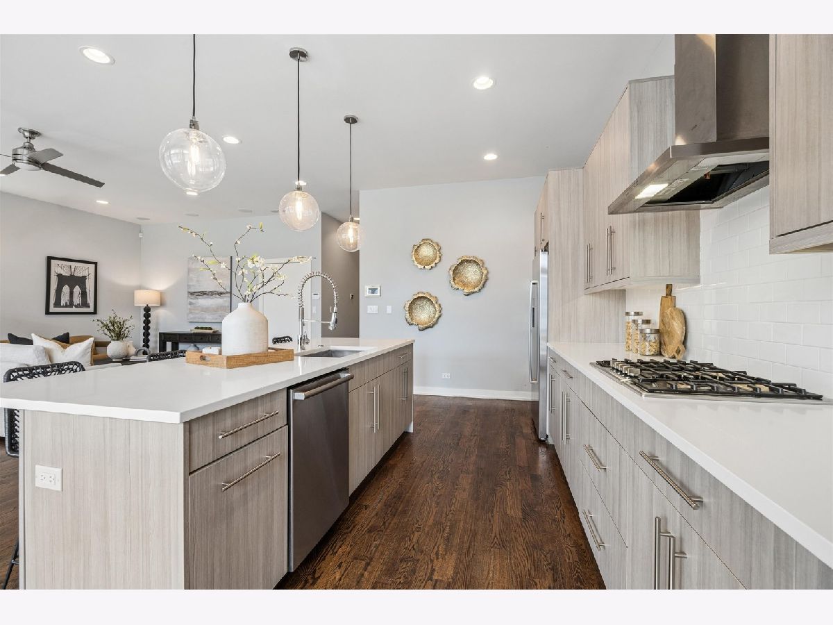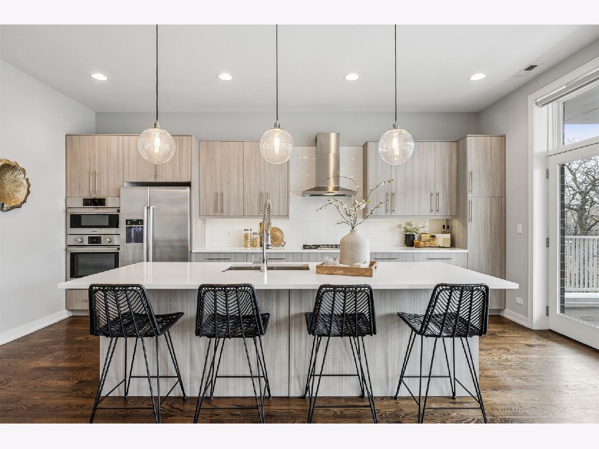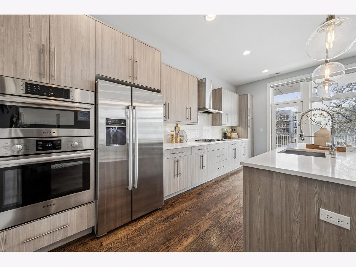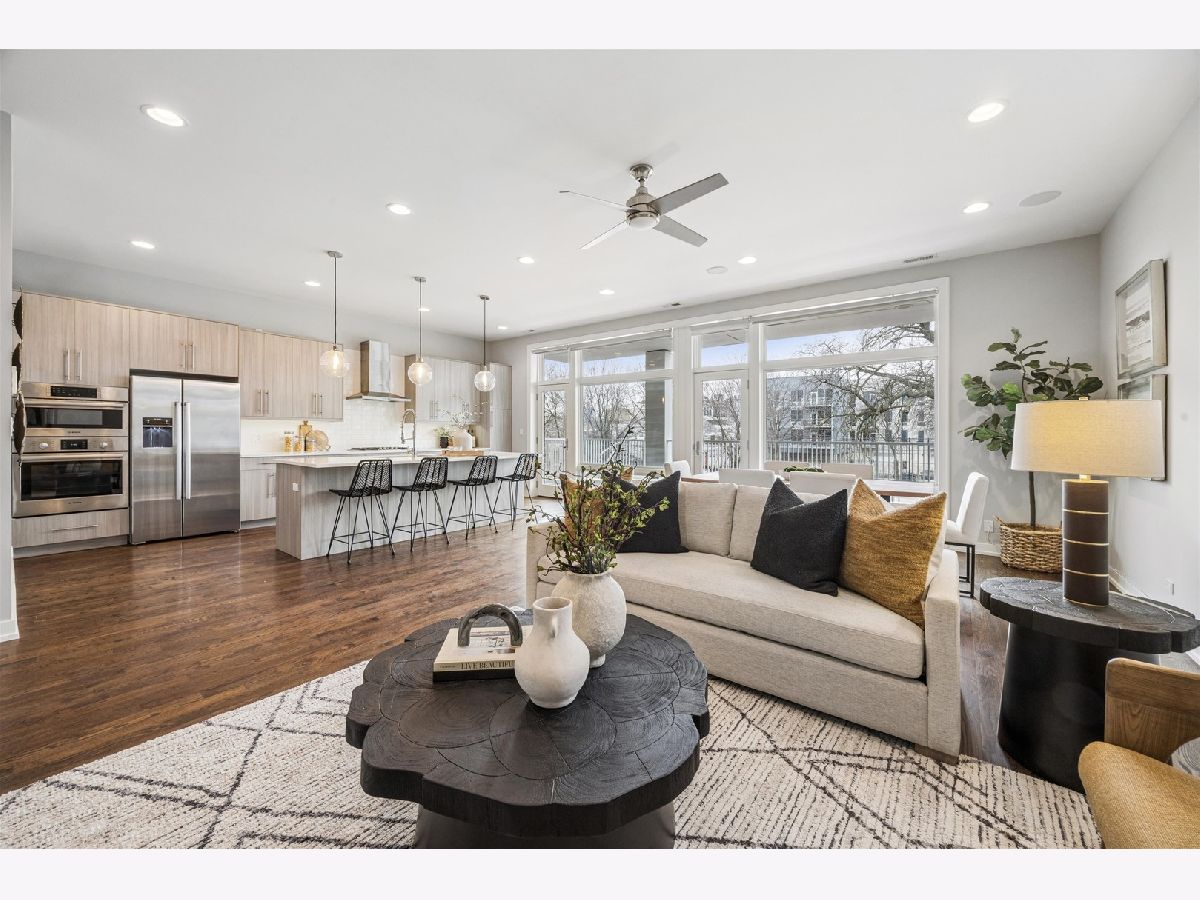 Extra-wide and flooded with natural light, this stunning 3-bedroom, 2-bath condo is located in a newer-construction, all-brick building directly across from picturesque Commercial Club Park. Situated on an oversized 37-foot-wide lot along a quiet one-way street, this south-facing residence offers exceptional width, light, and flow throughout. Designed for both everyday living and entertaining, the home features two incredible outdoor spaces with sweeping city views. The expansive chef's kitchen is a true showpiece, complete with custom Italian cabinetry, an oversized quartz island with breakfast bar seating, and Bosch stainless steel appliances. Floor-to-ceiling windows, enhanced by custom window treatments, frame beautiful treetop views from the living, dining, and kitchen areas, creating a seamless indoor-outdoor feel. Just off the main living space, step onto the approximately 200-square-foot covered terrace with durable Trex decking - the perfect extension of your living and dining space. The spacious primary suite offers two custom closets (including a walk-in) and a spa-inspired bath featuring a dual vanity, soaking tub, and luxurious steam shower. Generously sized second and third bedrooms include custom closets. Additional highlights include wide-plank hardwood floors throughout, in-unit washer and dryer, and a built-in surround sound system. Crown jewel of the home is the breathtaking private 900+ square-foot dedicated roof space with panoramic skyline views - an unbeatable setting for summer nights in Chicago. Garage parking for one car is included. Enjoy easy access to the best of Chicago Ave and Division St restaurants and nightlife, easy access to grocery stores, public transportation & so much more. BEST AND FINAL OFFERS DUE AT 12 PM ON SUNDAY MARCH 8TH.