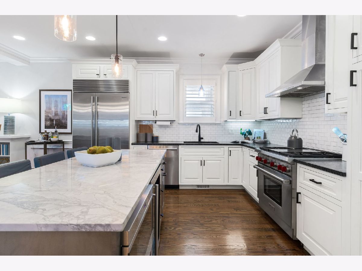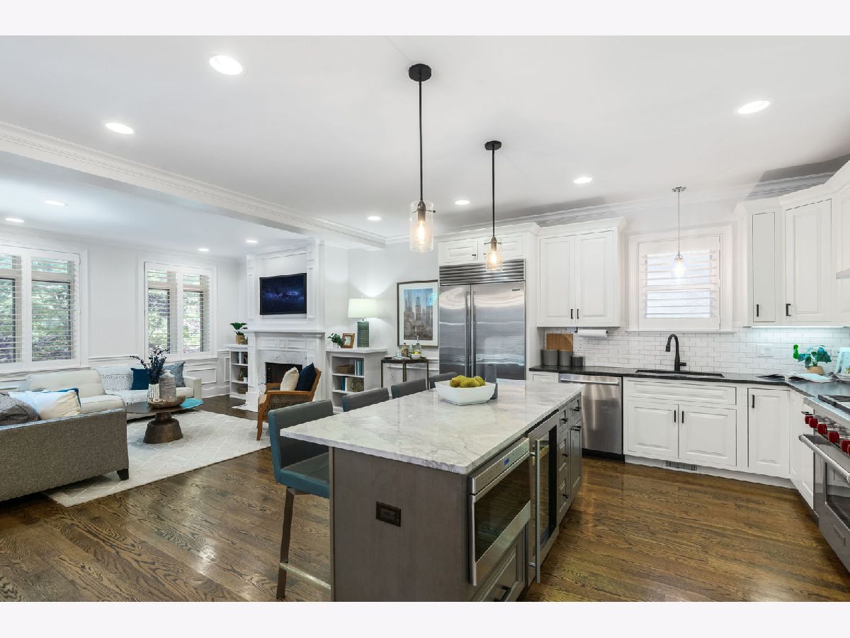 Extra-wide and filled with natural light, this stunning Roscoe Village condo checks all the boxes. Enjoy a sleek white chef's kitchen with an oversized island and premium Sub-Zero and Wolf appliances. The spacious open-concept living and dining areas feature custom millwork, wood plantation shutters, hardwood floors, modern lighting, and a beautiful fireplace. Step outside to your oversized private balcony off the dining room or head up to your expansive private rooftop deck above the garage. Luxurious bathrooms include a spa-like ensuite with a steam shower. Garage parking included. Perfectly located steps to Roscoe Village and Lakeview restaurants and shopping! A must-see!