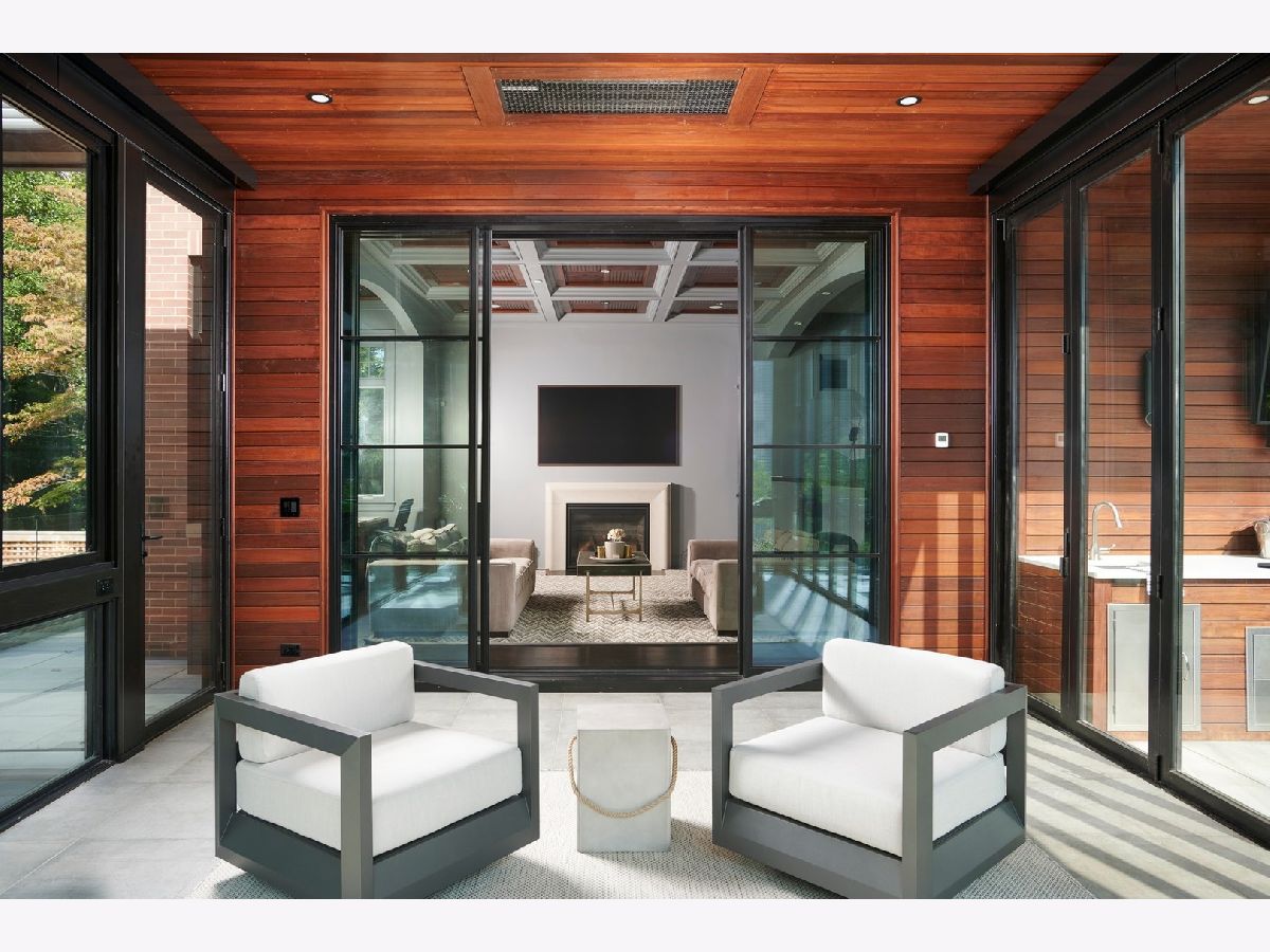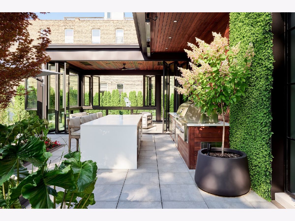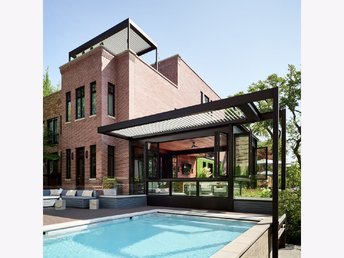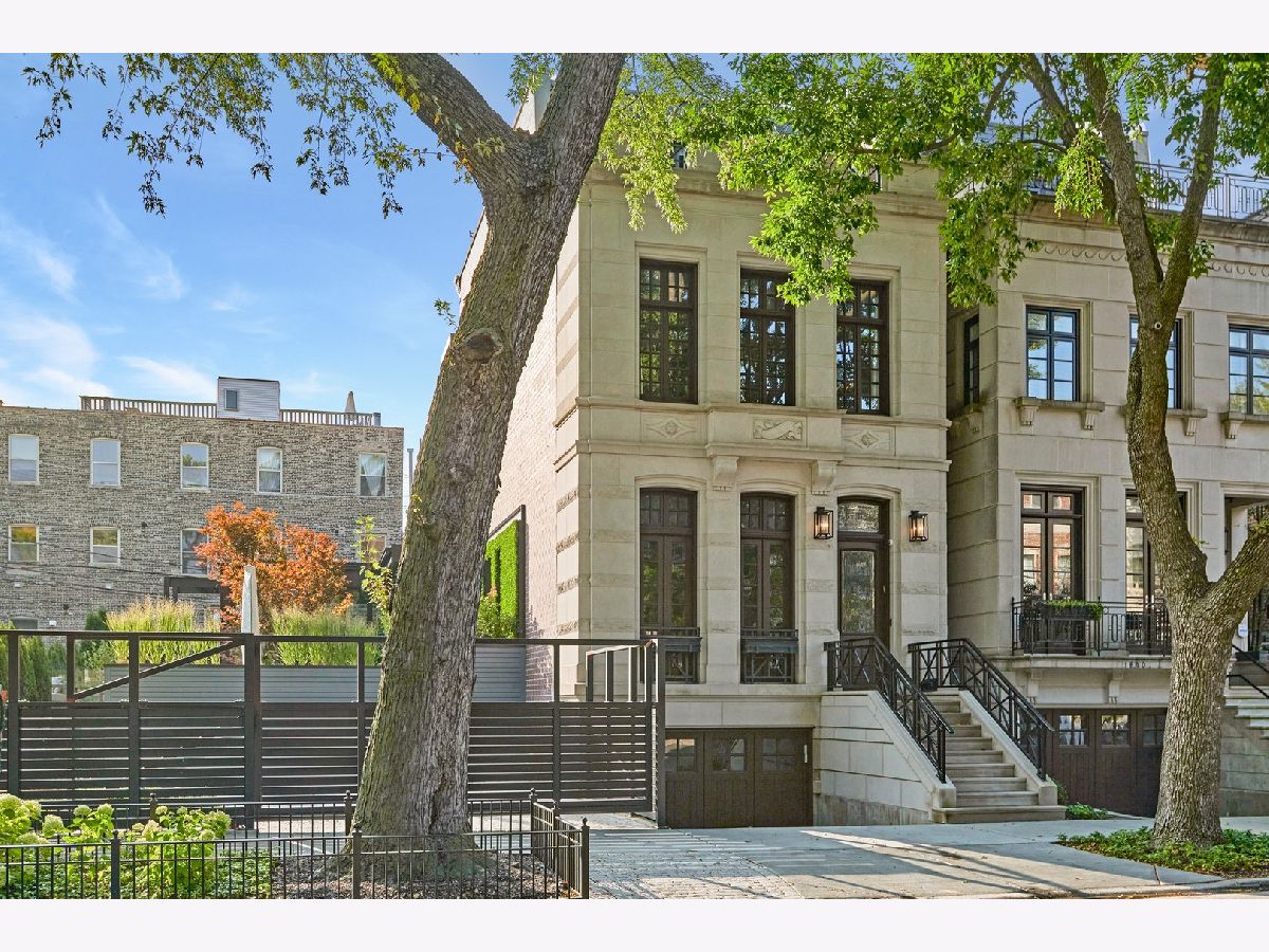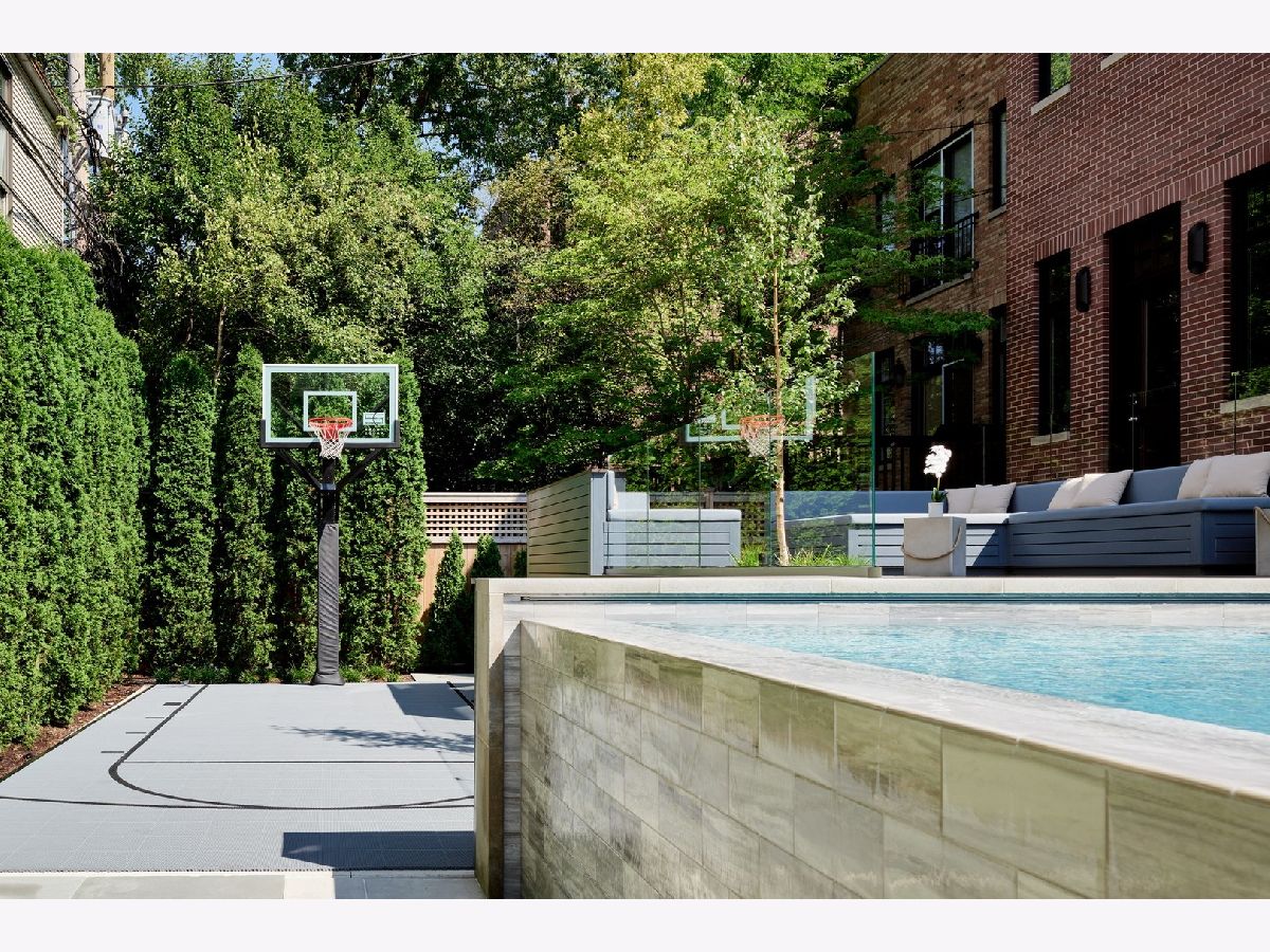 Classic limestone and brick single-family home on two and a half lots on coveted Burling Street with spectacular outdoor space. This outdoor footprint includes a swimming pool, outdoor kitchen, temperature controlled four-season glass atrium with accordion windows, sport court, and a gated parking pad for guests. The main level features high ceilings across a large living room with hardwood floors and a stone fireplace, a formal dining room with modern millwork and glass French doors that open to the deck, a grand staircase, a powder room, a chef's kitchen, a built-in breakfast table, and a family room with a second fireplace and a coffered ceiling. The family room connects via sliding doors to a four-season sunroom accessing the best-in-class outdoor space. Back inside, the second level features two secondary bedrooms, a laundry room, and a fabulous primary suite with a third fireplace, two custom walk-in closets, and a spa bath with a dual vanity, soaking tub, and steam shower. The top floor is dedicated to a large entertainment space, a game room with a wet bar, a guest bedroom or office, a full bath, and two more decks. This home's lower level has a large recreation space, a guest bedroom, a full bath, a 2nd laundry room, and access to the home's attached garage. Additional callouts include heated sidewalks, front steps, and parking pad, amazing natural light throughout, arched transitions and doorways, designer light fixtures, abundance of storage, composite decking, irrigation, and professional landscaping. There is private neighborhood security with multiple cars working each night. Located within a short walk to the best dining and shopping in Lincoln Park, 1838 N Burling is elevated living on Chicago's North Side.