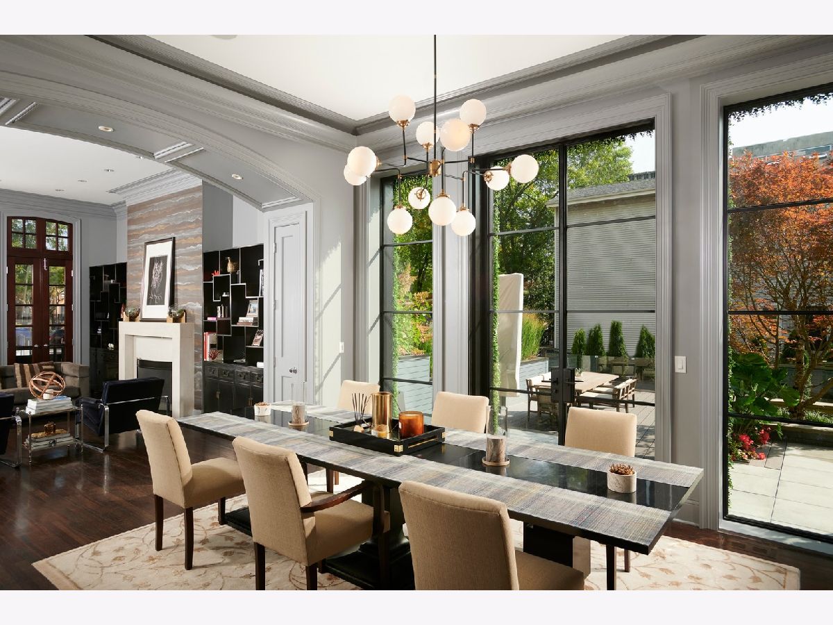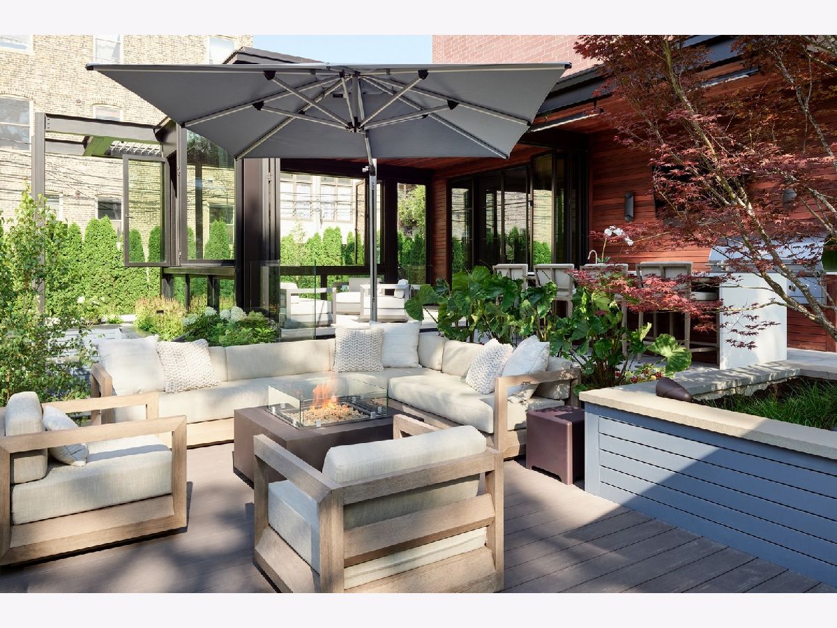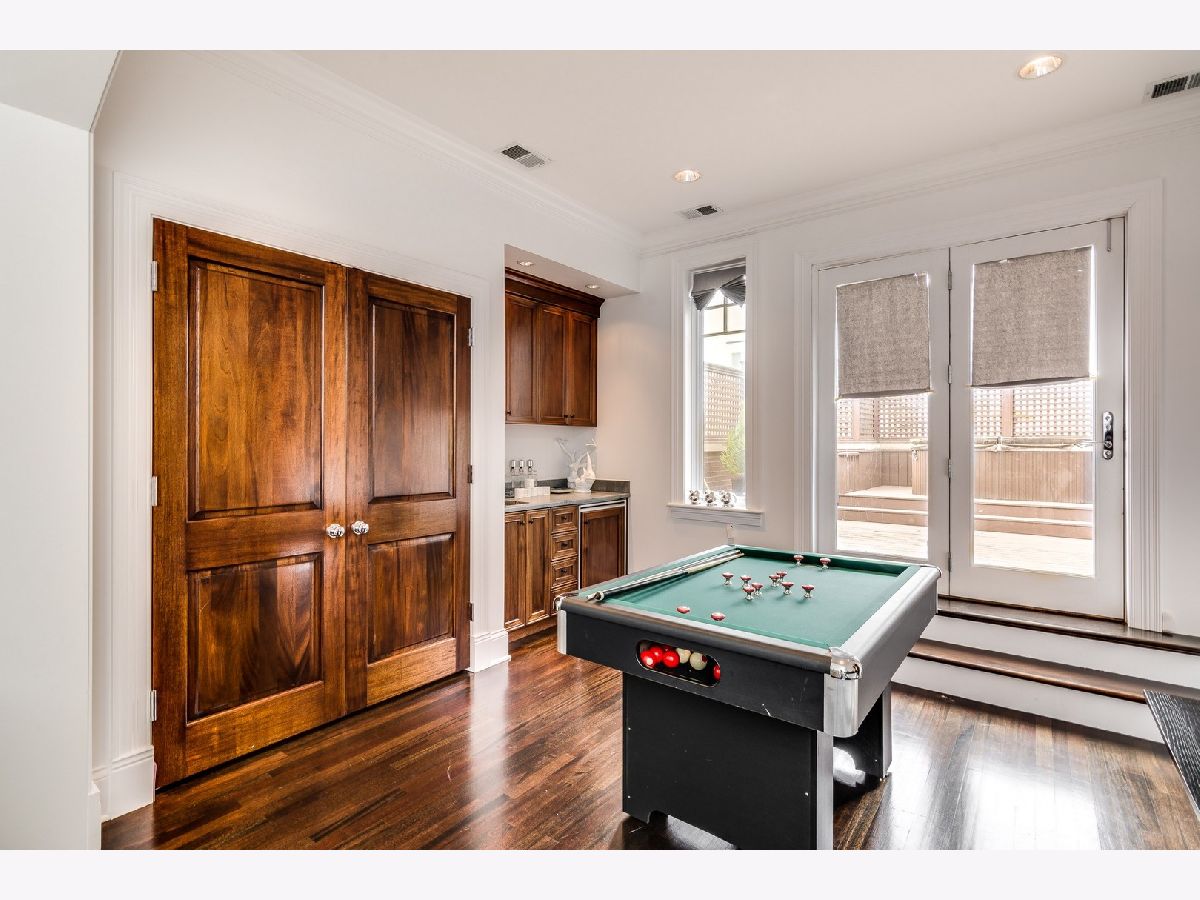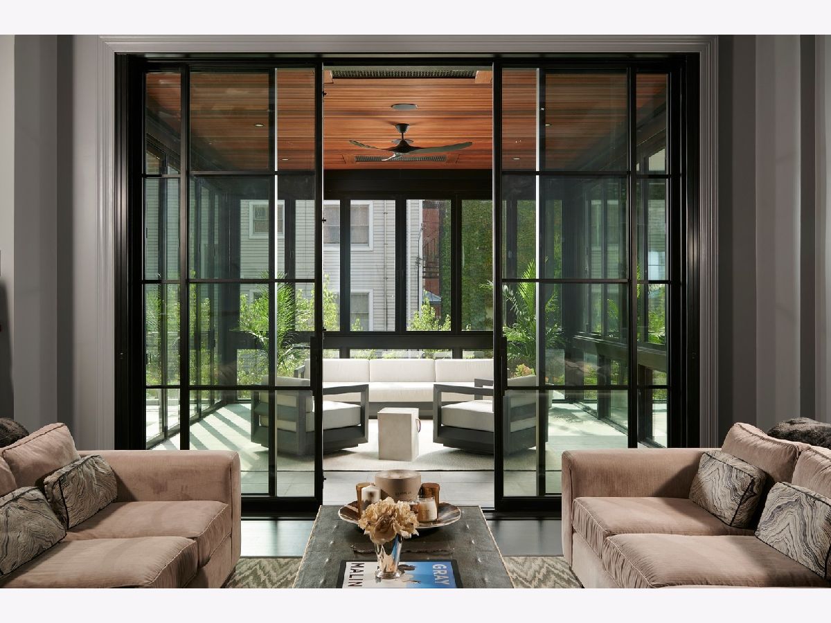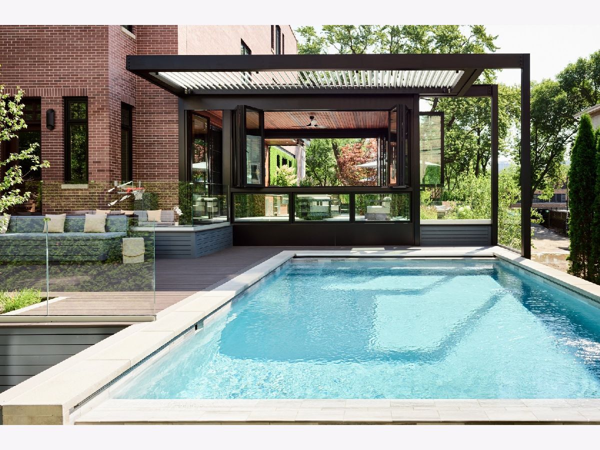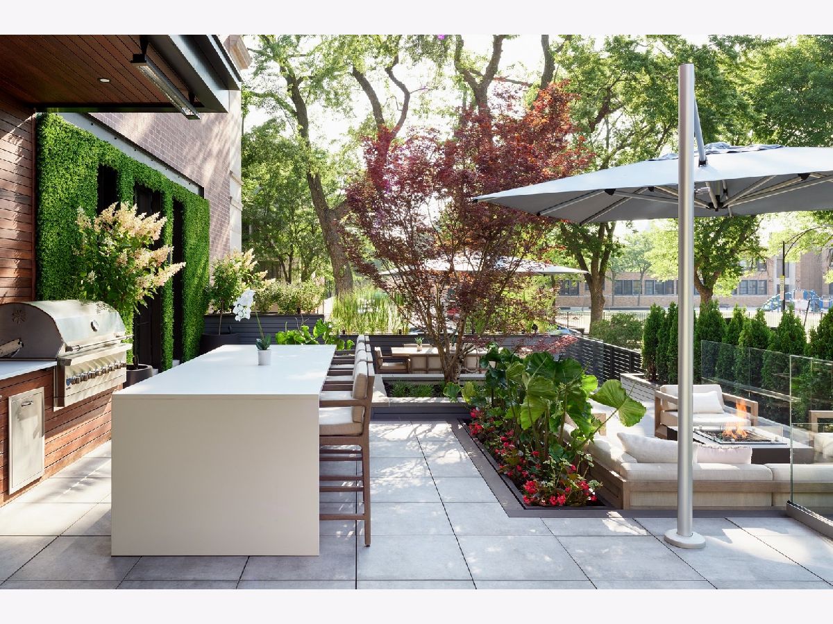 Classic limestone and brick single-family home on two and a half lots on coveted Burling Street with spectacular outdoor space. This outdoor footprint includes a swimming pool, outdoor kitchen, temperature controlled four-season glass atrium with accordion windows, sport court, and a gated parking pad for guests. The main level features high ceilings across a large living room with hardwood floors and a stone fireplace, a formal dining room with modern millwork and glass French doors that open to the deck, a grand staircase, a powder room, a chef's kitchen, a built-in breakfast table, and a family room with a second fireplace and a coffered ceiling. The family room connects via sliding doors to a four-season sunroom accessing the best-in-class outdoor space. Back inside, the second level features two secondary bedrooms, a laundry room, and a fabulous primary suite with a third fireplace, two custom walk-in closets, and a spa bath with a dual vanity, soaking tub, and steam shower. The top floor is dedicated to a large entertainment space, a game room with a wet bar, a guest bedroom or office, a full bath, and two more decks. This home's lower level has a large recreation space, a guest bedroom, a full bath, a 2nd laundry room, and access to the home's attached garage. Additional callouts include heated sidewalks, front steps, and parking pad, amazing natural light throughout, arched transitions and doorways, designer light fixtures, abundance of storage, composite decking, irrigation, and professional landscaping. There is private neighborhood security with multiple cars working each night. Located within a short walk to the best dining and shopping in Lincoln Park, 1838 N Burling is elevated living on Chicago's North Side.