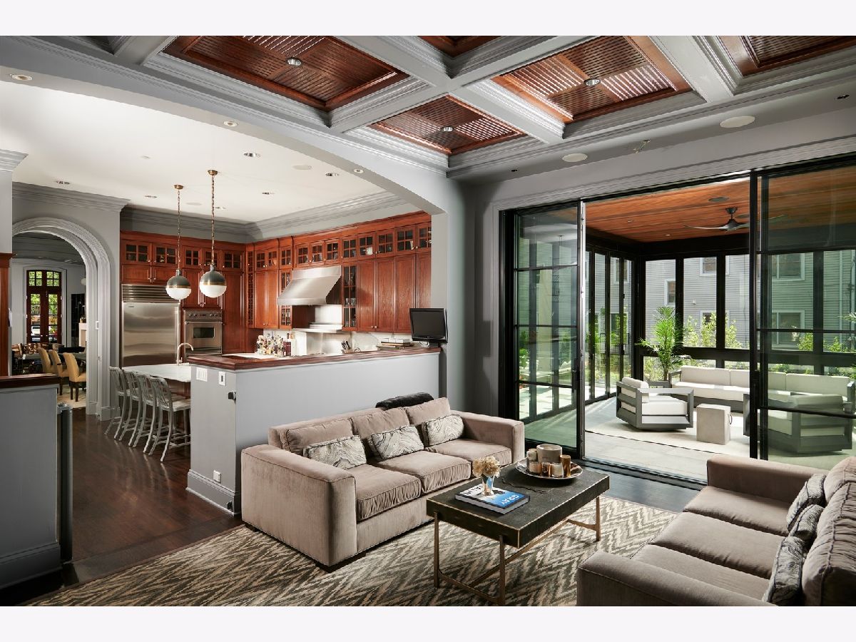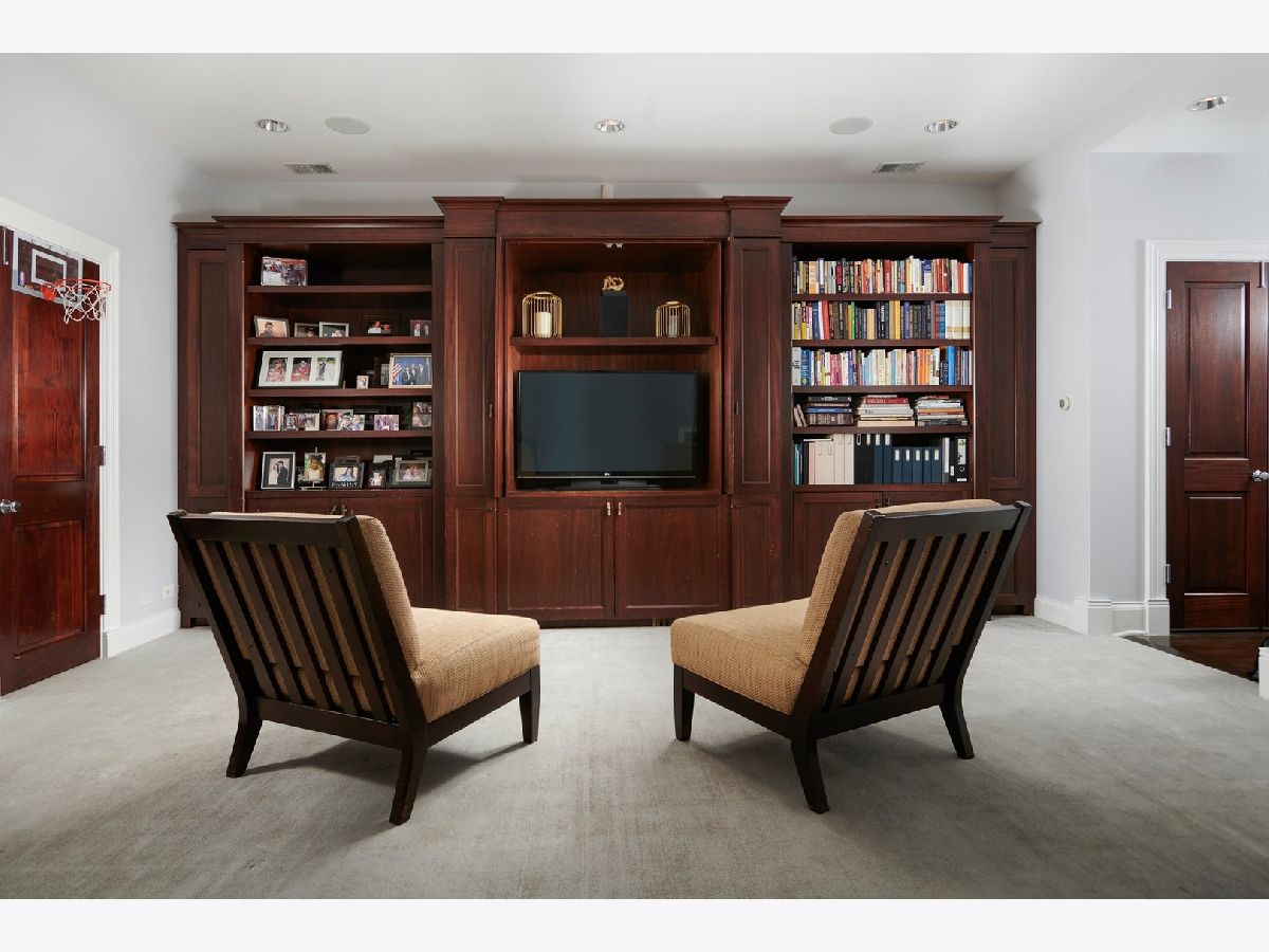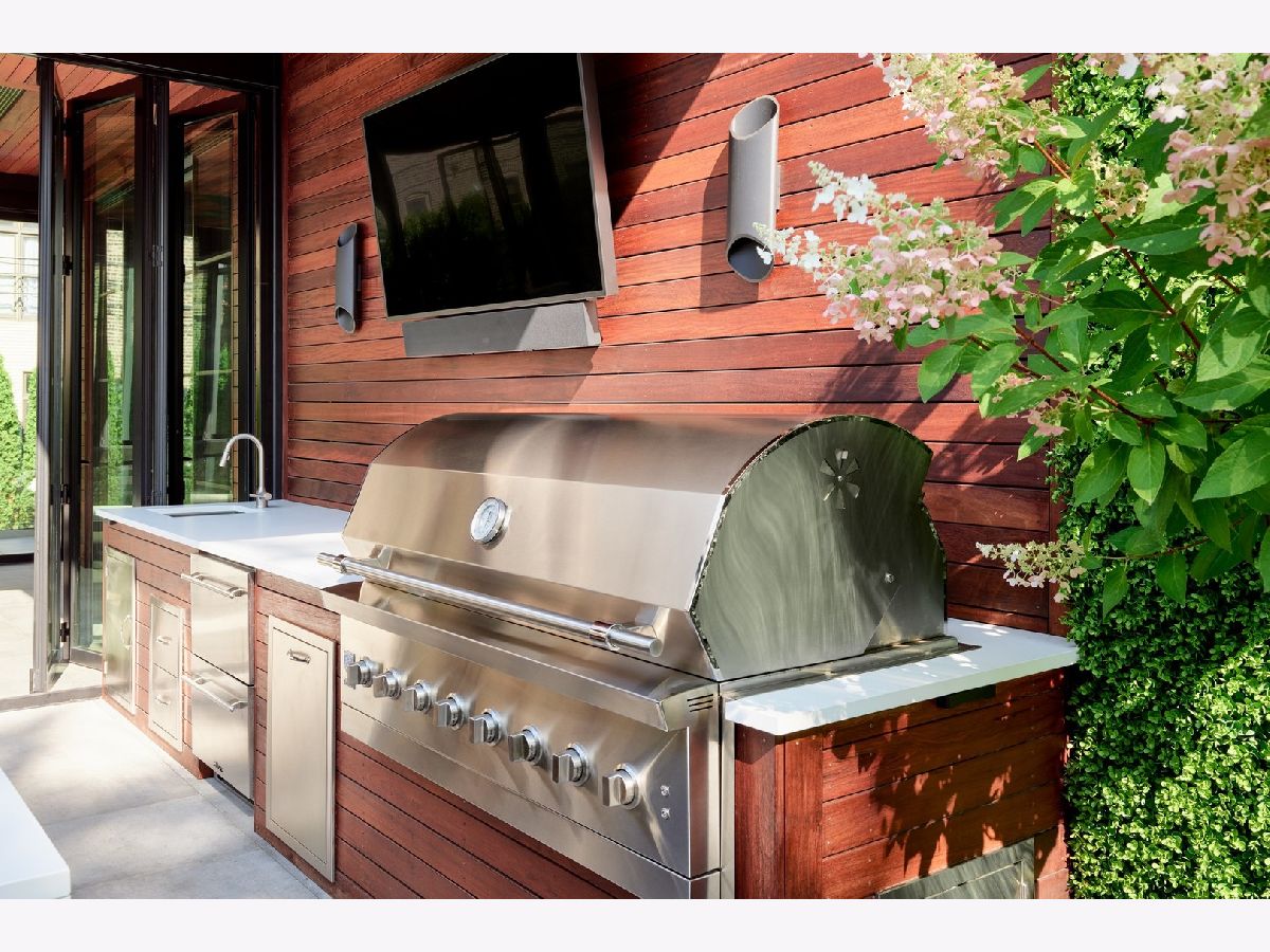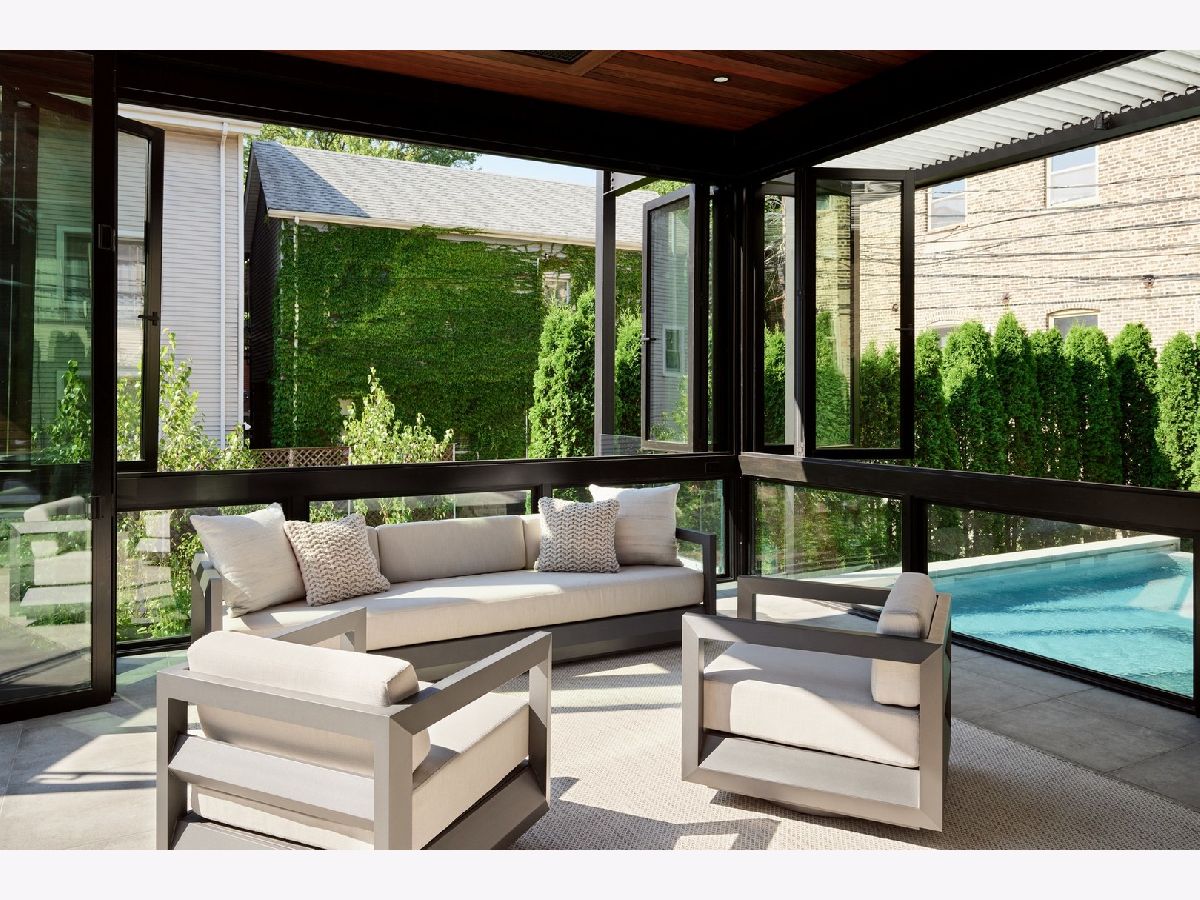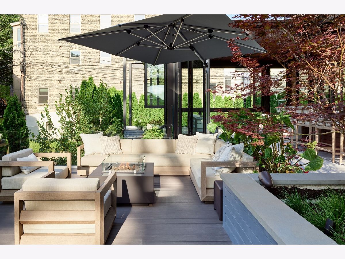 Classic limestone and brick single-family home on two and a half lots on coveted Burling Street with spectacular outdoor space. This outdoor footprint includes a swimming pool, outdoor kitchen, temperature controlled four-season glass atrium with accordion windows, sport court, and a gated parking pad for guests. The main level features high ceilings across a large living room with hardwood floors and a stone fireplace, a formal dining room with modern millwork and glass French doors that open to the deck, a grand staircase, a powder room, a chef's kitchen, a built-in breakfast table, and a family room with a second fireplace and a coffered ceiling. The family room connects via sliding doors to a four-season sunroom accessing the best-in-class outdoor space. Back inside, the second level features two secondary bedrooms, a laundry room, and a fabulous primary suite with a third fireplace, two custom walk-in closets, and a spa bath with a dual vanity, soaking tub, and steam shower. The top floor is dedicated to a large entertainment space, a game room with a wet bar, a guest bedroom or office, a full bath, and two more decks. This home's lower level has a large recreation space, a guest bedroom, a full bath, a 2nd laundry room, and access to the home's attached garage. Additional callouts include heated sidewalks, front steps, and parking pad, amazing natural light throughout, arched transitions and doorways, designer light fixtures, abundance of storage, composite decking, irrigation, and professional landscaping. There is private neighborhood security with multiple cars working each night. Located within a short walk to the best dining and shopping in Lincoln Park, 1838 N Burling is elevated living on Chicago's North Side.
