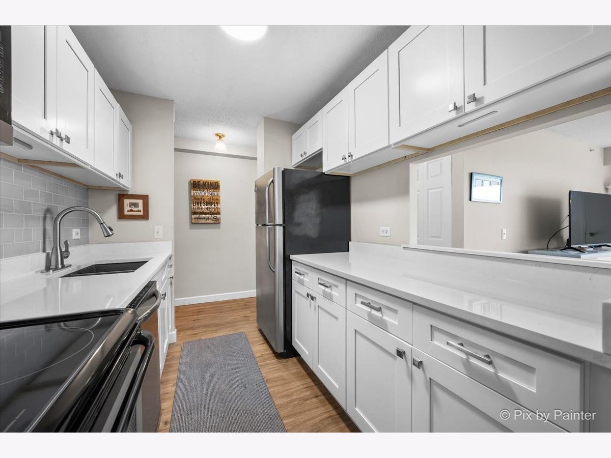 Enjoy the stunning sixth-floor views! Southern exposure provides an abundance of natural light in this beautifully updated condo! Featuring modern vinyl flooring, six-panel closet doors, and fresh white trim throughout. The remodeled kitchen shines with bright white cabinetry, quartz countertops, and stainless steel appliances! The updated bath offers a raised vanity with a granite top for a clean, modern look. The spacious primary bedroom provides excellent closet space, and major mechanicals are already taken care of with the furnace and central air replaced in 2017. Relax and enjoy the resort-like amenities of this quiet community-mature trees, ELEVATOR, plenty of parking, an exercise room, and a pool. All just a short walk to Hilldale Golf Club and minutes from shopping, restaurants, and major highways. Truly a wonderful place to call home!