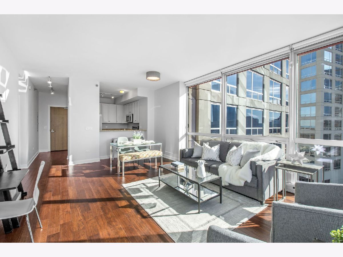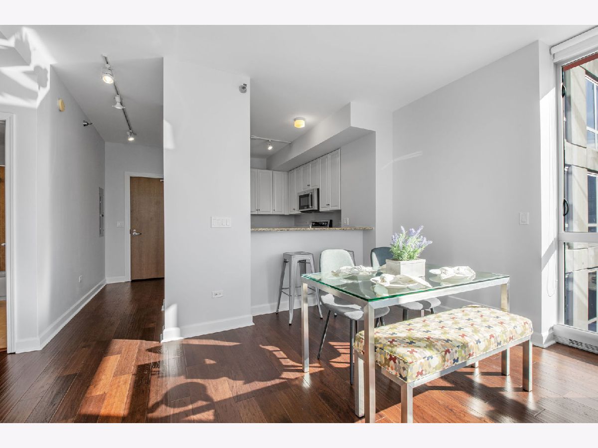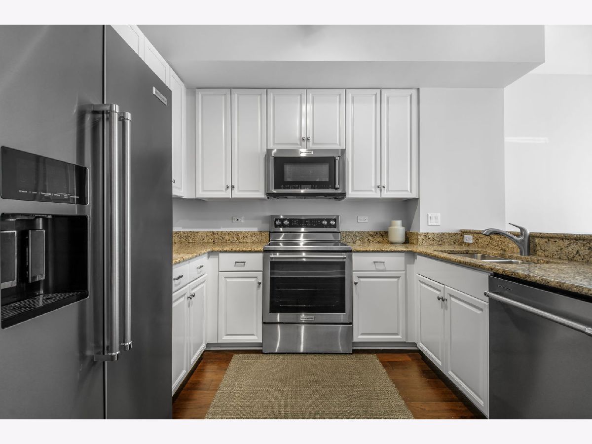 Enjoy full amenity living in this two bedroom two bathroom condo with prime Prairie District location, the epitome of move-in ready. Spacious living area filled with natural light from the floor to ceiling windows with custom window shades. The open concept layout offers a seamless flow between living and dining areas with updated hardwood floors throughout. The kitchen features stainless steel appliances, all new in 2022, plenty of cabinet storage, an eat-in breakfast bar, and granite countertops. The private balcony with west facing views is the perfect spot to relax and enjoy sunsets. Spacious primary suite with hardwood floors, walk-in-closet and ensuite primary bathroom. Spacious second bedroom with ample closet space. In unit laundry, plenty of storage space including an additional storage locker, and meticulously maintained throughout! Attached garage parking space available for 25k. Full amenity building with penthouse recreation room, rooftop outdoor pool, exercise room, door person, receiving room, bike storage and more. Excellent Prairie District location with parks nearby, Museum Campus, the Lakefront Trail, and many wonderful shops and restaurants, with convenient access to the Loop, public transportation and expressways and steps from the EL trains.