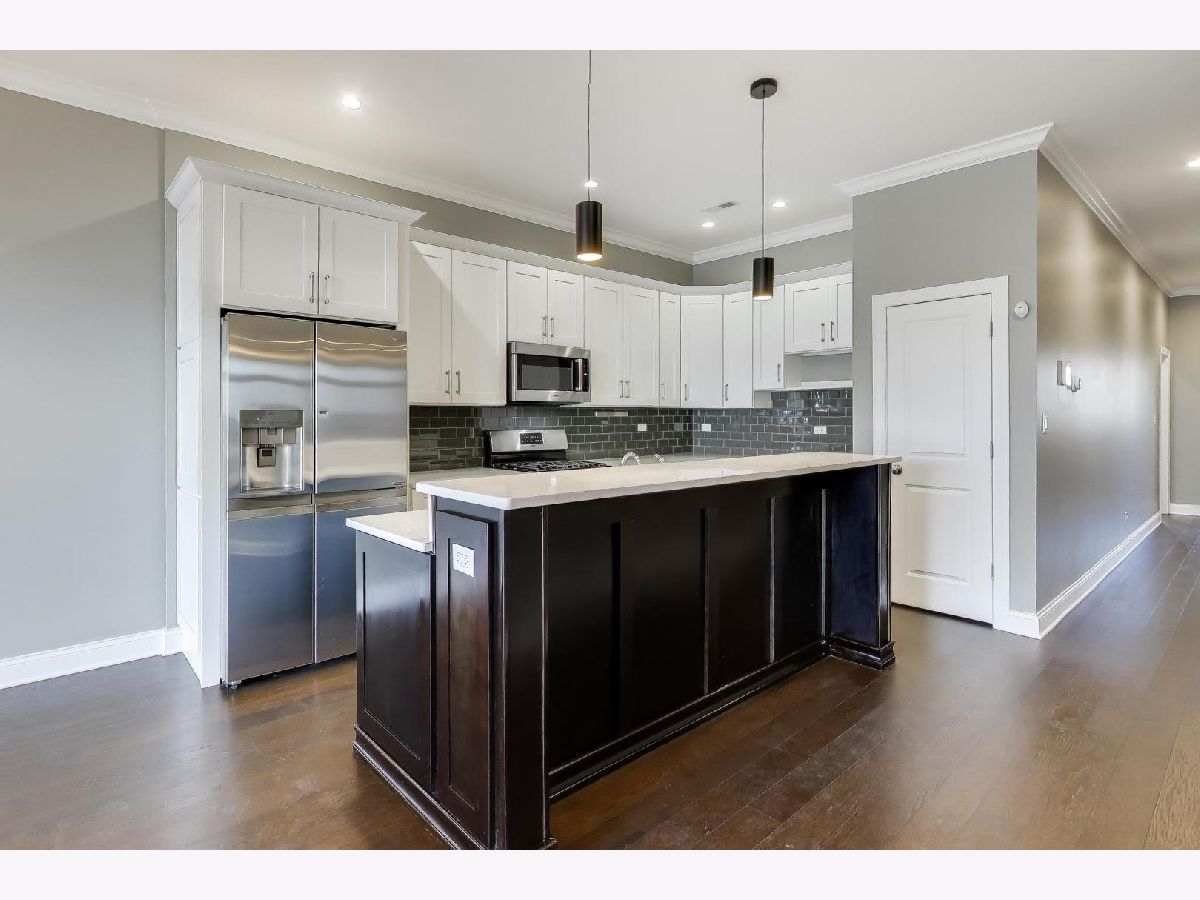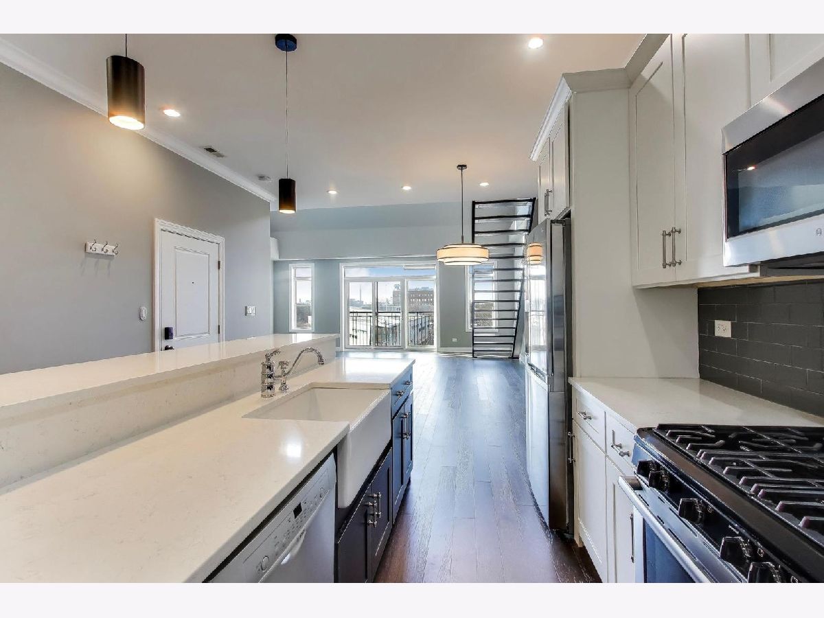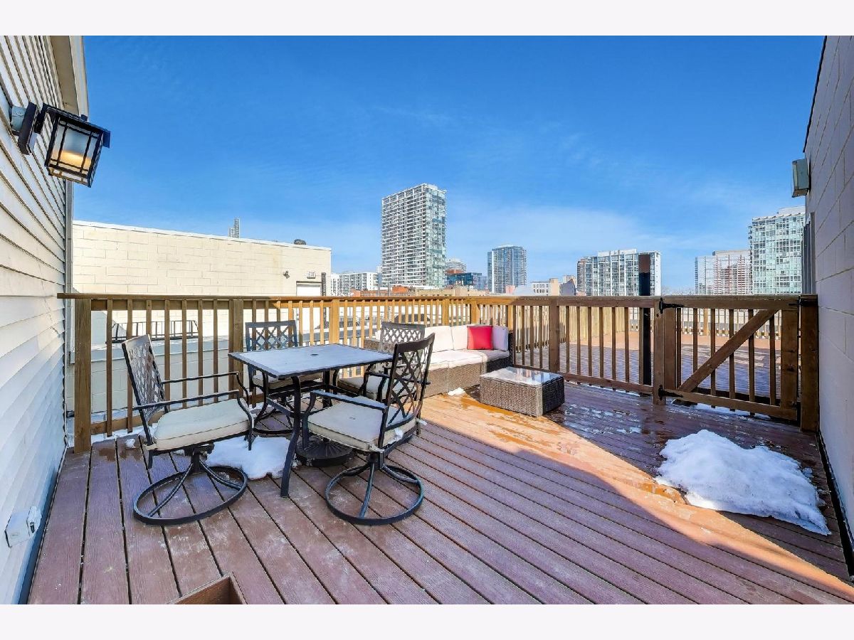 Experience true South Loop penthouse living in this extra-wide, lofted 3BR/2BA with rooftop deck home - recently updated with new hardwood floors and fresh paint throughout. Dramatic west-facing two-story windows pour in afternoon light, while the open-concept layout makes entertaining effortless. At the center of it all, the kitchen delivers: an oversized island, modern white cabinetry, farmhouse sink, pantry, and appliances including an LG refrigerator and Bosch oven, microwave, and dishwasher. Enjoy the impressive living room warmed by the gas fireplace, then head upstairs and outside to your private Trex composite deck, accessed through a *new* Pella sliding door-ideal for sunsets and weekend hosting. The primary suite is a lovely retreat with a walk-in closet with built-in shelving and a spacious marble en-suite bath with double sink, large vanity, oversized shower, and separate tub. A full second bath, in-unit washer/dryer, and a lofted third bedroom/office flex space complete the home. One exterior parking space is included, and smart-home upgrades like smart lighting, a Nest thermostat, and Nest smoke/CO detector add everyday convenience. All of this, moments from the CTA Red/Green, Metra, the lakefront, and quick access to Downtown, Chinatown, Pilsen, and the expressways.