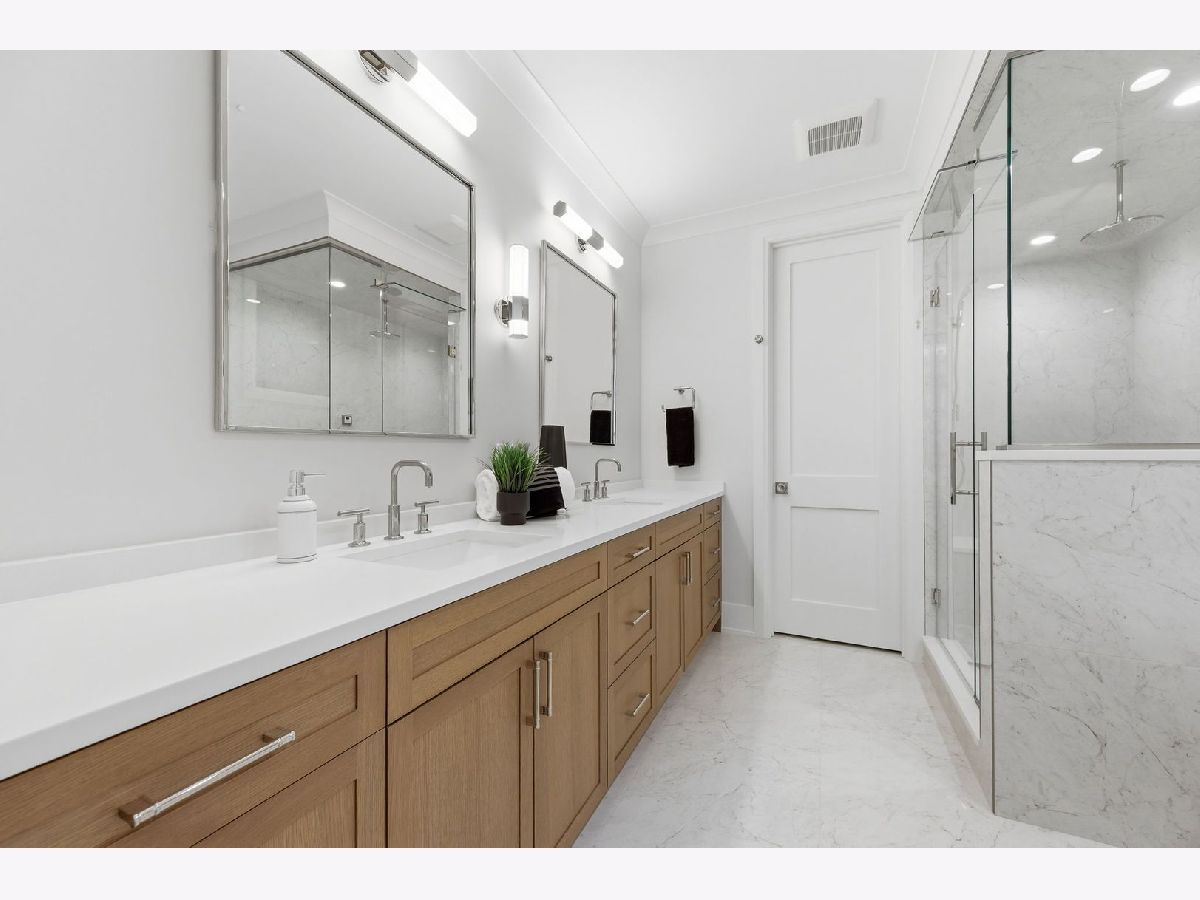 NOW DELIVERING! Mohawk on the Park-NEW CONSTRUCTION Offers a full-masonry, 4 bed/3.1 bath luxury duplex by respected local builder Pro-Homes in super prime SE Lincoln Park, set within an intimate three-unit building. A bright living room overlooking picturesque Mohawk Street, with additional space for true dining area, flows to a centerpiece luxury chef's kitchen with custom two-tone cabinetry, a large waterfall island, and integrated Wolf/Sub-Zero appliances; the rear family room opens through wide sliders to a paved, covered terrace outfitted with a built in grilling station, fireplace, gas line, recessed lighting, and ceiling fan - with additional, seamlessly integrated raised paved rear yard extending to the full garage rooftop deck! A well-placed powder room, coat closets, and a mud area complete the main level. The fully radiantly heated lower level hosts a gracious primary suite with dual walk-in closets and a spa-caliber bath featuring on-trend Kohler polished nickel plumbing, steam shower, soaking tub, and custom double vanity, plus three additional well-proportioned bedrooms and two full baths including a guest en-suite, along with a full laundry room. Elevated finishes include solid white oak flooring, custom moldings and trim, lightweight concrete between units for enhanced sound insulation, 9'+ ceiling heights, 8' doors, and professionally built-out closets. Garage parking is included, along with the full garage roof terrace. The absolute best location in Chicago - A must see!