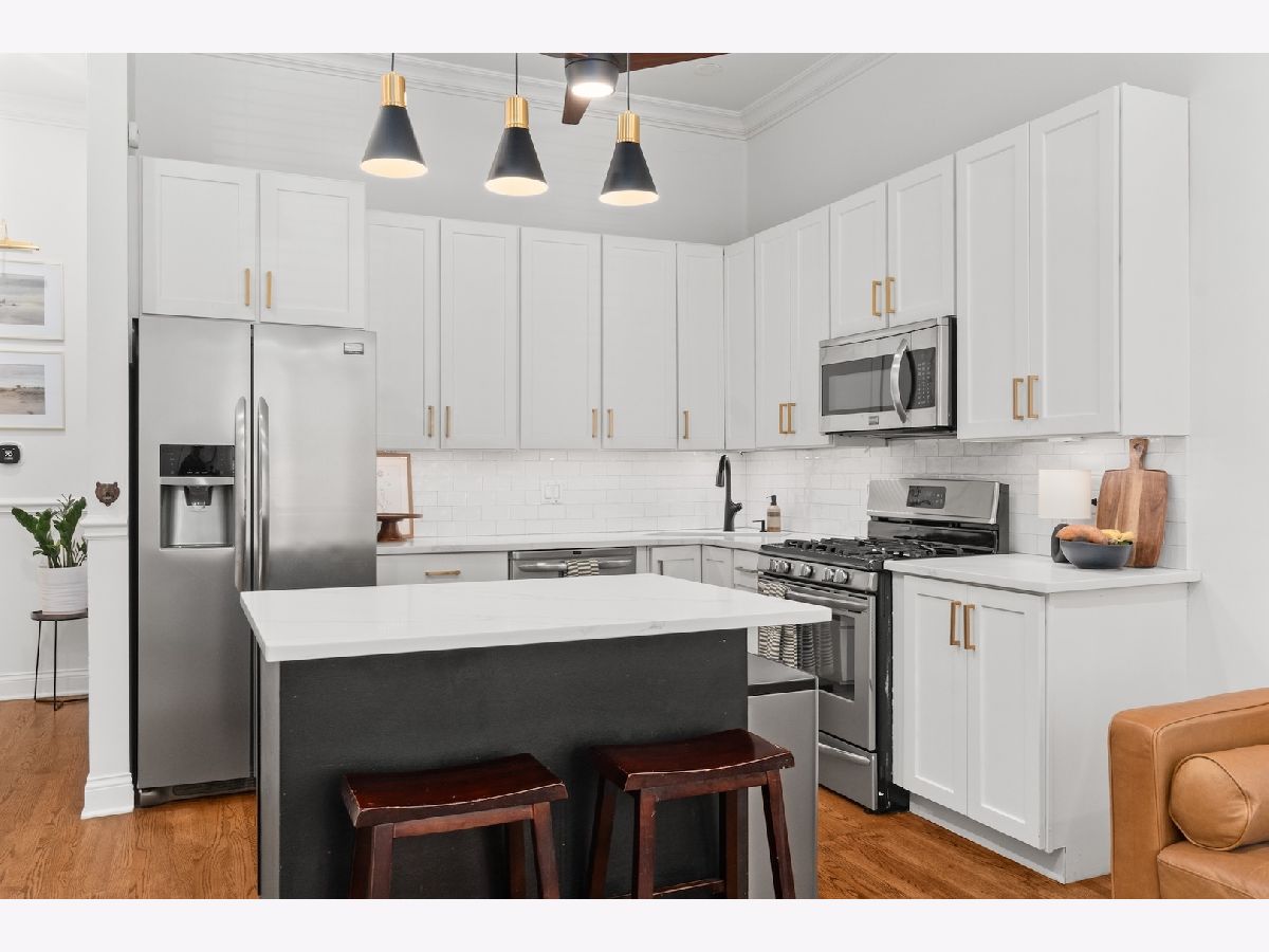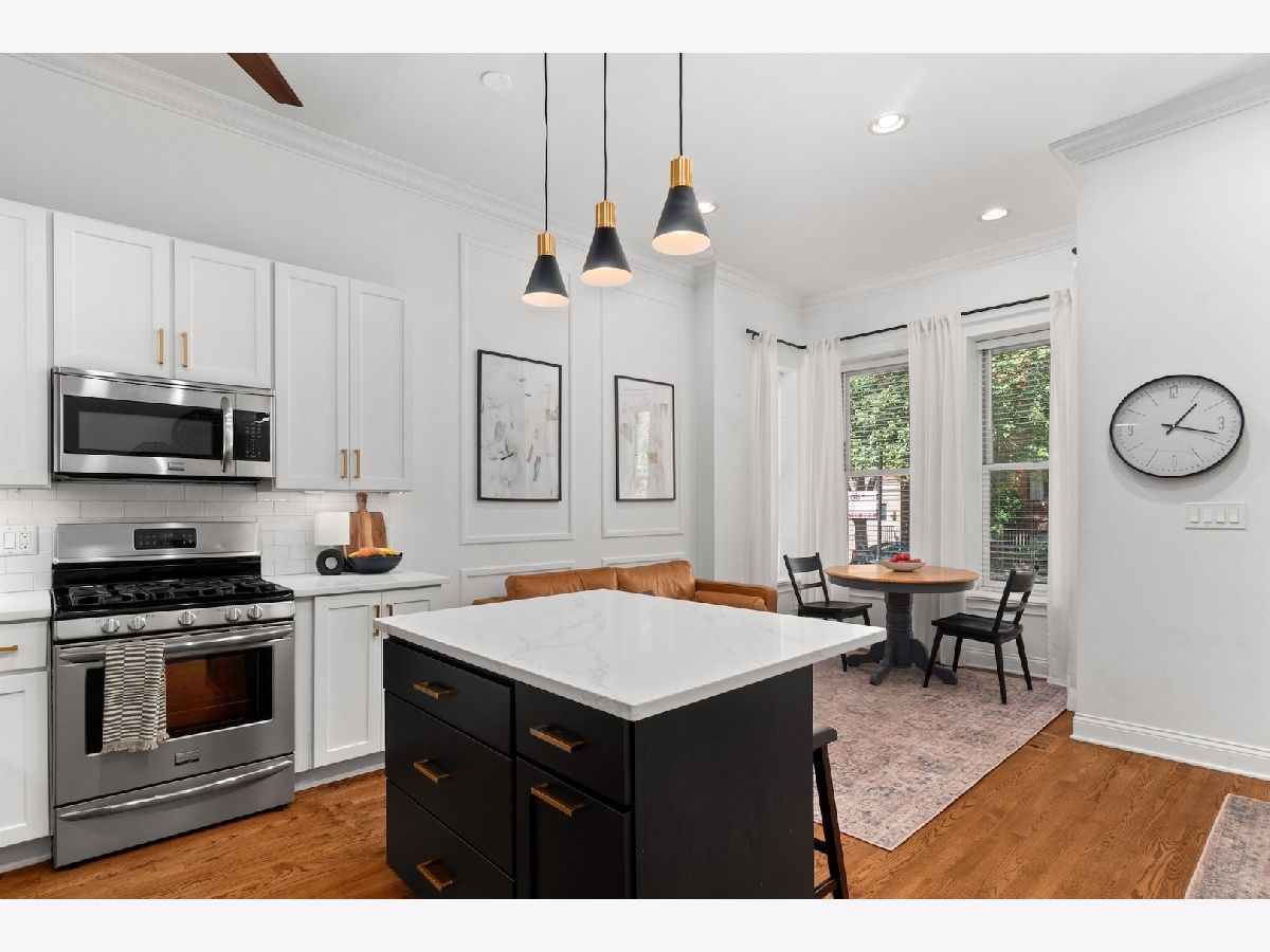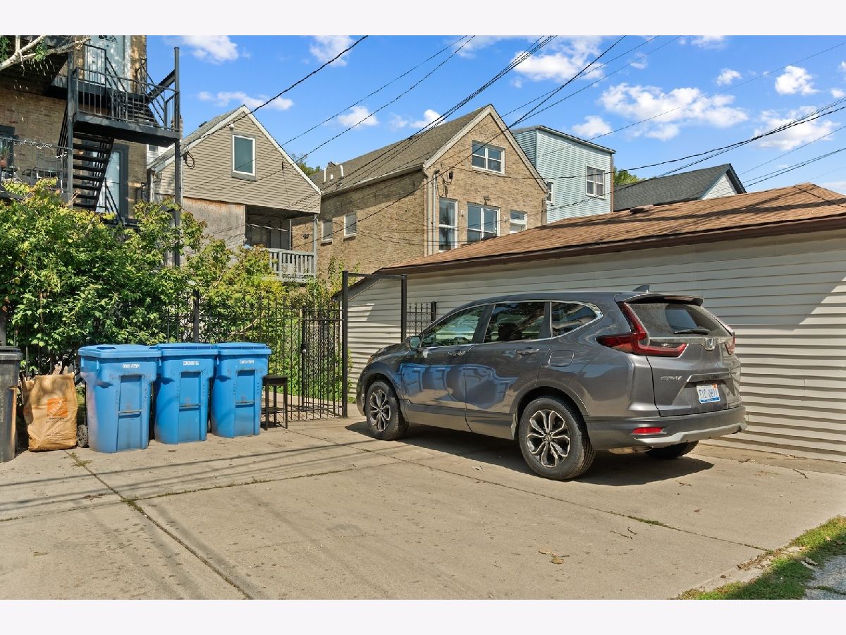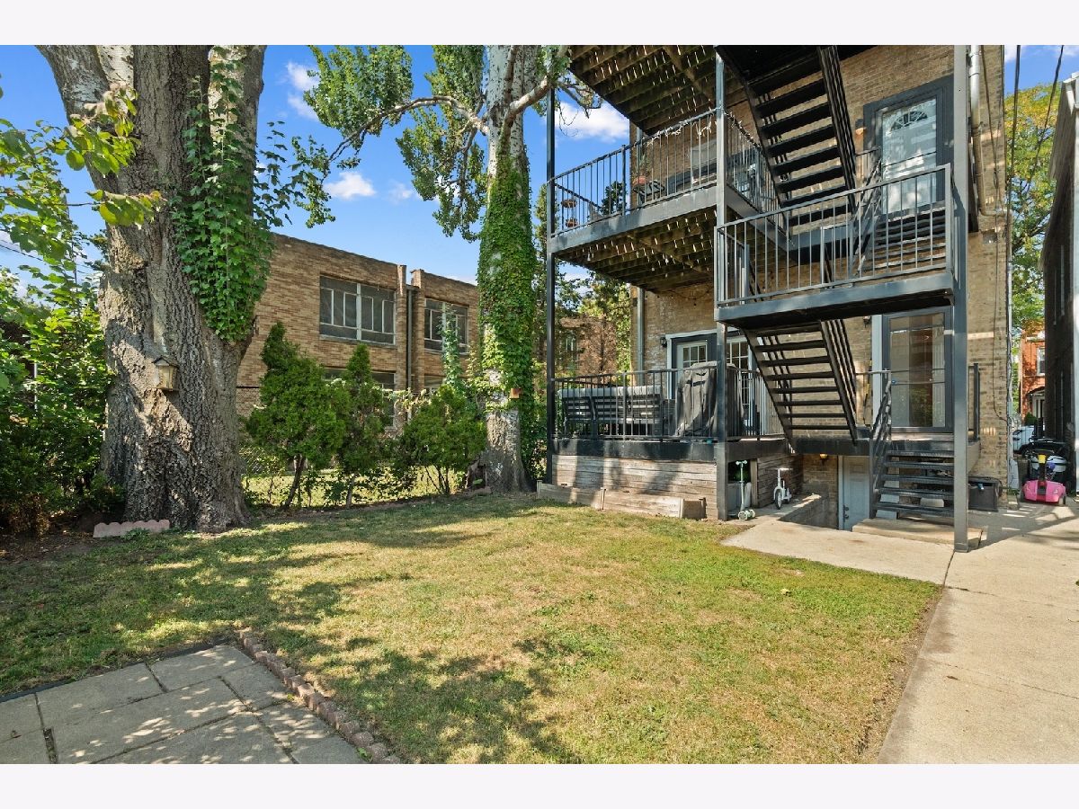 Tucked away on a quiet, tree-lined residential street in Ukrainian Village, this gorgeous 3-bedroom, 2.5-bath duplex-down offers the space and feel of a single-family home with the convenience of condo living. A private street-level entry welcomes you into your own foyer, eliminating shared hallways and setting the tone for a truly private living experience. The main level features soaring 11-foot ceilings, refinished hardwood floors, and an open, airy layout ideal for both everyday living and entertaining. The kitchen is outfitted with stainless steel appliances, ample cabinetry, and a generous island with counter seating, opening seamlessly to a large dining area that comfortably accommodates a table for six to eight. Just off the kitchen is the spacious primary suite, easily fitting a king-sized bed and offering a luxurious en-suite bath with dual vanities, a walk-in shower, a soaking tub, and a striking backlit mirror with built-in TV. Also on this level is a sizable second bedroom with excellent closet space and a recently updated powder room, perfectly placed for guests. The lower level is equally impressive, featuring a large family or recreation room with high ceilings and lookout windows that keep the space bright and inviting. The third bedroom is generously sized and versatile, ideal as a guest room, home office, or both, and is adjacent to a beautifully updated full bath with a tub/shower combination, glass enclosure, and modern vanity. This level also includes a laundry and mechanical room with side-by-side washer and dryer, a tankless hot water heater, and additional storage. Outdoor living is a standout feature, with a large private deck accessible from both the primary suite and the main hallway, overlooking a fully fenced and secured grassy backyard. One exterior parking space is included and is conveniently located just outside the fenced yard. The location is unbeatable, just steps from the shops and restaurants along Chicago and Division, Mariano's, Eckhart Park, Dark Matter Coffee, and the Division Blue Line stop, with quick access to I-90/94. Set within a well-maintained building with a strong sense of community, this home truly checks every box and is the one you've been waiting for.