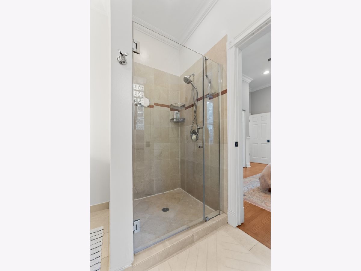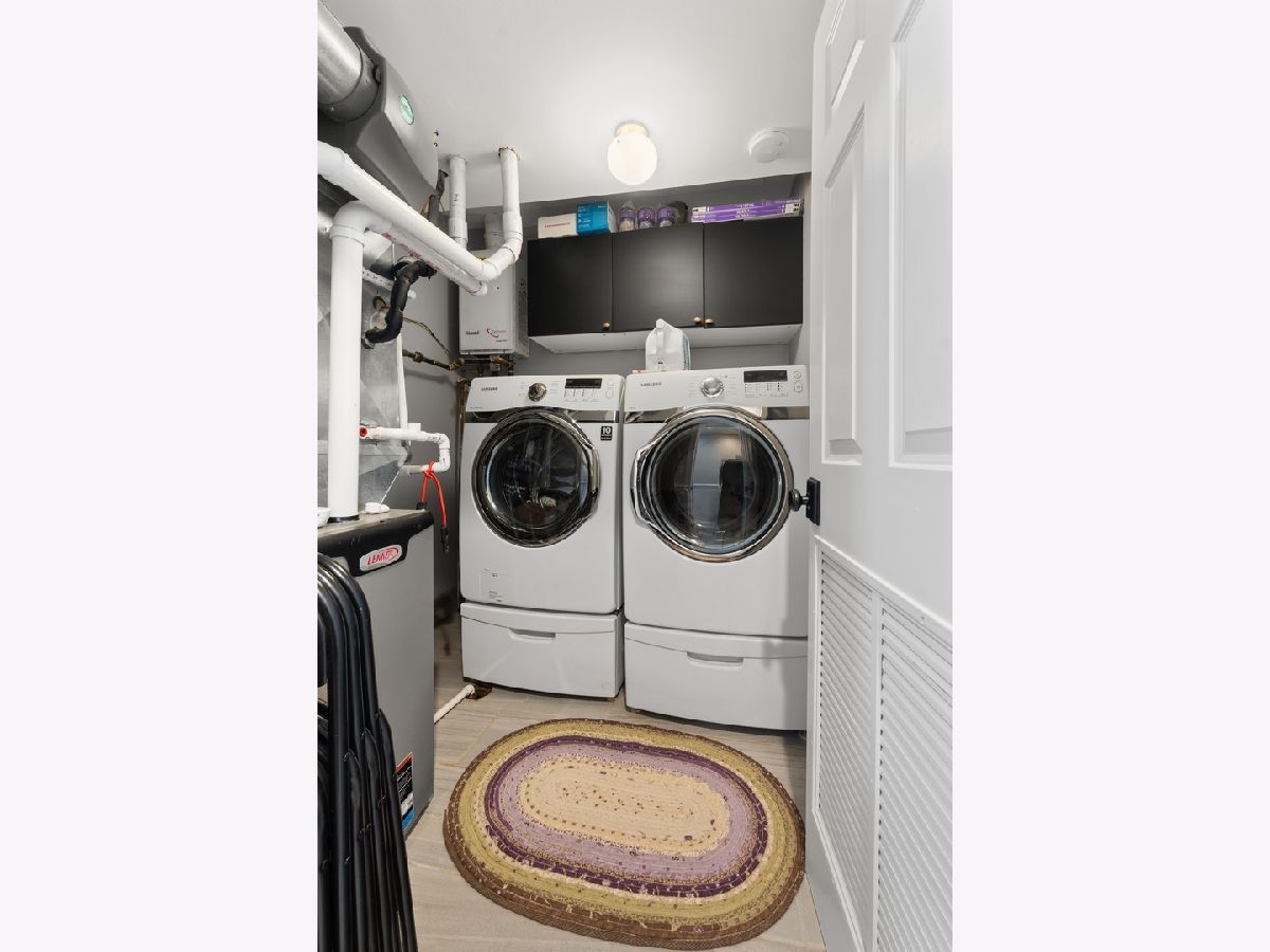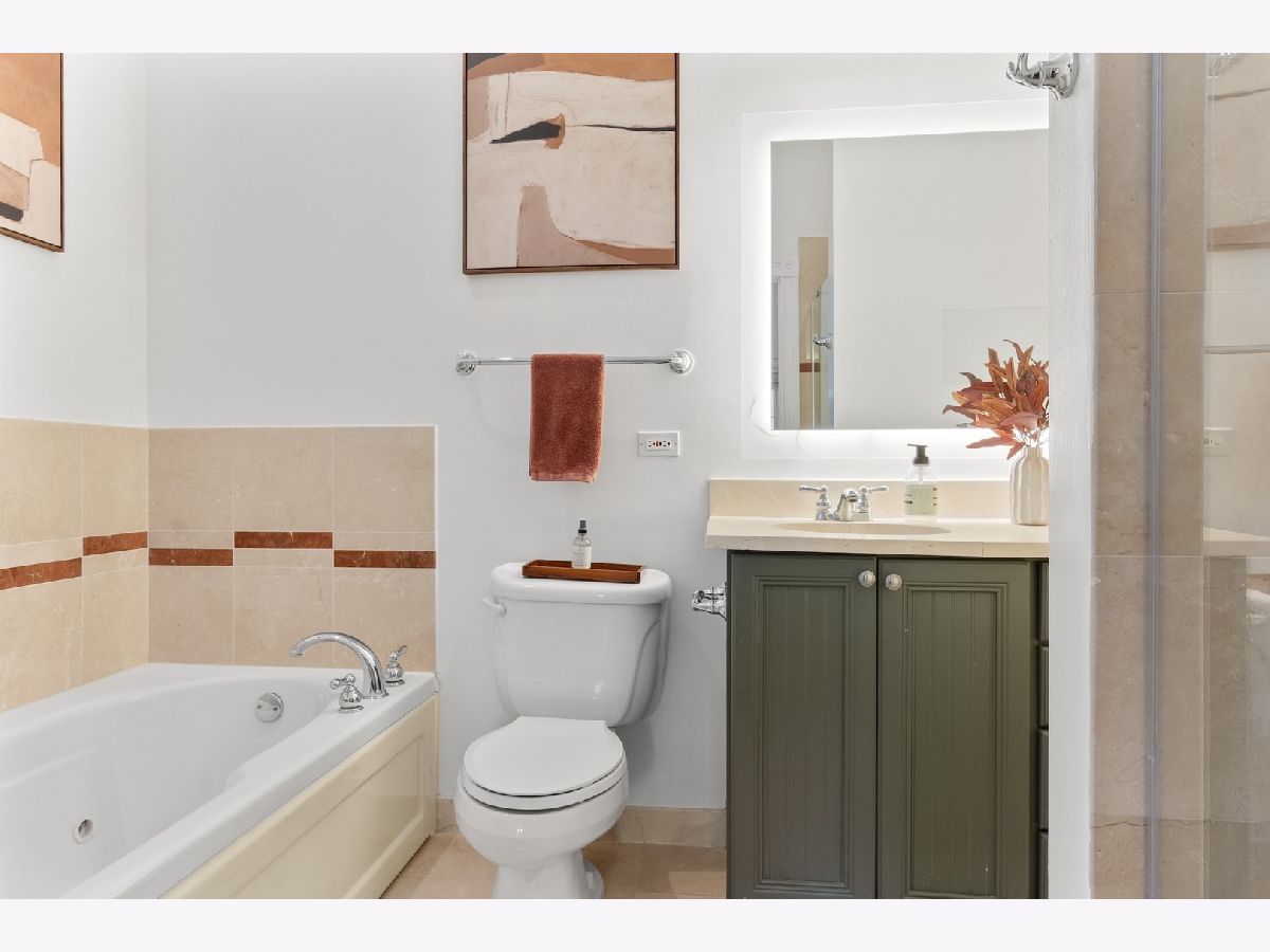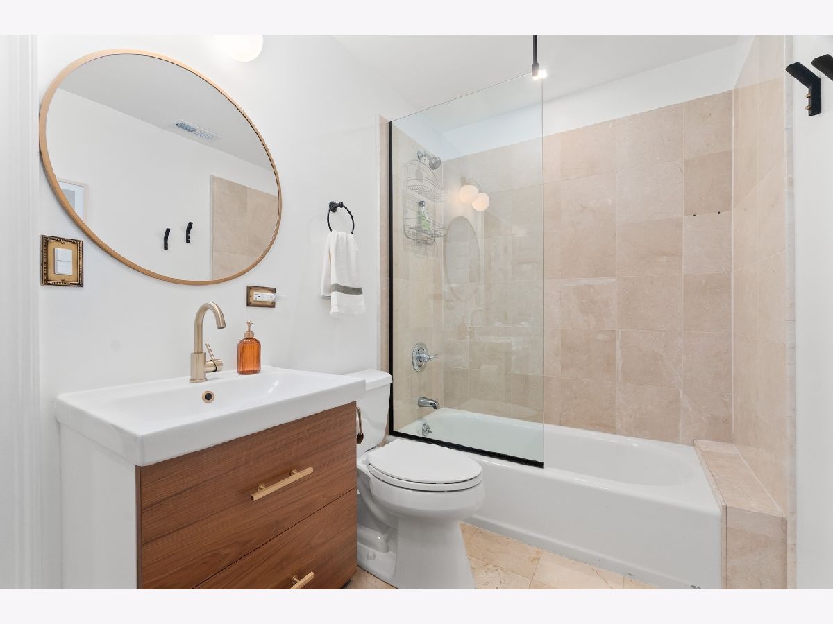 Tucked away on a quiet, tree-lined residential street in Ukrainian Village, this gorgeous 3-bedroom, 2.5-bath duplex-down offers the space and feel of a single-family home with the convenience of condo living. A private street-level entry welcomes you into your own foyer, eliminating shared hallways and setting the tone for a truly private living experience. The main level features soaring 11-foot ceilings, refinished hardwood floors, and an open, airy layout ideal for both everyday living and entertaining. The kitchen is outfitted with stainless steel appliances, ample cabinetry, and a generous island with counter seating, opening seamlessly to a large dining area that comfortably accommodates a table for six to eight. Just off the kitchen is the spacious primary suite, easily fitting a king-sized bed and offering a luxurious en-suite bath with dual vanities, a walk-in shower, a soaking tub, and a striking backlit mirror with built-in TV. Also on this level is a sizable second bedroom with excellent closet space and a recently updated powder room, perfectly placed for guests. The lower level is equally impressive, featuring a large family or recreation room with high ceilings and lookout windows that keep the space bright and inviting. The third bedroom is generously sized and versatile, ideal as a guest room, home office, or both, and is adjacent to a beautifully updated full bath with a tub/shower combination, glass enclosure, and modern vanity. This level also includes a laundry and mechanical room with side-by-side washer and dryer, a tankless hot water heater, and additional storage. Outdoor living is a standout feature, with a large private deck accessible from both the primary suite and the main hallway, overlooking a fully fenced and secured grassy backyard. One exterior parking space is included and is conveniently located just outside the fenced yard. The location is unbeatable, just steps from the shops and restaurants along Chicago and Division, Mariano's, Eckhart Park, Dark Matter Coffee, and the Division Blue Line stop, with quick access to I-90/94. Set within a well-maintained building with a strong sense of community, this home truly checks every box and is the one you've been waiting for.