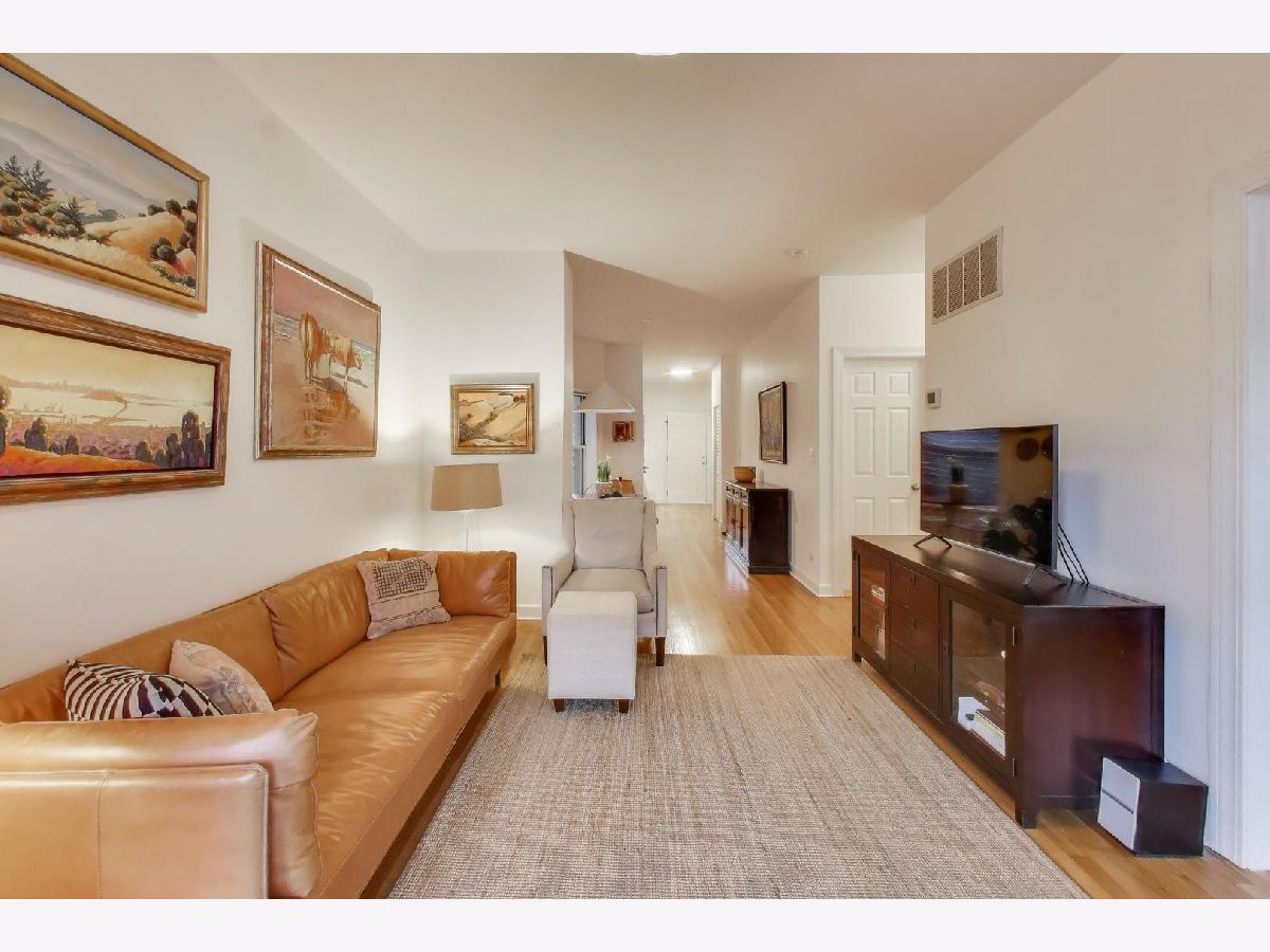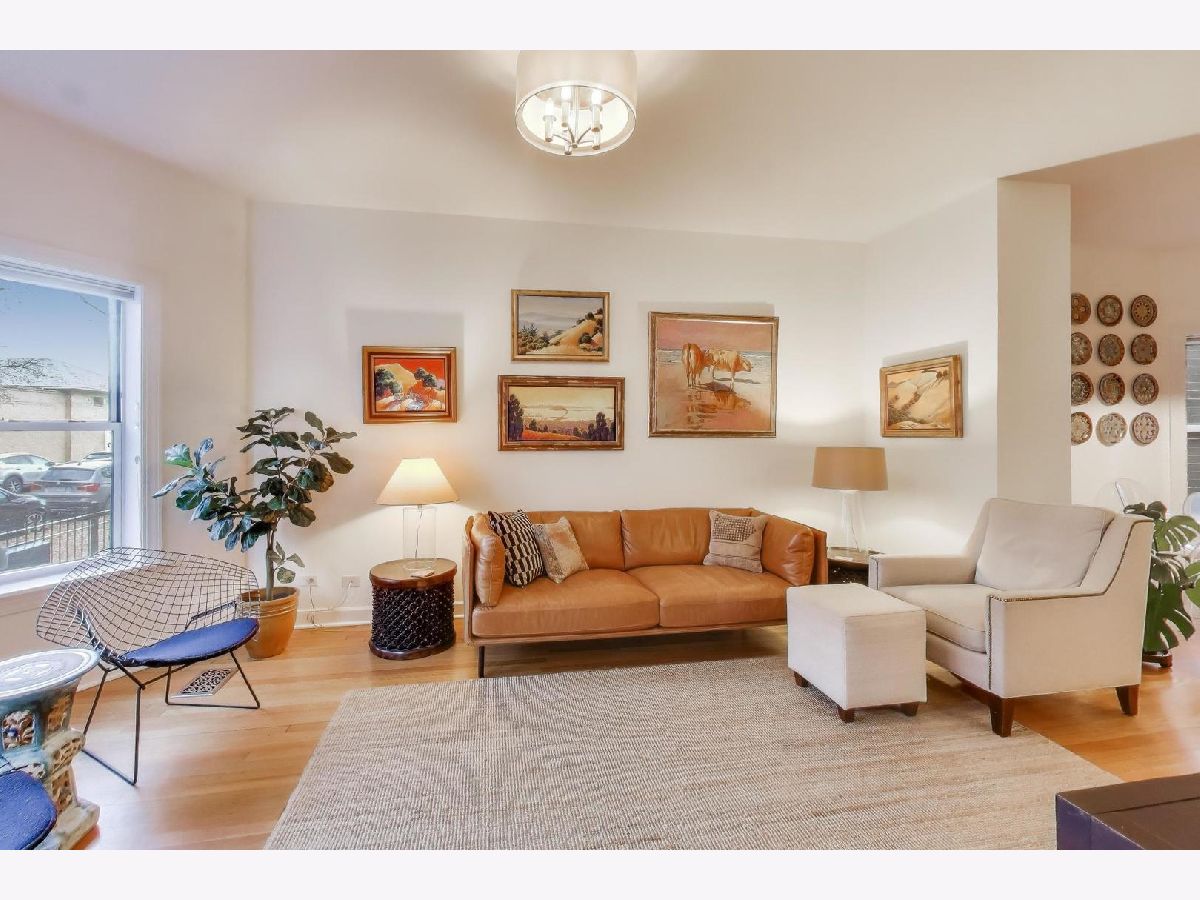 Bright and airy 2-bedroom, 2-bath condo at 1849 W Waveland #1, featuring a split-bedroom floor plan with a private master suite and hardwood floors throughout. The modern kitchen, with newer stainless steel appliances-fridge (04/21), oven (08/22), and washer/dryer (10/23)-opens to a large covered porch overlooking a beautifully manicured shared courtyard. Pet-friendly building with additional basement storage and bike area. Nestled in a prime Lakeview location, this home offers quick access to the Brown Line "El," making downtown commutes a breeze. Enjoy the vibrant Southport Corridor and nearby Northcenter and Roscoe Village, filled with boutique shops, acclaimed cafes like Loba Pastry & Coffee and Botanicals Coffee, specialty groceries including Trader Joe's and Whole Foods, fitness studios, and a wide variety of restaurants. Whether it's a morning coffee run, weekend brunch, or an evening stroll, everything you need is within easy reach. Recently replaced HVAC (04/21) and an intimate, well-run association complete this inviting home.