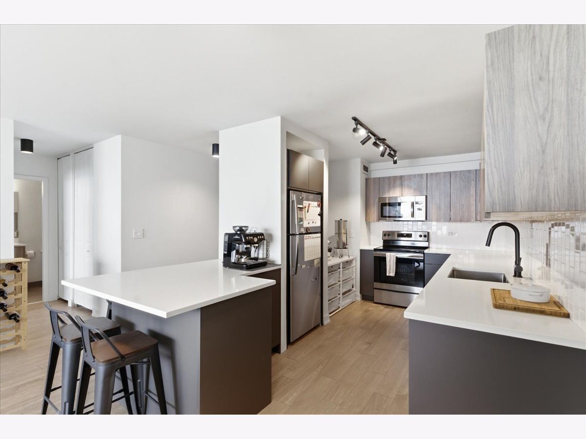 Enjoy truly unobstructed, million-dollar views of Lake Michigan and Lincoln Park from this beautifully renovated, high-floor condo. This spacious east-facing 1-bedroom, 1-bath home is one of the largest layouts in the tier, filled with natural light and designed for both comfort and style. The kitchen has been thoughtfully updated with modern two-tone cabinetry, white quartz countertops, stainless steel appliances, a sleek gooseneck faucet, and a peninsula with seating-perfect for casual dining or entertaining. The expansive living area easily accommodates both a full living room setup and a dedicated dining space, making it as functional as it is inviting. The bathroom has been fully renovated with contemporary finishes, including a stylish vanity, updated tilework, and modern lighting. The oversized bedroom comfortably fits a king-size bed along with additional furniture, and is complemented by a massive walk-in closet offering exceptional storage. Set in a full-amenity elevator building, residents enjoy 24-hour door staff, an outdoor pool, fitness center, party room, and on-site laundry. Ideally located in Lincoln Park on the border of Old Town, you're directly across from the Green City Farmers Market (Wednesdays & Saturdays, April through November) and just moments from North Avenue Beach, Lincoln Park Zoo, and some of the city's best dining, shopping, and nightlife. Commuting is effortless with nearby express buses and the Sedgwick Brown Line, plus convenient access to Mariano's, Whole Foods, Aldi, and more. This is a rare opportunity to own a move-in-ready home with iconic views in one of Chicago's most sought-after neighborhoods-schedule your private showing today. Garage parking available to rent for an additional $195/mo.