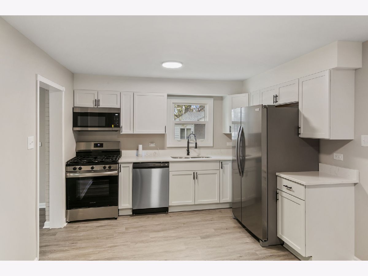 This beautifully updated brick and frame home in Homewood, IL is move-in ready and waiting for its new owners. Situated in the highly regarded Homewood-Flossmoor School District, this charming 4-bedroom, 2-bathroom residence features two bedrooms on the main floor and two on the second level. The stunning new kitchen boasts white shaker cabinets, elegant quartz countertops, and all new stainless steel appliances, while warm refinished hardwood floors grace the living room and both first-floor bedrooms, complemented by luxury vinyl plank in the kitchen and dining area and fresh new carpet upstairs. Both bathrooms have been fully updated, and the home shines with fresh paint throughout, all new lighting and fixtures, a brand new furnace, and a new hot water heater. Step outside to enjoy a nice-sized deck perfect for summer entertaining, with a full basement offering ample storage space. All renovations were completed with full village permits. Conveniently located near shopping, dining, parks, and transportation, this turnkey gem combines modern comforts with suburban charm in a fantastic neighborhood. Please view the 3-D tour and schedule your private showing Today!