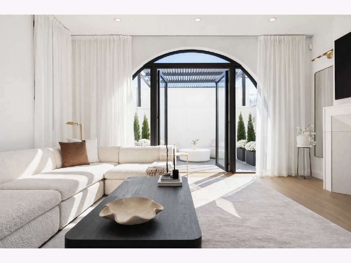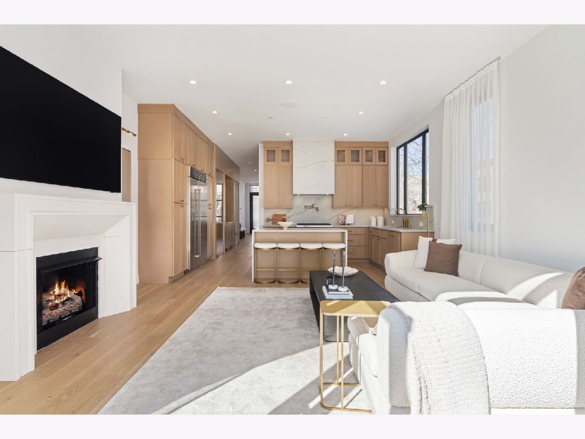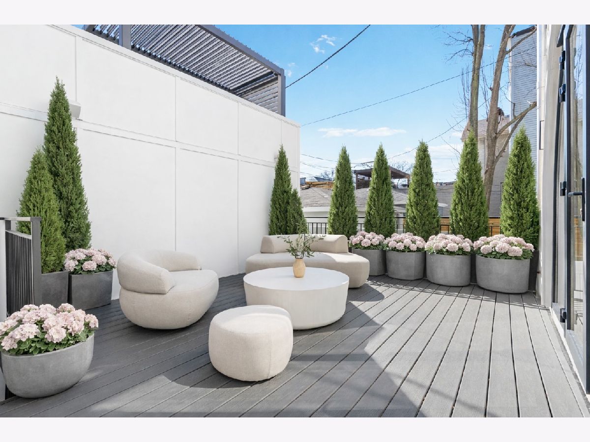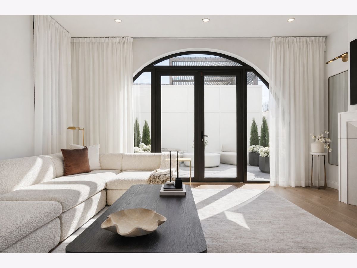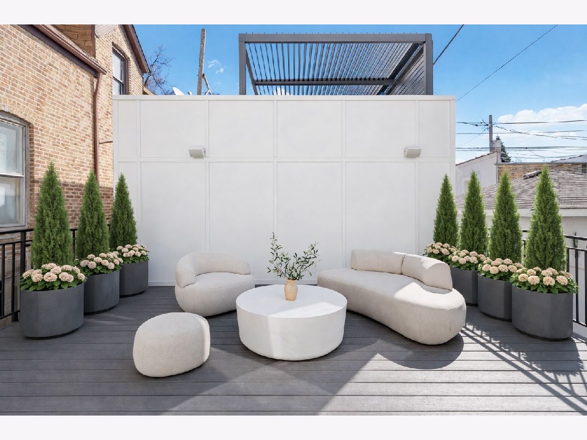 EXCEPTIONAL NEW CONSTRUCTION single-family home offering a seamless blend of modern luxury and timeless architectural detail, ideally situated on a tree-lined street in the heart of Bucktown, just steps from the 606 Trail. This 5-bedroom, 3.1-bath residence features a 2-car garage and four distinct outdoor living spaces, complemented by a thoughtfully designed layout, curated custom finishes, and wide-plank oak hardwood flooring throughout. Soaring 10-foot ceilings, multiple rooftop decks, a private outdoor retreat, and a garage deck enhance the overall living experience. A Sonos multi-zone sound system extends across the main level, lower level, patio, garage deck, and rooftop decks. The main level opens to a beautifully proportioned living and dining area, designed with both functionality and refined style in mind. A French-inspired limestone fireplace anchors the space, while a custom-built bar introduces a sophisticated focal point for entertaining. The kitchen is meticulously appointed with professional-grade Sub-Zero and Wolf appliances, including a 6-burner Wolf range with pot filler. Custom white oak cabinetry is paired with Aria leathered quartzite countertops and a full-height backsplash, complemented by a custom-designed hood and a waterfall island with integrated seating and abundant storage. The adjoining family room is a defining feature of the home, framed by a floor-to-ceiling arched French door system that creates a seamless transition between indoor and outdoor living. This architectural centerpiece opens directly onto a private deck, naturally extending the living space for both everyday use and elevated entertaining. A second cast stone fireplace adds warmth and balance, while a designer-appointed powder room completes the level. The primary suite is thoughtfully designed as a private retreat, featuring oversized arched windows, a fully built-out walk-through closet, and a spa-caliber bath with dual quartz vanities, Waterworks fixtures, radiant heated floors, and an expansive double steam shower. Two additional bedrooms, a full bath with heated floors, and a well-positioned laundry area complete the upper level. The lower level features radiant heated floors throughout and offers a spacious recreation and media room with a wet bar, along with two additional bedrooms and a full bath, well-suited for guests, workspace, fitness, or flexible living arrangements. Outdoor living is exceptionally well executed, highlighted by a private patio that connects effortlessly to the garage deck, complete with a custom pergola designed for comfortable, functional entertaining. Expansive rooftop decks further extend the home's living space and offer the opportunity to create a highly personalized outdoor setting. All of this is positioned within one of Bucktown's most desirable locations, just moments from Damen and Armitage, the 606 Trail, Blue Line access, Mariano's, premier dining, boutique fitness, parks, nightlife, and convenient expressway access.
