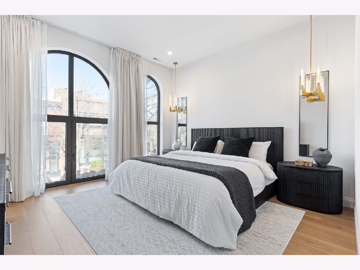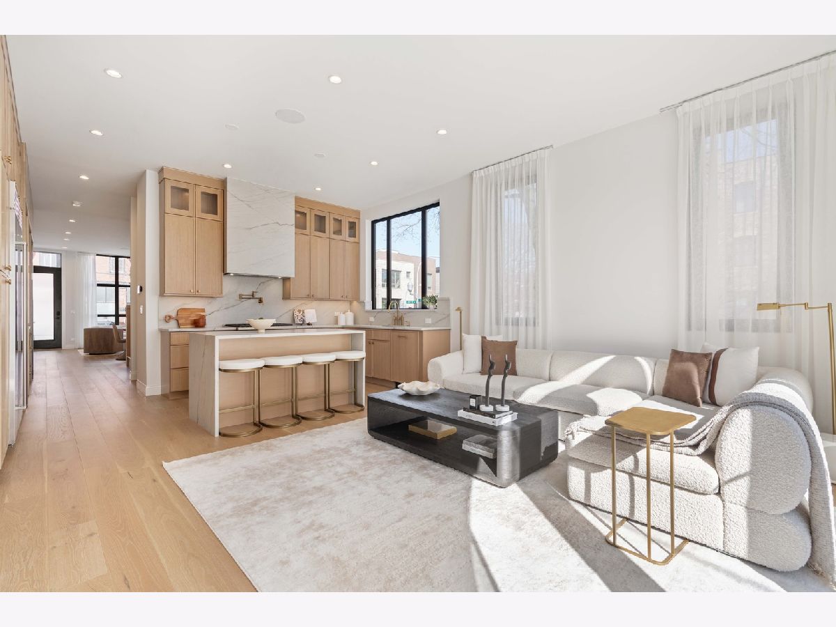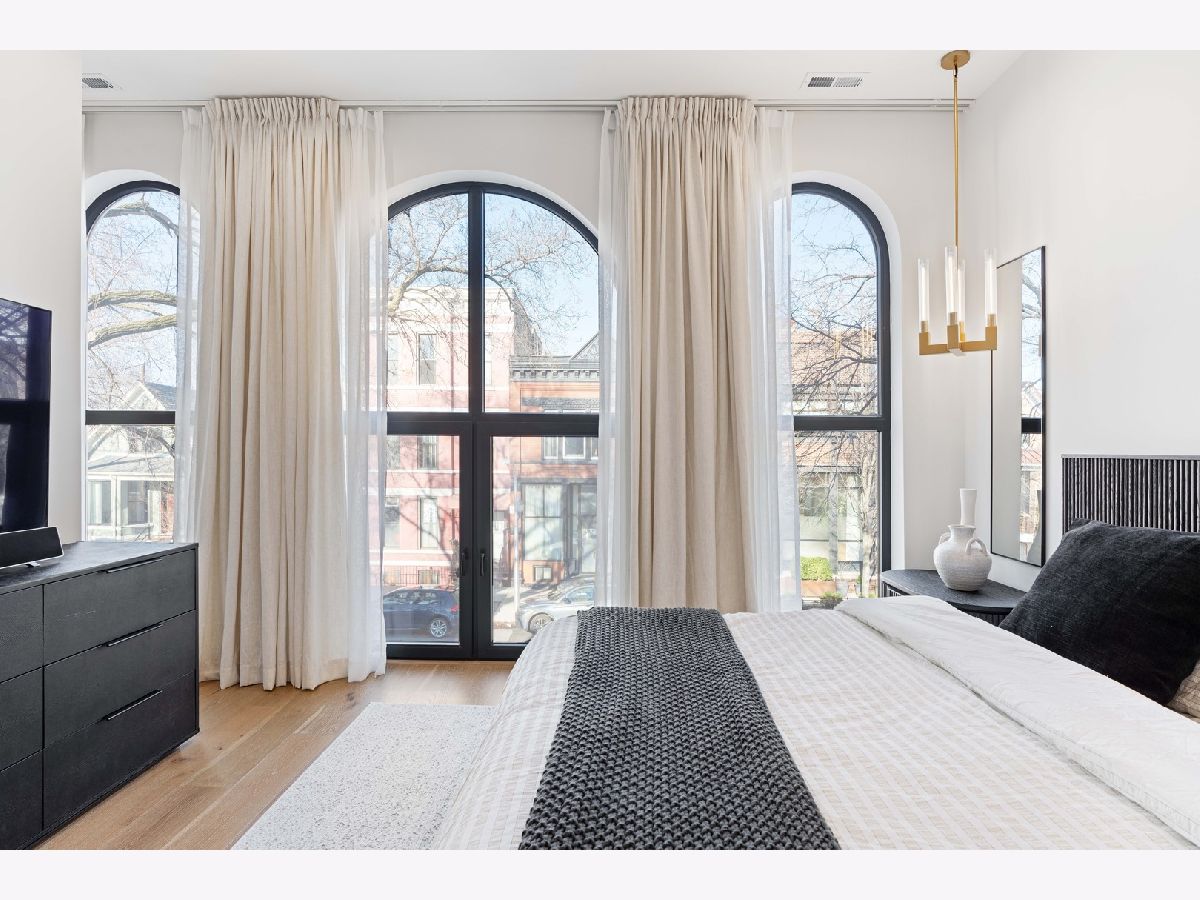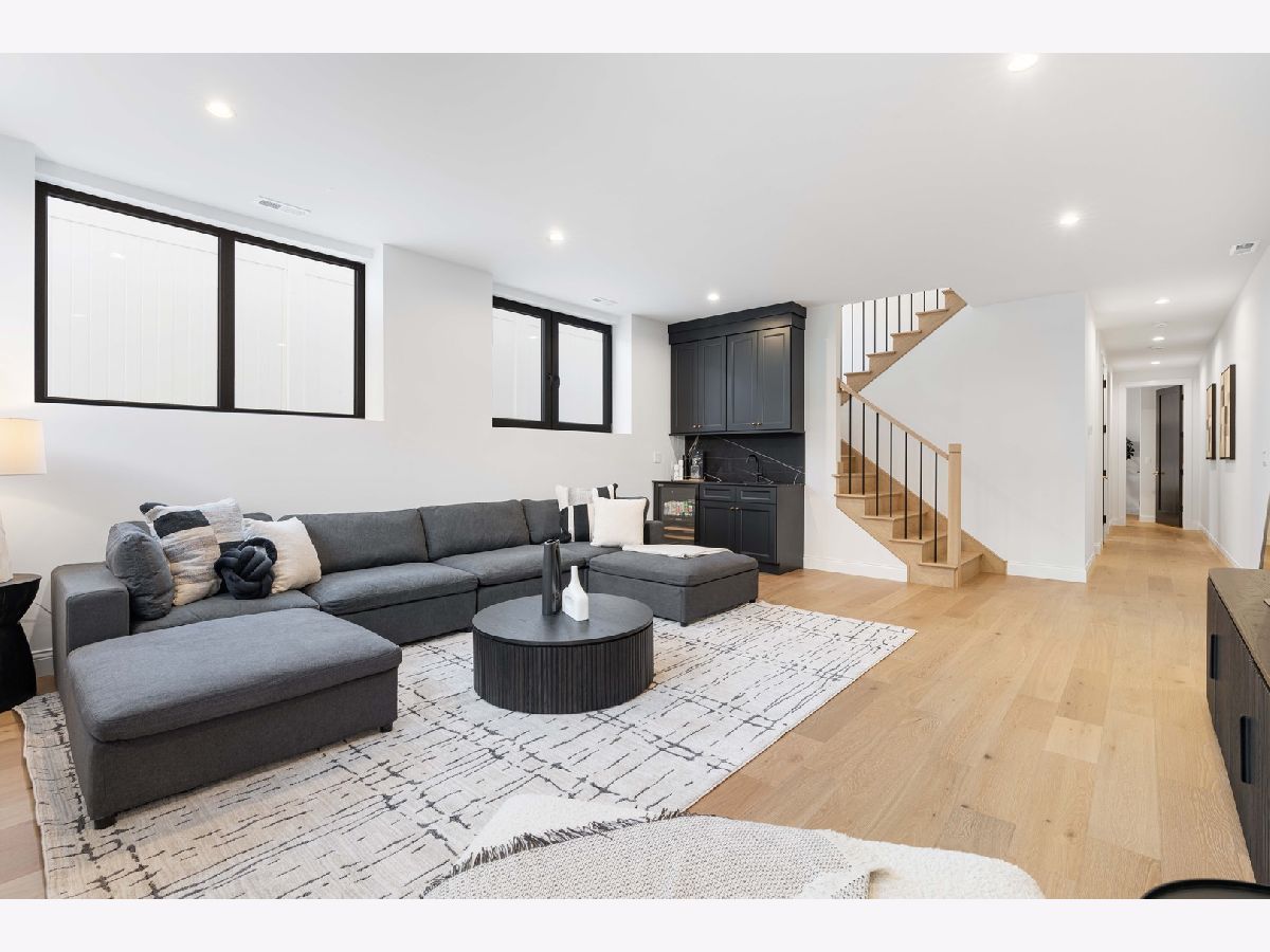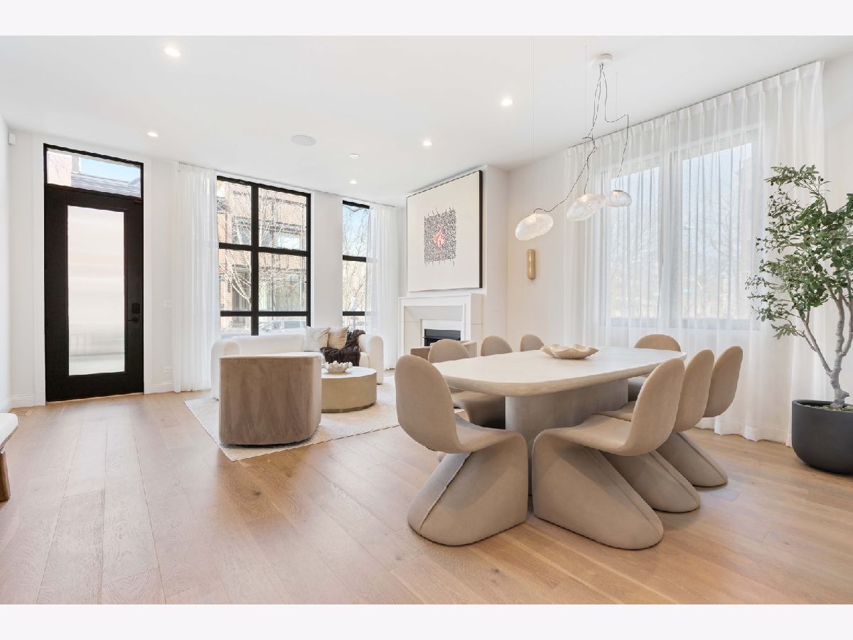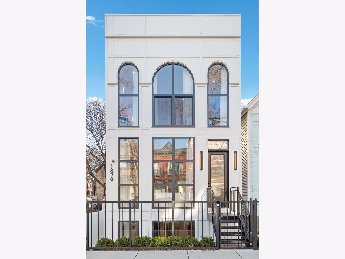 EXCEPTIONAL NEW CONSTRUCTION single-family home offering a seamless blend of modern luxury and timeless architectural detail, ideally situated on a tree-lined street in the heart of Bucktown, just steps from the 606 Trail. This 5-bedroom, 3.1-bath residence features a 2-car garage and four distinct outdoor living spaces, complemented by a thoughtfully designed layout, curated custom finishes, and wide-plank oak hardwood flooring throughout. Soaring 10-foot ceilings, multiple rooftop decks, a private outdoor retreat, and a garage deck enhance the overall living experience. A Sonos multi-zone sound system extends across the main level, lower level, patio, garage deck, and rooftop decks. The main level opens to a beautifully proportioned living and dining area, designed with both functionality and refined style in mind. A French-inspired limestone fireplace anchors the space, while a custom-built bar introduces a sophisticated focal point for entertaining. The kitchen is meticulously appointed with professional-grade Sub-Zero and Wolf appliances, including a 6-burner Wolf range with pot filler. Custom white oak cabinetry is paired with Aria leathered quartzite countertops and a full-height backsplash, complemented by a custom-designed hood and a waterfall island with integrated seating and abundant storage. The adjoining family room is a defining feature of the home, framed by a floor-to-ceiling arched French door system that creates a seamless transition between indoor and outdoor living. This architectural centerpiece opens directly onto a private deck, naturally extending the living space for both everyday use and elevated entertaining. A second cast stone fireplace adds warmth and balance, while a designer-appointed powder room completes the level. The primary suite is thoughtfully designed as a private retreat, featuring oversized arched windows, a fully built-out walk-through closet, and a spa-caliber bath with dual quartz vanities, Waterworks fixtures, radiant heated floors, and an expansive double steam shower. Two additional bedrooms, a full bath with heated floors, and a well-positioned laundry area complete the upper level. The lower level features radiant heated floors throughout and offers a spacious recreation and media room with a wet bar, along with two additional bedrooms and a full bath, well-suited for guests, workspace, fitness, or flexible living arrangements. Outdoor living is exceptionally well executed, highlighted by a private patio that connects effortlessly to the garage deck, complete with a custom pergola designed for comfortable, functional entertaining. Expansive rooftop decks further extend the home's living space and offer the opportunity to create a highly personalized outdoor setting. All of this is positioned within one of Bucktown's most desirable locations, just moments from Damen and Armitage, the 606 Trail, Blue Line access, Mariano's, premier dining, boutique fitness, parks, nightlife, and convenient expressway access.