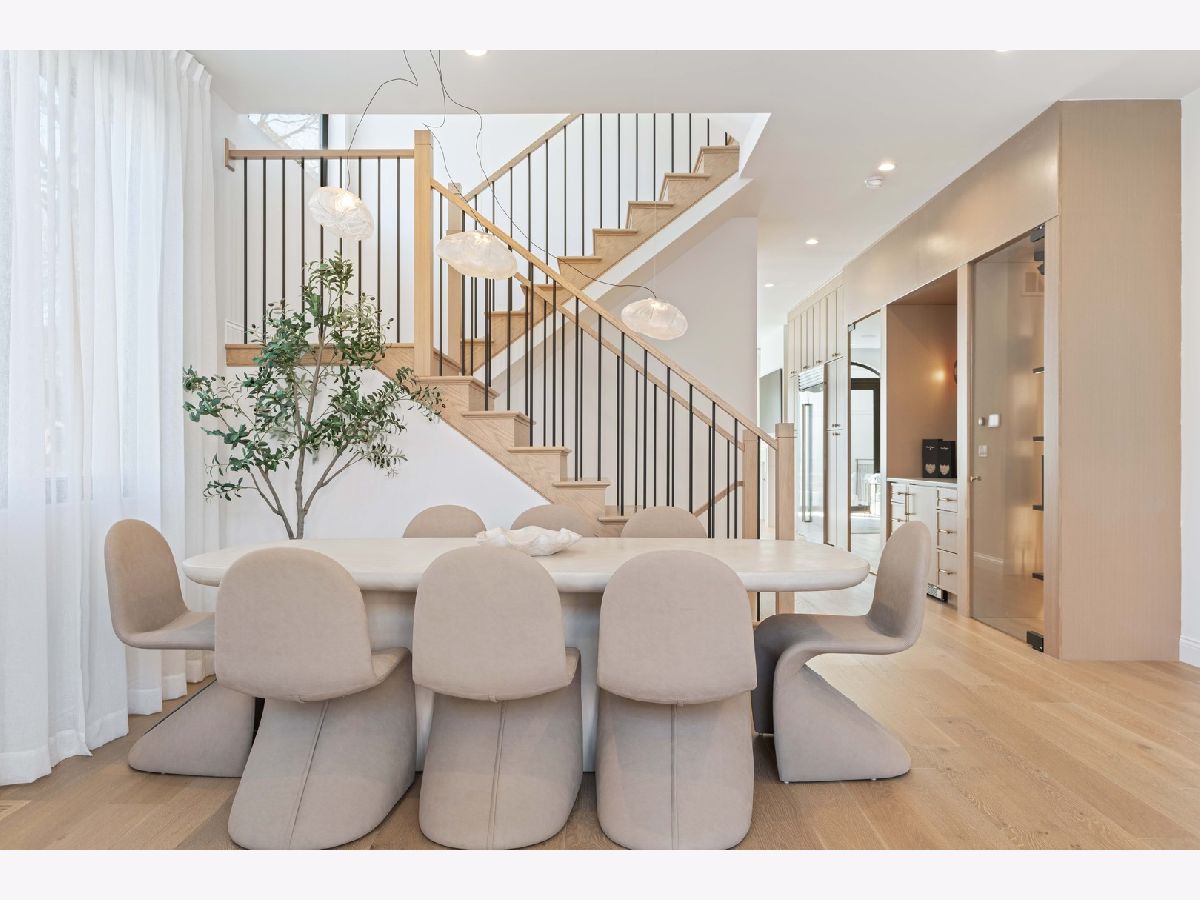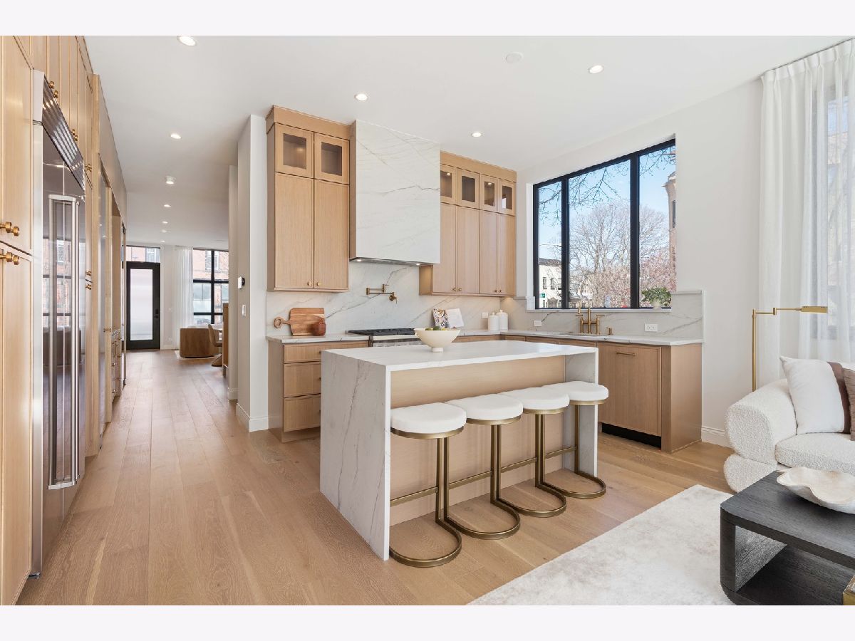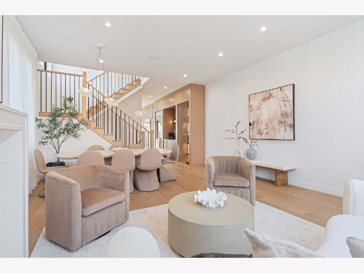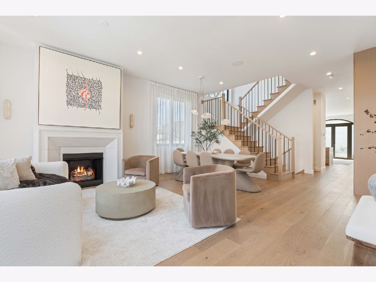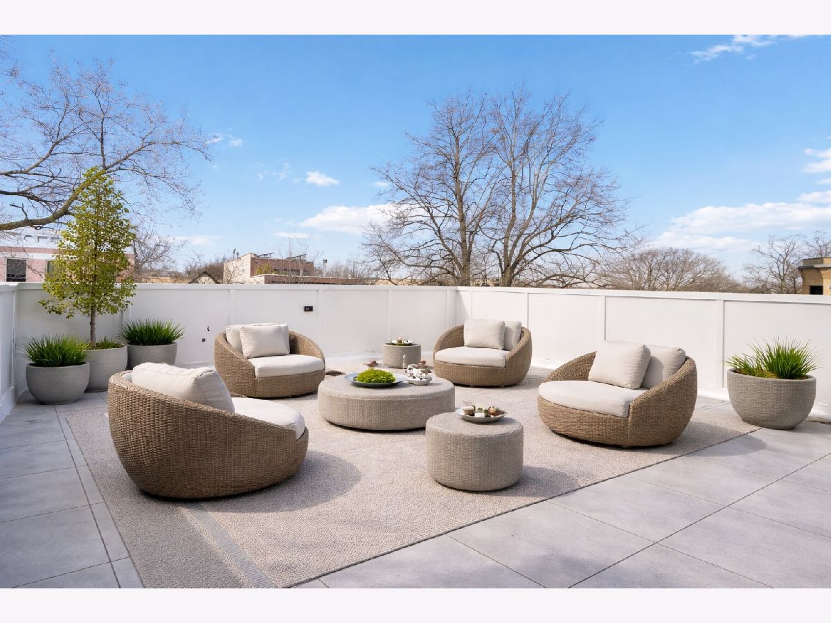 EXCEPTIONAL NEW CONSTRUCTION single-family home offering a seamless blend of modern luxury and timeless architectural detail, ideally situated on a tree-lined street in the heart of Bucktown, just steps from the 606 Trail. This 5-bedroom, 3.1-bath residence features a 2-car garage and four distinct outdoor living spaces, complemented by a thoughtfully designed layout, curated custom finishes, and wide-plank oak hardwood flooring throughout. Soaring 10-foot ceilings, multiple rooftop decks, a private outdoor retreat, and a garage deck enhance the overall living experience. A Sonos multi-zone sound system extends across the main level, lower level, patio, garage deck, and rooftop decks. The main level opens to a beautifully proportioned living and dining area, designed with both functionality and refined style in mind. A French-inspired limestone fireplace anchors the space, while a custom-built bar introduces a sophisticated focal point for entertaining. The kitchen is meticulously appointed with professional-grade Sub-Zero and Wolf appliances, including a 6-burner Wolf range with pot filler. Custom white oak cabinetry is paired with Aria leathered quartzite countertops and a full-height backsplash, complemented by a custom-designed hood and a waterfall island with integrated seating and abundant storage. The adjoining family room is a defining feature of the home, framed by a floor-to-ceiling arched French door system that creates a seamless transition between indoor and outdoor living. This architectural centerpiece opens directly onto a private deck, naturally extending the living space for both everyday use and elevated entertaining. A second cast stone fireplace adds warmth and balance, while a designer-appointed powder room completes the level. The primary suite is thoughtfully designed as a private retreat, featuring oversized arched windows, a fully built-out walk-through closet, and a spa-caliber bath with dual quartz vanities, Waterworks fixtures, radiant heated floors, and an expansive double steam shower. Two additional bedrooms, a full bath with heated floors, and a well-positioned laundry area complete the upper level. The lower level features radiant heated floors throughout and offers a spacious recreation and media room with a wet bar, along with two additional bedrooms and a full bath, well-suited for guests, workspace, fitness, or flexible living arrangements. Outdoor living is exceptionally well executed, highlighted by a private patio that connects effortlessly to the garage deck, complete with a custom pergola designed for comfortable, functional entertaining. Expansive rooftop decks further extend the home's living space and offer the opportunity to create a highly personalized outdoor setting. All of this is positioned within one of Bucktown's most desirable locations, just moments from Damen and Armitage, the 606 Trail, Blue Line access, Mariano's, premier dining, boutique fitness, parks, nightlife, and convenient expressway access.