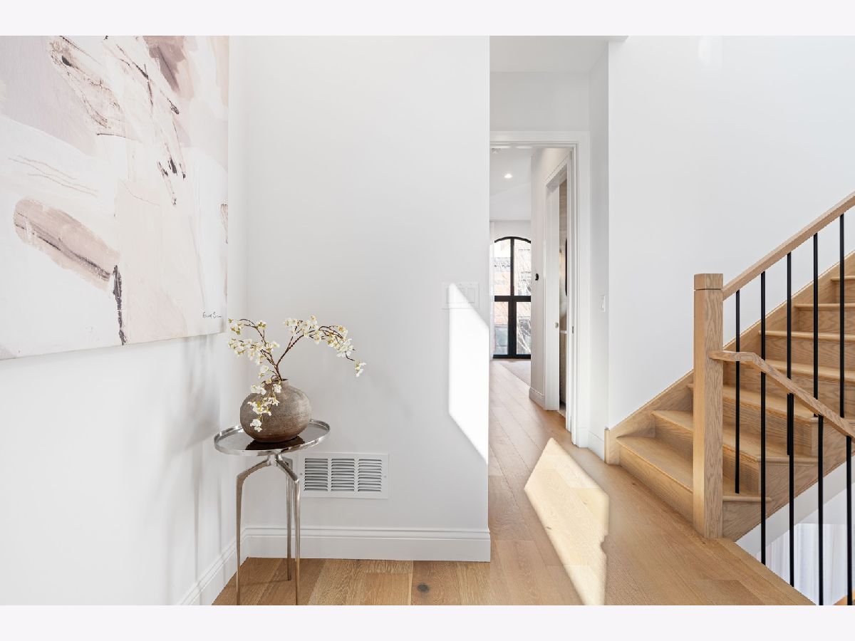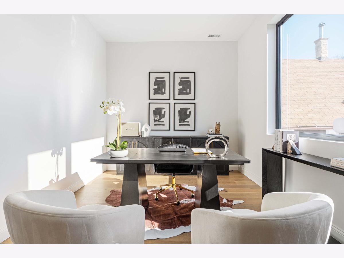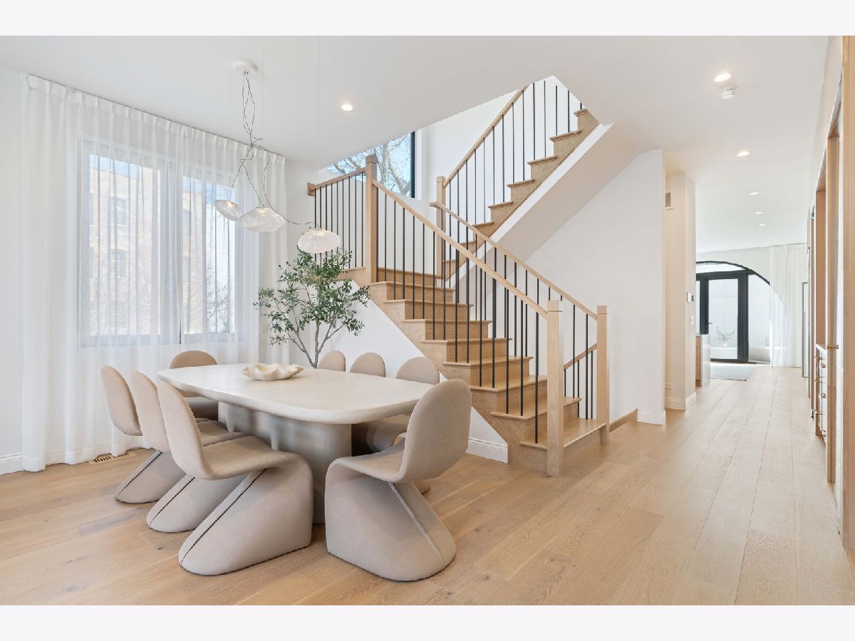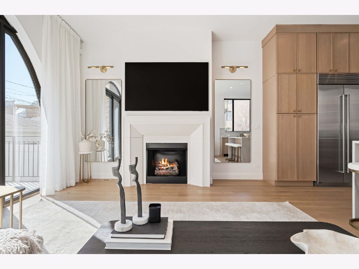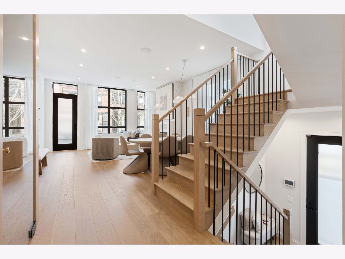 EXCEPTIONAL NEW CONSTRUCTION single-family home offering a seamless blend of modern luxury and timeless architectural detail, ideally situated on a tree-lined street in the heart of Bucktown, just steps from the 606 Trail. This 5-bedroom, 3.1-bath residence features a 2-car garage and four distinct outdoor living spaces, complemented by a thoughtfully designed layout, curated custom finishes, and wide-plank oak hardwood flooring throughout. Soaring 10-foot ceilings, multiple rooftop decks, a private outdoor retreat, and a garage deck enhance the overall living experience. A Sonos multi-zone sound system extends across the main level, lower level, patio, garage deck, and rooftop decks. The main level opens to a beautifully proportioned living and dining area, designed with both functionality and refined style in mind. A French-inspired limestone fireplace anchors the space, while a custom-built bar introduces a sophisticated focal point for entertaining. The kitchen is meticulously appointed with professional-grade Sub-Zero and Wolf appliances, including a 6-burner Wolf range with pot filler. Custom white oak cabinetry is paired with Aria leathered quartzite countertops and a full-height backsplash, complemented by a custom-designed hood and a waterfall island with integrated seating and abundant storage. The adjoining family room is a defining feature of the home, framed by a floor-to-ceiling arched French door system that creates a seamless transition between indoor and outdoor living. This architectural centerpiece opens directly onto a private deck, naturally extending the living space for both everyday use and elevated entertaining. A second cast stone fireplace adds warmth and balance, while a designer-appointed powder room completes the level. The primary suite is thoughtfully designed as a private retreat, featuring oversized arched windows, a fully built-out walk-through closet, and a spa-caliber bath with dual quartz vanities, Waterworks fixtures, radiant heated floors, and an expansive double steam shower. Two additional bedrooms, a full bath with heated floors, and a well-positioned laundry area complete the upper level. The lower level features radiant heated floors throughout and offers a spacious recreation and media room with a wet bar, along with two additional bedrooms and a full bath, well-suited for guests, workspace, fitness, or flexible living arrangements. Outdoor living is exceptionally well executed, highlighted by a private patio that connects effortlessly to the garage deck, complete with a custom pergola designed for comfortable, functional entertaining. Expansive rooftop decks further extend the home's living space and offer the opportunity to create a highly personalized outdoor setting. All of this is positioned within one of Bucktown's most desirable locations, just moments from Damen and Armitage, the 606 Trail, Blue Line access, Mariano's, premier dining, boutique fitness, parks, nightlife, and convenient expressway access.