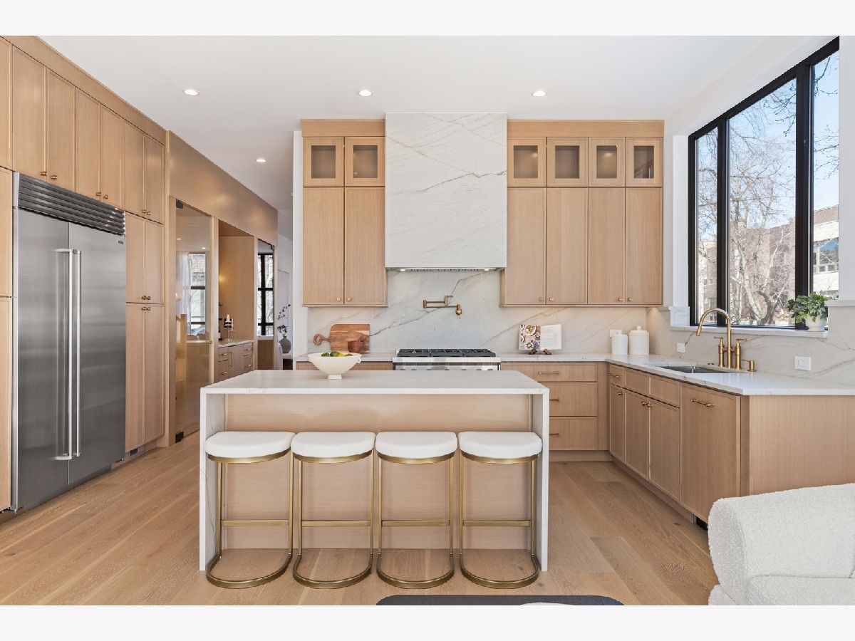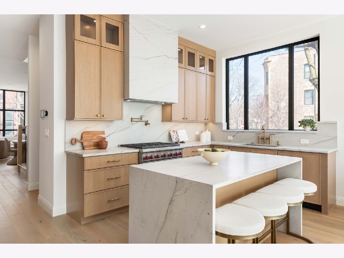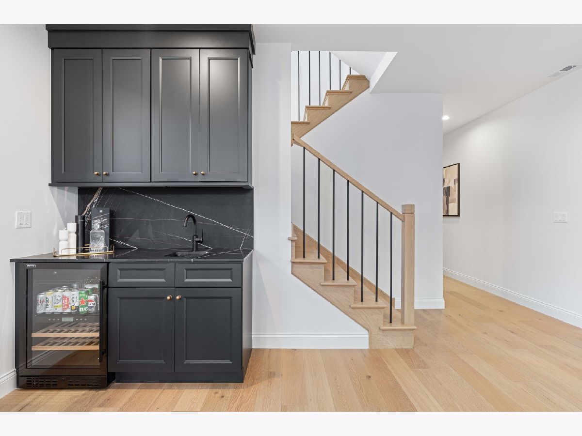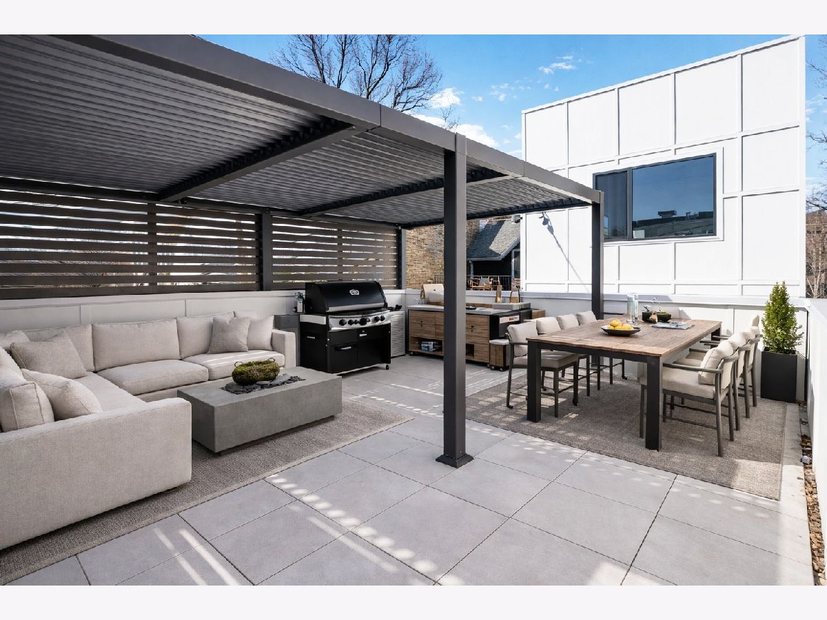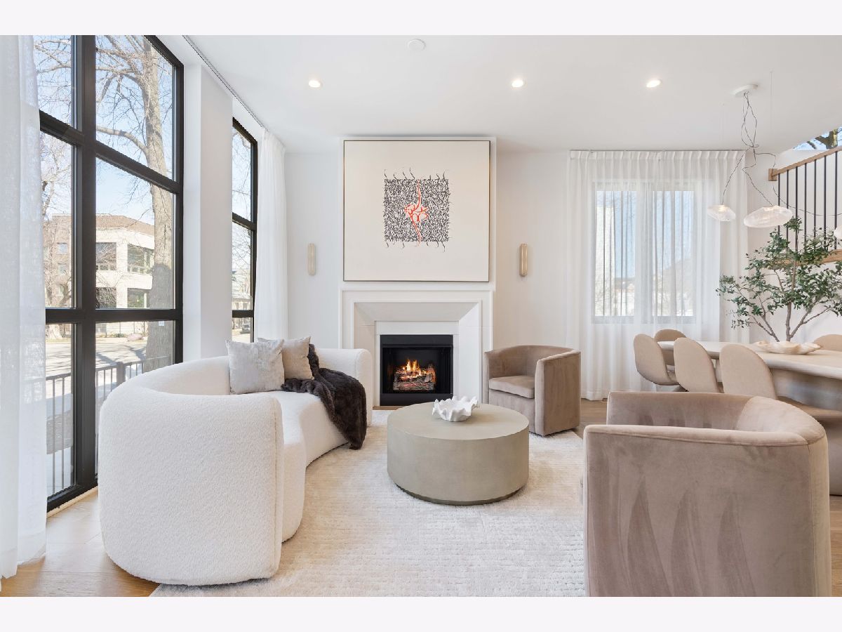 EXCEPTIONAL NEW CONSTRUCTION single-family home offering a seamless blend of modern luxury and timeless architectural detail, ideally situated on a tree-lined street in the heart of Bucktown, just steps from the 606 Trail. This 5-bedroom, 3.1-bath residence features a 2-car garage and four distinct outdoor living spaces, complemented by a thoughtfully designed layout, curated custom finishes, and wide-plank oak hardwood flooring throughout. Soaring 10-foot ceilings, multiple rooftop decks, a private outdoor retreat, and a garage deck enhance the overall living experience. A Sonos multi-zone sound system extends across the main level, lower level, patio, garage deck, and rooftop decks. The main level opens to a beautifully proportioned living and dining area, designed with both functionality and refined style in mind. A French-inspired limestone fireplace anchors the space, while a custom-built bar introduces a sophisticated focal point for entertaining. The kitchen is meticulously appointed with professional-grade Sub-Zero and Wolf appliances, including a 6-burner Wolf range with pot filler. Custom white oak cabinetry is paired with Aria leathered quartzite countertops and a full-height backsplash, complemented by a custom-designed hood and a waterfall island with integrated seating and abundant storage. The adjoining family room is a defining feature of the home, framed by a floor-to-ceiling arched French door system that creates a seamless transition between indoor and outdoor living. This architectural centerpiece opens directly onto a private deck, naturally extending the living space for both everyday use and elevated entertaining. A second cast stone fireplace adds warmth and balance, while a designer-appointed powder room completes the level. The primary suite is thoughtfully designed as a private retreat, featuring oversized arched windows, a fully built-out walk-through closet, and a spa-caliber bath with dual quartz vanities, Waterworks fixtures, radiant heated floors, and an expansive double steam shower. Two additional bedrooms, a full bath with heated floors, and a well-positioned laundry area complete the upper level. The lower level features radiant heated floors throughout and offers a spacious recreation and media room with a wet bar, along with two additional bedrooms and a full bath, well-suited for guests, workspace, fitness, or flexible living arrangements. Outdoor living is exceptionally well executed, highlighted by a private patio that connects effortlessly to the garage deck, complete with a custom pergola designed for comfortable, functional entertaining. Expansive rooftop decks further extend the home's living space and offer the opportunity to create a highly personalized outdoor setting. All of this is positioned within one of Bucktown's most desirable locations, just moments from Damen and Armitage, the 606 Trail, Blue Line access, Mariano's, premier dining, boutique fitness, parks, nightlife, and convenient expressway access.