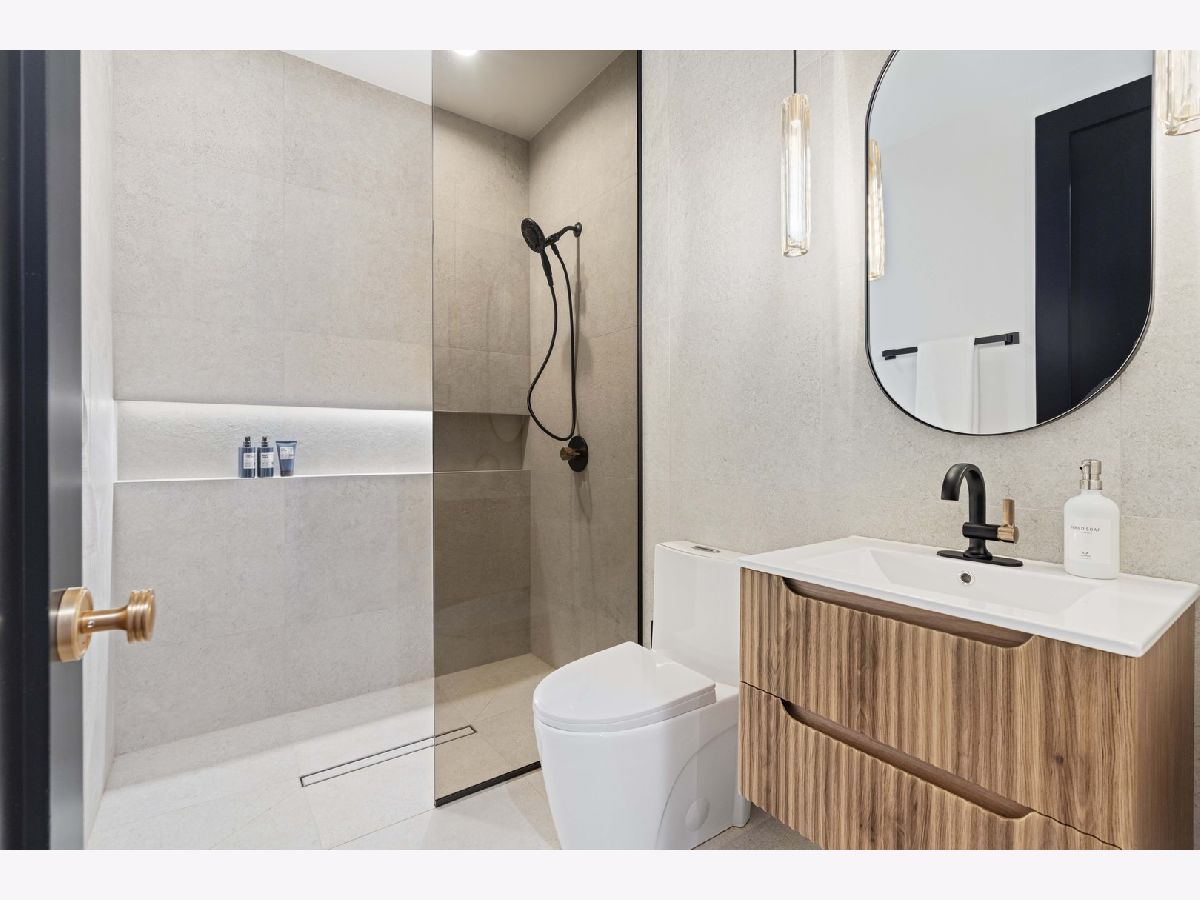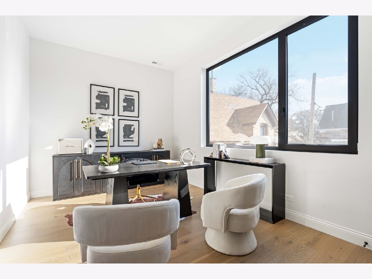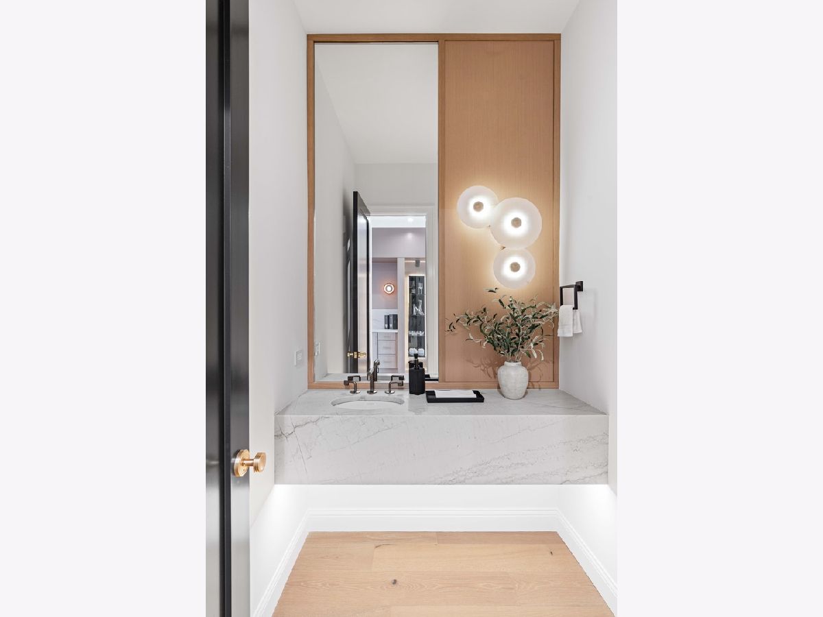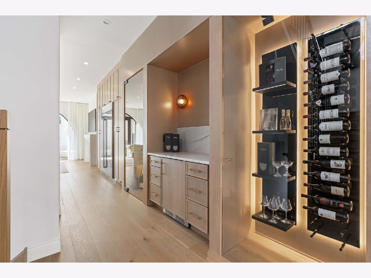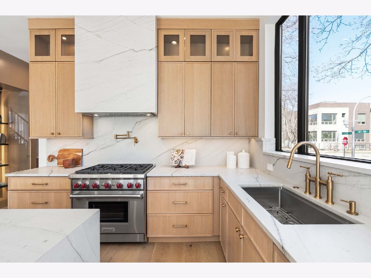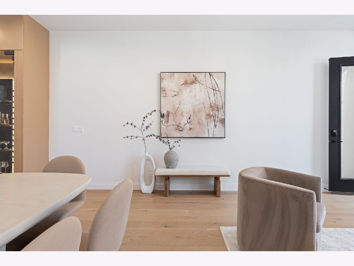 EXCEPTIONAL NEW CONSTRUCTION single-family home offering a seamless blend of modern luxury and timeless architectural detail, ideally situated on a tree-lined street in the heart of Bucktown, just steps from the 606 Trail. This 5-bedroom, 3.1-bath residence features a 2-car garage and four distinct outdoor living spaces, complemented by a thoughtfully designed layout, curated custom finishes, and wide-plank oak hardwood flooring throughout. Soaring 10-foot ceilings, multiple rooftop decks, a private outdoor retreat, and a garage deck enhance the overall living experience. A Sonos multi-zone sound system extends across the main level, lower level, patio, garage deck, and rooftop decks. The main level opens to a beautifully proportioned living and dining area, designed with both functionality and refined style in mind. A French-inspired limestone fireplace anchors the space, while a custom-built bar introduces a sophisticated focal point for entertaining. The kitchen is meticulously appointed with professional-grade Sub-Zero and Wolf appliances, including a 6-burner Wolf range with pot filler. Custom white oak cabinetry is paired with Aria leathered quartzite countertops and a full-height backsplash, complemented by a custom-designed hood and a waterfall island with integrated seating and abundant storage. The adjoining family room is a defining feature of the home, framed by a floor-to-ceiling arched French door system that creates a seamless transition between indoor and outdoor living. This architectural centerpiece opens directly onto a private deck, naturally extending the living space for both everyday use and elevated entertaining. A second cast stone fireplace adds warmth and balance, while a designer-appointed powder room completes the level. The primary suite is thoughtfully designed as a private retreat, featuring oversized arched windows, a fully built-out walk-through closet, and a spa-caliber bath with dual quartz vanities, Waterworks fixtures, radiant heated floors, and an expansive double steam shower. Two additional bedrooms, a full bath with heated floors, and a well-positioned laundry area complete the upper level. The lower level features radiant heated floors throughout and offers a spacious recreation and media room with a wet bar, along with two additional bedrooms and a full bath, well-suited for guests, workspace, fitness, or flexible living arrangements. Outdoor living is exceptionally well executed, highlighted by a private patio that connects effortlessly to the garage deck, complete with a custom pergola designed for comfortable, functional entertaining. Expansive rooftop decks further extend the home's living space and offer the opportunity to create a highly personalized outdoor setting. All of this is positioned within one of Bucktown's most desirable locations, just moments from Damen and Armitage, the 606 Trail, Blue Line access, Mariano's, premier dining, boutique fitness, parks, nightlife, and convenient expressway access.
