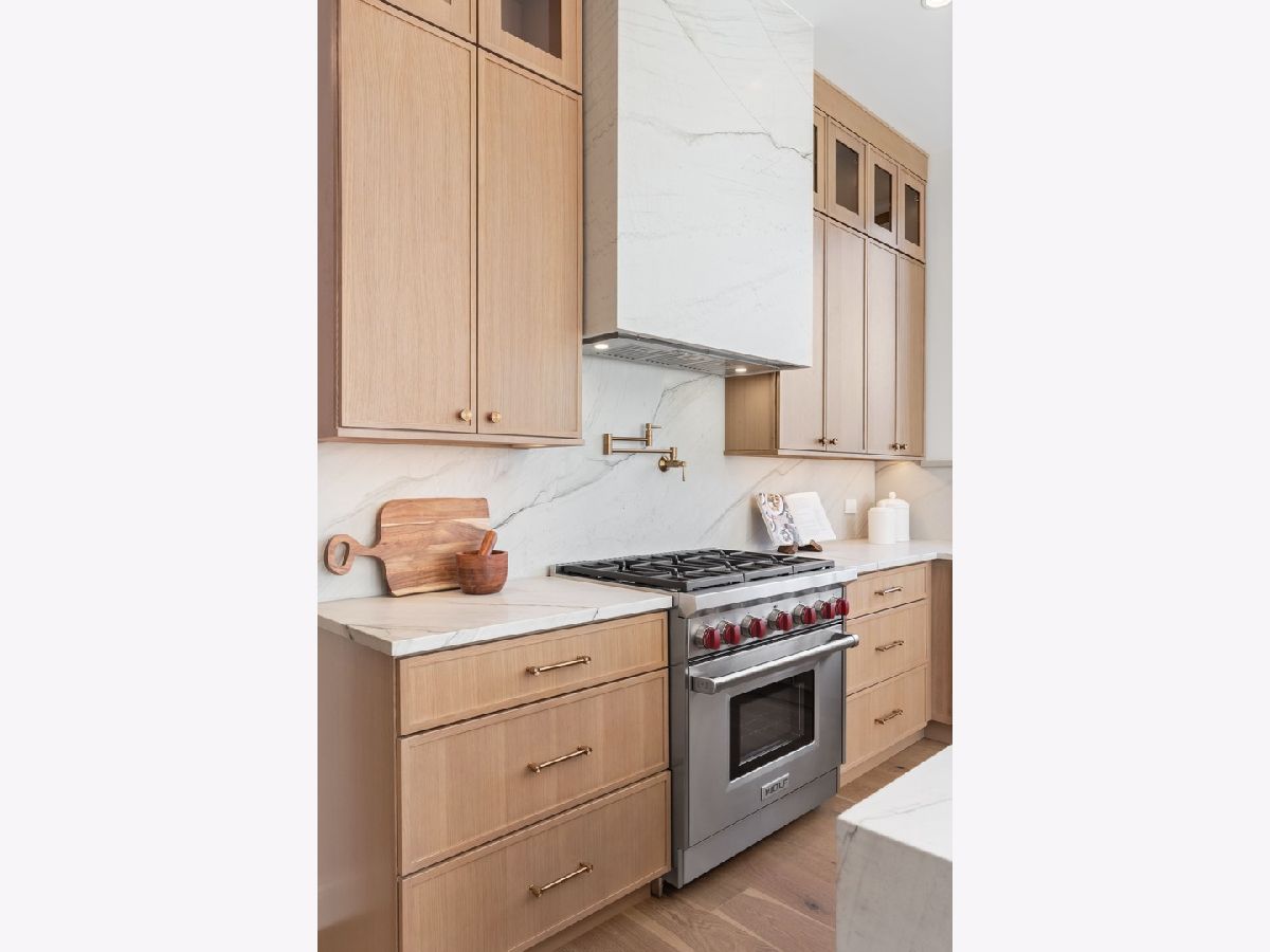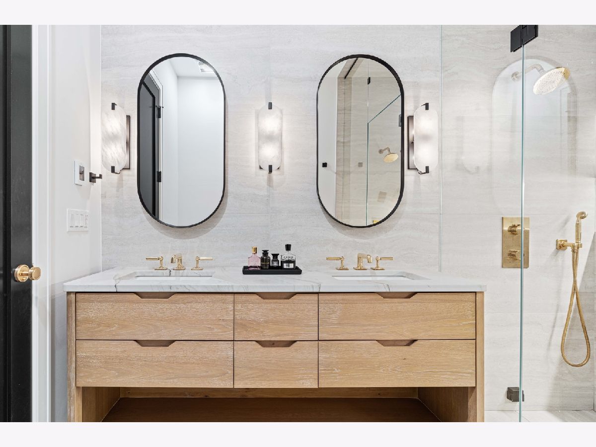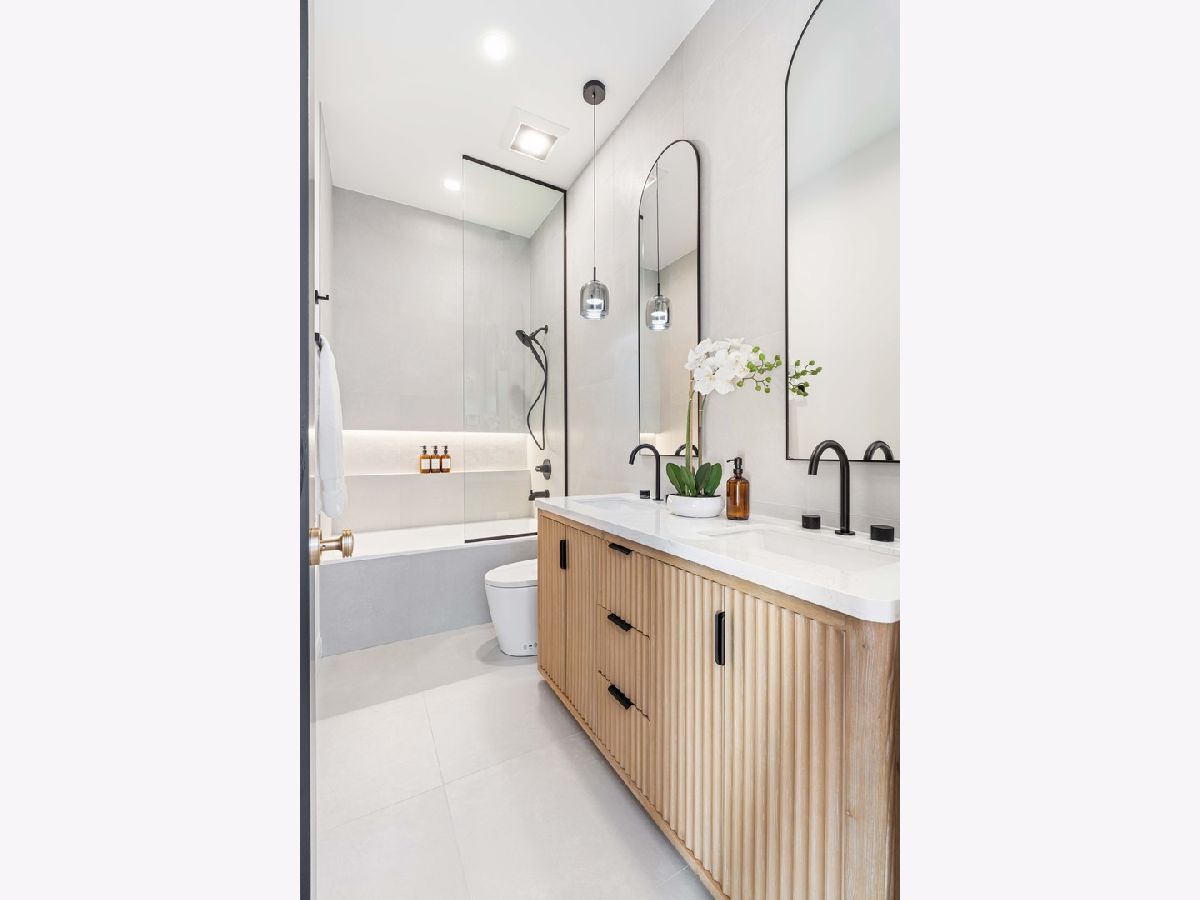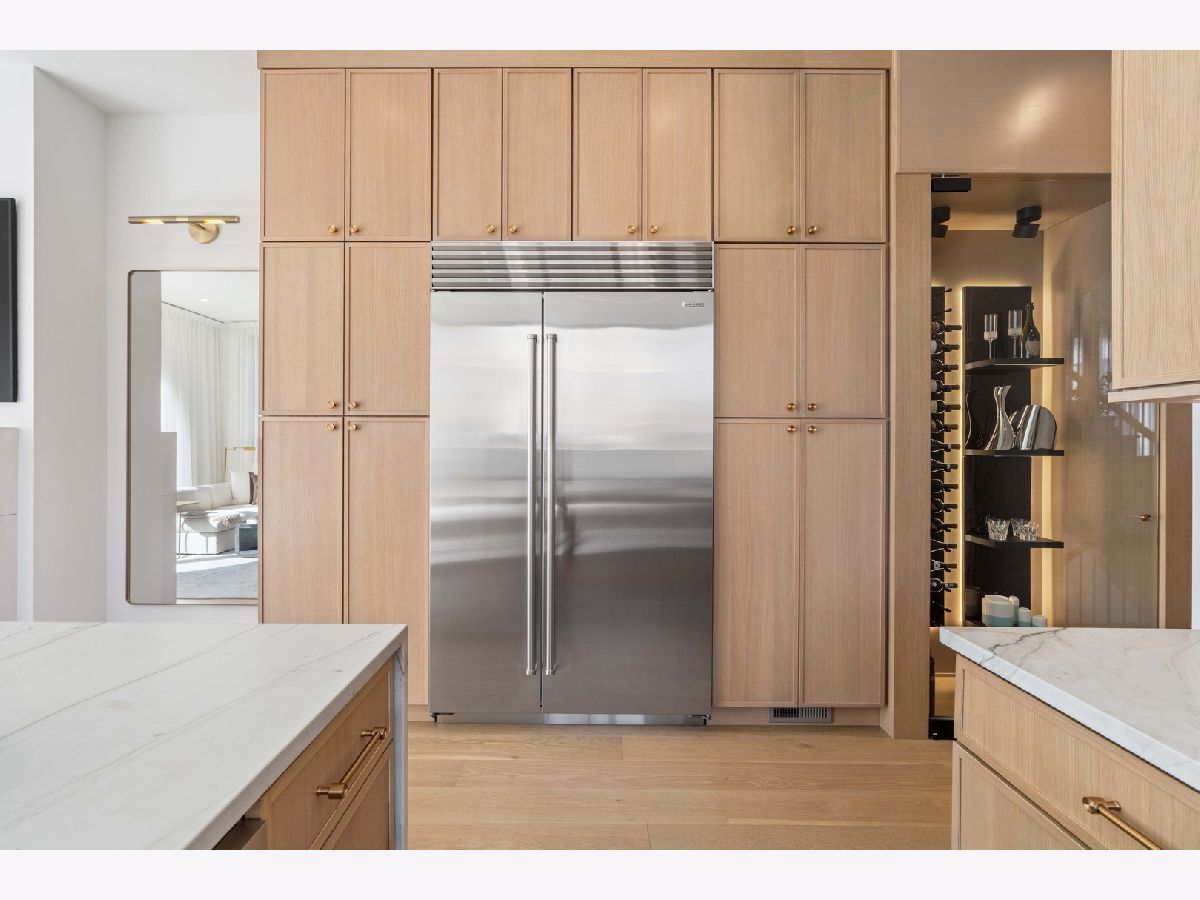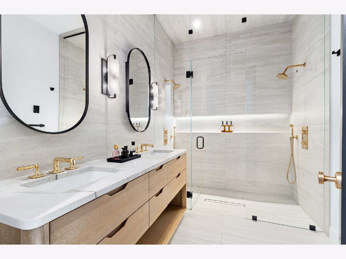 EXCEPTIONAL NEW CONSTRUCTION single-family home offering a seamless blend of modern luxury and timeless architectural detail, ideally situated on a tree-lined street in the heart of Bucktown, just steps from the 606 Trail. This 5-bedroom, 3.1-bath residence features a 2-car garage and four distinct outdoor living spaces, complemented by a thoughtfully designed layout, curated custom finishes, and wide-plank oak hardwood flooring throughout. Soaring 10-foot ceilings, multiple rooftop decks, a private outdoor retreat, and a garage deck enhance the overall living experience. A Sonos multi-zone sound system extends across the main level, lower level, patio, garage deck, and rooftop decks. The main level opens to a beautifully proportioned living and dining area, designed with both functionality and refined style in mind. A French-inspired limestone fireplace anchors the space, while a custom-built bar introduces a sophisticated focal point for entertaining. The kitchen is meticulously appointed with professional-grade Sub-Zero and Wolf appliances, including a 6-burner Wolf range with pot filler. Custom white oak cabinetry is paired with Aria leathered quartzite countertops and a full-height backsplash, complemented by a custom-designed hood and a waterfall island with integrated seating and abundant storage. The adjoining family room is a defining feature of the home, framed by a floor-to-ceiling arched French door system that creates a seamless transition between indoor and outdoor living. This architectural centerpiece opens directly onto a private deck, naturally extending the living space for both everyday use and elevated entertaining. A second cast stone fireplace adds warmth and balance, while a designer-appointed powder room completes the level. The primary suite is thoughtfully designed as a private retreat, featuring oversized arched windows, a fully built-out walk-through closet, and a spa-caliber bath with dual quartz vanities, Waterworks fixtures, radiant heated floors, and an expansive double steam shower. Two additional bedrooms, a full bath with heated floors, and a well-positioned laundry area complete the upper level. The lower level features radiant heated floors throughout and offers a spacious recreation and media room with a wet bar, along with two additional bedrooms and a full bath, well-suited for guests, workspace, fitness, or flexible living arrangements. Outdoor living is exceptionally well executed, highlighted by a private patio that connects effortlessly to the garage deck, complete with a custom pergola designed for comfortable, functional entertaining. Expansive rooftop decks further extend the home's living space and offer the opportunity to create a highly personalized outdoor setting. All of this is positioned within one of Bucktown's most desirable locations, just moments from Damen and Armitage, the 606 Trail, Blue Line access, Mariano's, premier dining, boutique fitness, parks, nightlife, and convenient expressway access.