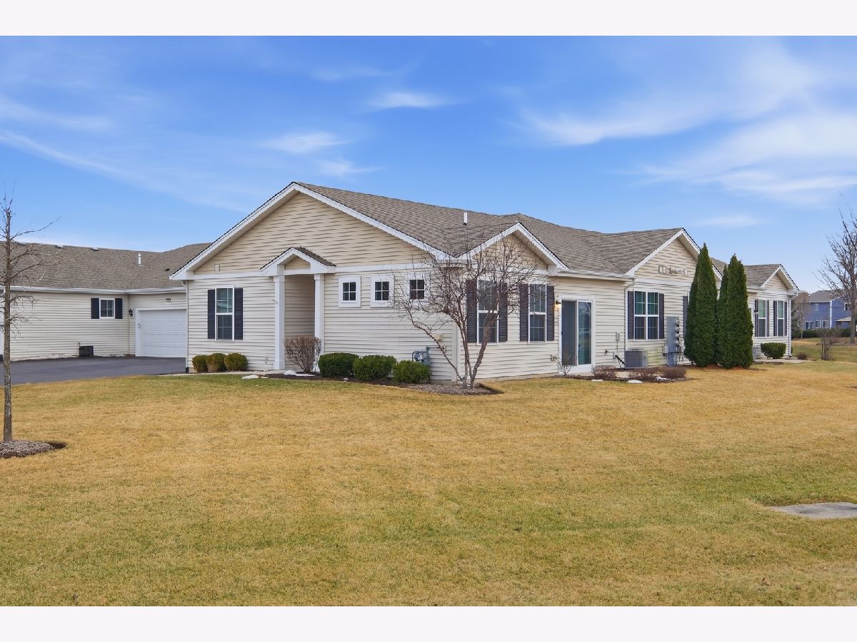 PREMIUM LAKE LOT + Meticulously maintained its like new construction. Come view this Chandler model home that is READY today!! Move into the perfect amount of space: 2 bedrooms, 2 full baths, and a 2 car garage! Gorgeous dark wood laminate flooring leads into the open concept kitchen, living, and dining room! The great eat-in kitchen has upgraded all stainless steel appliances, loads of counter space, and premium cabinetry! Private master suite with great storage - walk-in and linen closets. Master bath with double vanity and beautiful lighting! This home sits in a priceless private location as an end unit with views of the lake! Come experience the incredible lifestyle of this active and thriving adult (55+) community - low maintenance, professional landscaping, gorgeous nature & lakes, and common areas including indoor/outdoor swimming pools, fitness center, clubhouse, tennis courts, bocce and more! Easy access to I90, O'Hare, Randall Rd, and right off Route 72!