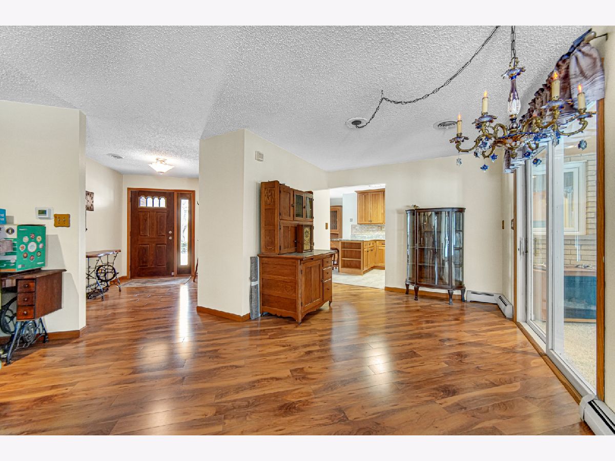 Rarely Available Unincorporated All-Brick Ranch on Nearly 1 Acre in Mokena! Meticulously maintained and move-in ready, this solid all-brick ranch home sits on nearly an acre of land in desirable unincorporated Mokena. Offering 3 bedrooms and 3 full bathrooms, this spacious home features a highly sought-after three-seasons room-perfect for relaxing and enjoying views of the expansive backyard year-round. The completely gut-remodeled kitchen showcases beautiful hickory oak cabinetry and thoughtful finishes, creating a warm and inviting space for cooking and entertaining. The cozy finished basement provides exceptional additional living space, complete with a wood-burning stove, family room, full bathroom, and a flexible office or potential fourth bedroom. A French door walkout offers easy access to the backyard.Additional highlights include a 2.5-car attached garage, freshly asphalted driveway, and abundant storage space with room for a workshop. Outdoors, enjoy a brick patio with privacy fence, hot tub, and two storage sheds-ideal for relaxing or entertaining.Major updates include a 5-zone boiler (2023), roof (2021), and hot water heater (2019). Conveniently located just minutes from I-355, the Metra, and Silver Cross Hospital, and served by award-winning New Lenox elementary schools, this exceptional property truly has it all!