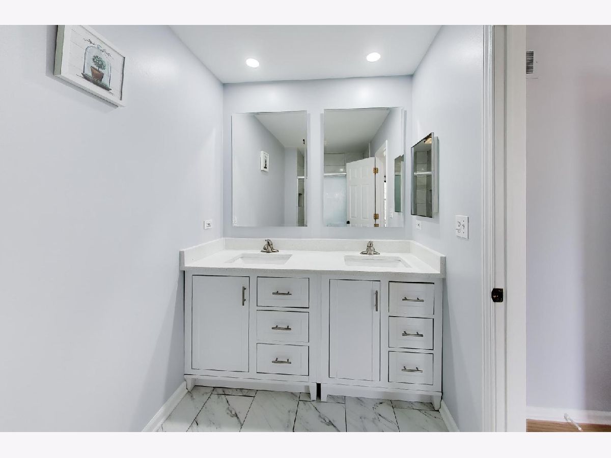 Beautifully updated 3-bedroom, 2.1-bath home tucked away on a quiet cul-de-sac in desirable Old Farm Village! This move-in ready home has been thoughtfully updated from top to bottom with major improvements already done for you. Highlights include a new roof (2025), hardwood flooring throughout (2018), windows (2017), HVAC (2017), remodeled kitchen (2021), newly finished sub-basement, new washer and dryer (2024), and fully renovated bathrooms including the primary bath (2022), hall bath (2024), and powder room. The updated kitchen features new cabinetry, quartz countertops, stainless steel appliances, and a bright eat-in area. The inviting family room offers a gas-start fireplace and new sliding doors leading to a beautifully landscaped, fully fenced backyard, perfect for relaxing or entertaining. Downstairs, the finished sub-basement adds valuable living space with new flooring and windows, ideal for a recreation room, home office, or gym. Additional updates include a newly redone driveway (2021). Located in a prime cul-de-sac setting and within the highly sought-after Stevenson High School district, this home offers the perfect combination of updates, location, and value. Truly a must-see!
