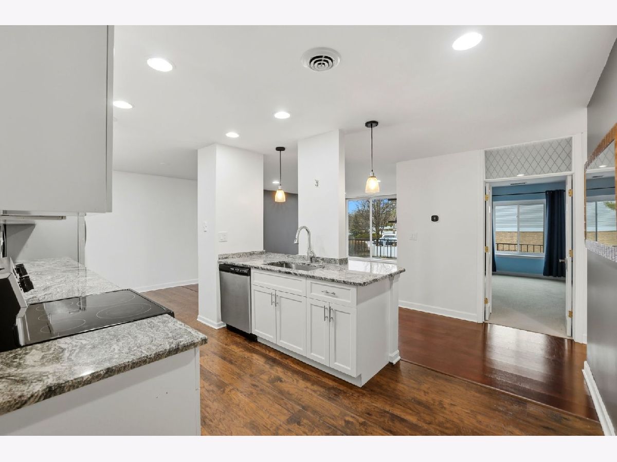 Motivated Seller! Welcome to this beautifully updated and spacious 2-bedroom, 2-full-bath condo in Brookwood on the Green, offering modern elegance and everyday comfort. Featuring an open floor plan, white kitchen cabinets, granite countertops, and stainless steel appliances. Recent updates include new wood laminate flooring, updated lighting, remodeled guest bath (2024), HVAC (2022), water heater (2022), and windows (2022). The primary suite offers a private bath and two large closets. Enjoy a huge private balcony with access from both the living room and bedroom, spanning nearly the entire length of the building. Includes heated garage parking, storage, and same-floor laundry. Amenities include a pool, sun deck, clubhouse, and basic cable. Conveniently located near Metra, shopping, dining, golf, and Saint Creek Forest Preserve. Move-in ready-schedule your showing today!