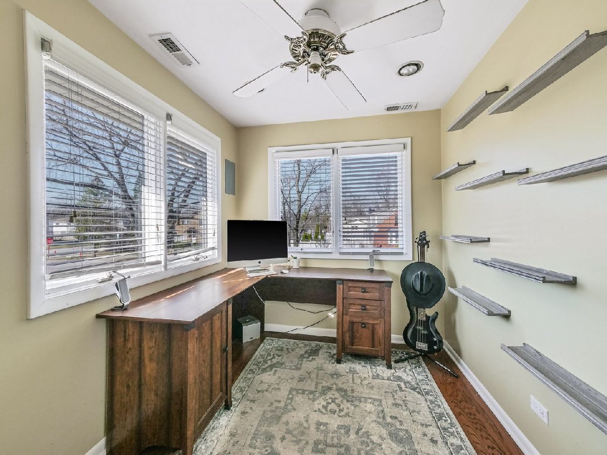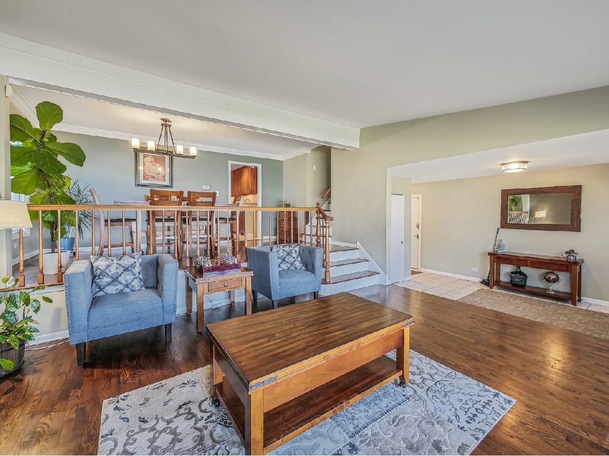 First showings by appointment only Saturday 3/14/26 10:00-4:00PM. Offers submitted no later than 11:00 AM Sunday. Updated and move-in ready in a prime location with top-rated schools! This beautifully maintained 4-bedroom, 3-bath home features a freshly painted interior and power-washed exterior. The spacious primary suite offers a walk-in closet with custom organizers, a large bath with a jetted tub, separate shower, and an adjacent private office filled with natural light. The lower-level 4th bedroom includes hardwood floors, a window, and double closets. Enjoy your choice of parking options with an attached 2-car garage plus a heated tandem garage for two additional vehicles. The kitchen boasts 42" cherry cabinetry, stainless steel appliances, Grohe faucets, and a marble backsplash, opening to a bright 3-season sunroom with cathedral ceilings (not heated). Additional features include hardwood and ceramic flooring throughout, vaulted ceilings, crown molding, recessed lighting, and whole-house surround sound wiring. Mechanical updates include two newer furnaces, two newer A/C units, two newer hot water heaters, updated electrical, and a concrete crawl space with a sump pump-completely dry. Outside, relax on the two-tiered deck overlooking a private backyard, perfect for entertaining or quiet evenings at home. Backyard fills in with privacy hedges and overlooks a creek. The city of Mt. Prospect Public Works dept. issued a letter stating the main structure and property is outside the Special Flood Hazard Area. Home is completely dry according to sellers.