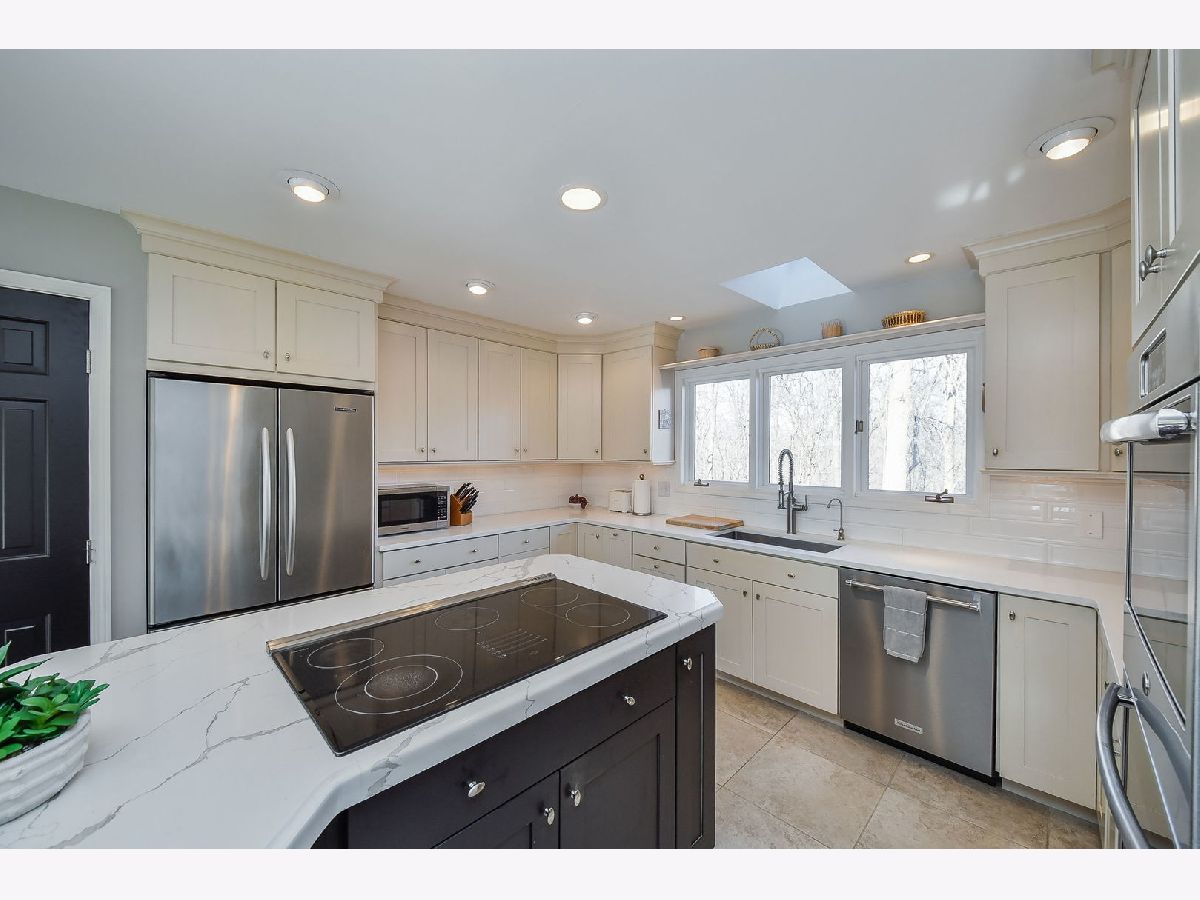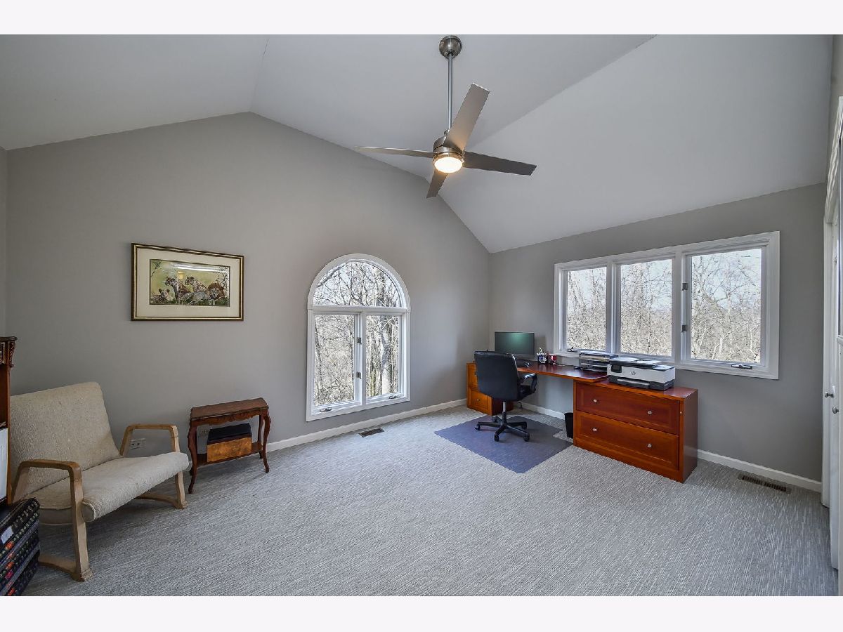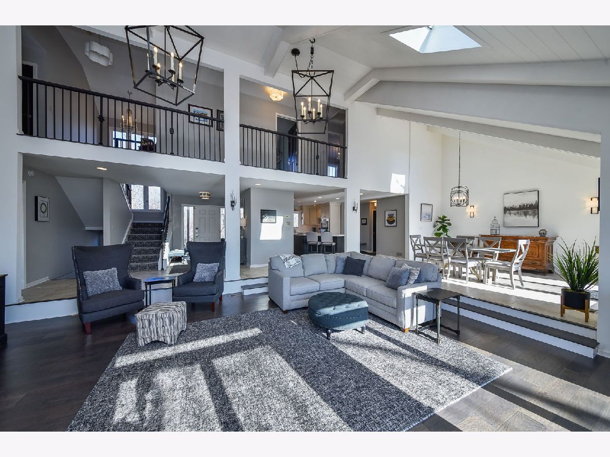 This is a rare opportunity to own one of the most coveted locations in Wildrose Springs, perched high on the hill with sweeping lake views and a serene forest backdrop. From the moment you arrive, the setting alone sets this home apart-offering a level of privacy and natural beauty that's hard to find. Step inside to a dramatic, light-filled great room and dining area with soaring ceilings that create an open, airy feel. This impressive space seamlessly connects to the expansive, fully updated kitchen-perfect for both everyday living and entertaining. On the opposite side, a wall of windows and doors invite you out to the elevated deck, that spans the entire length of the house where you can relax and take in the peaceful surroundings and picturesque views. The first-floor primary suite is a true retreat, featuring skylights that fill the room with natural light, two spacious closets, and tranquil views of the landscape. Upstairs, you'll find three additional generously sized bedrooms and a full bath, offering plenty of space for family or guests. The walkout lower level expands your living space even further, designed for both comfort and versatility. It includes a large family room, an additional bedroom and full bath, plus a dedicated office or workout space. French doors open to a lower patio, creating yet another inviting outdoor area to enjoy. With over 4,100 square feet of finished living space, multiple indoor and outdoor gathering areas, and a setting that blends elevated views with wooded privacy, surrounded by forest preserve to the south and the west this home truly offers the best of both worlds. Single detached home with HOA that covers snow removal, front landscaping and exterior maintenance. If you've been searching for space, privacy, and a one-of-a-kind location-this is the one.