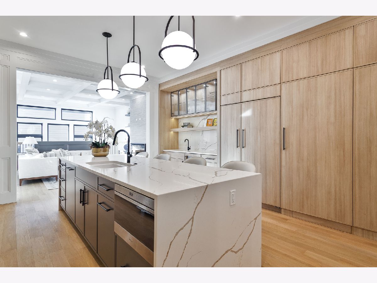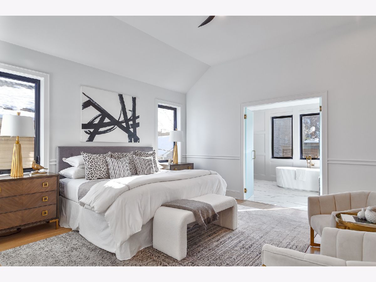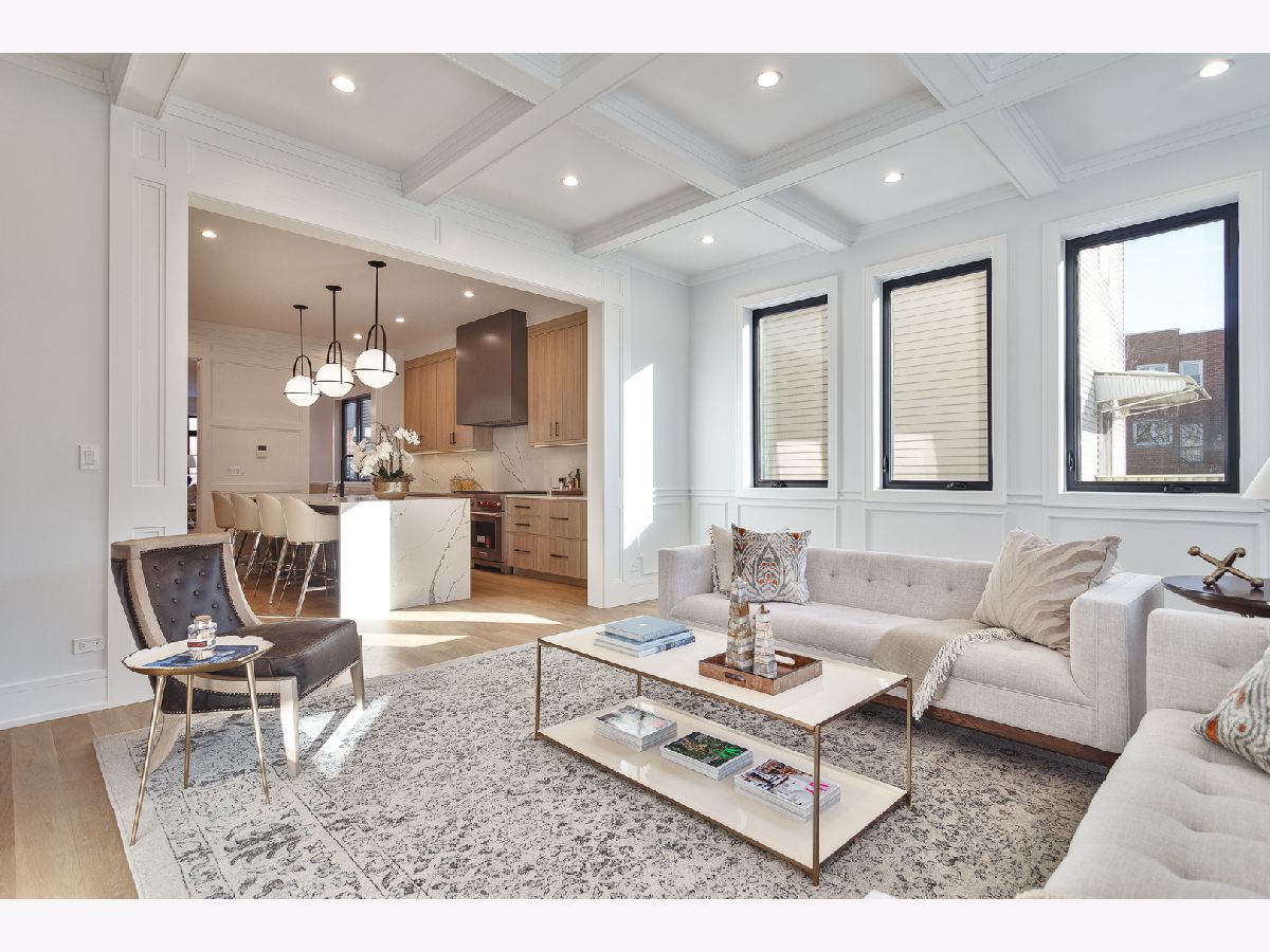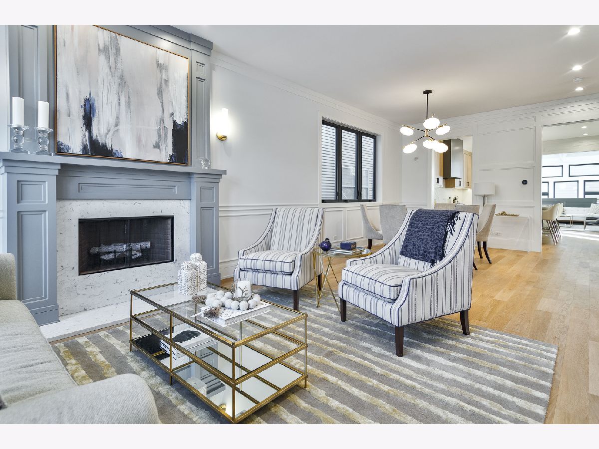 Exceptional 5 bed, 4.2 bath new construction single-family home in prime West Lakeview location. Great curb appeal with nice landscaping and brick paver walkway. Striking facade with Hardie lap + board and batten siding, limestone front steps, and modern black accents. Spacious floor plan with great attention given to fixtures and finish materials. Combined living/dining room features floor-to-ceiling windows offering ample natural light, beautiful custom millwork, and fireplace. Chef quality kitchen equipped with professional grade Wolf/Sub-Zero appliances, large island with waterfall counter and bar seating, contemporary slim shaker cabinetry with under counter lighting, stunning quartz counters and backsplash, butler pantry with open shelving and glass uppers, and walk-in pantry. Adjoining family room highlighted by coffered ceilings features second fireplace flanked by custom built-ins, and large windows overlooking the backyard. Rear mudroom with built-in storage. Spacious primary bedroom includes tray ceiling and custom millwork, two walk-in closets with custom organizers, and spa like ensuite bath with freestanding soaking tub, frameless glass steam shower, vanity with dual sinks and quartz countertops, and heated flooring. Two additional bedrooms with ensuite baths, and laundry with washer/dryer complete the upper level. Finished basement with radiant heated flooring throughout includes recreation room with wet bar + beverage center, two guest bedrooms - one with ensuite full bath, half bath, storage, mechanicals, and second laundry with washer/dryer, storage, and sink. Statement lighting, 5 1/4" white oak flooring, designer fixtures and finishes, wood railings with metal balusters, built-out closets, and skylights. Enclosed backyard with brick paver patio. Detached two-car garage featuring roof deck with pergola, 2 electric car charging plugs, and drywalled interior. Awesome location, steps to all that Lakeview has to offer! Easy access to all your favorite spots for food, entertainment and shopping. Conveniently located by parks and public transportation.