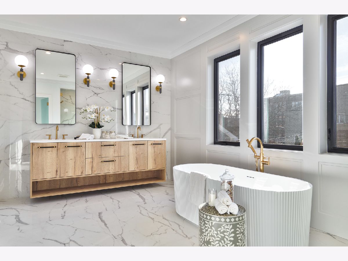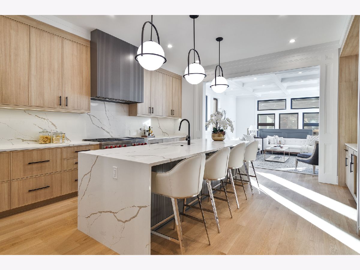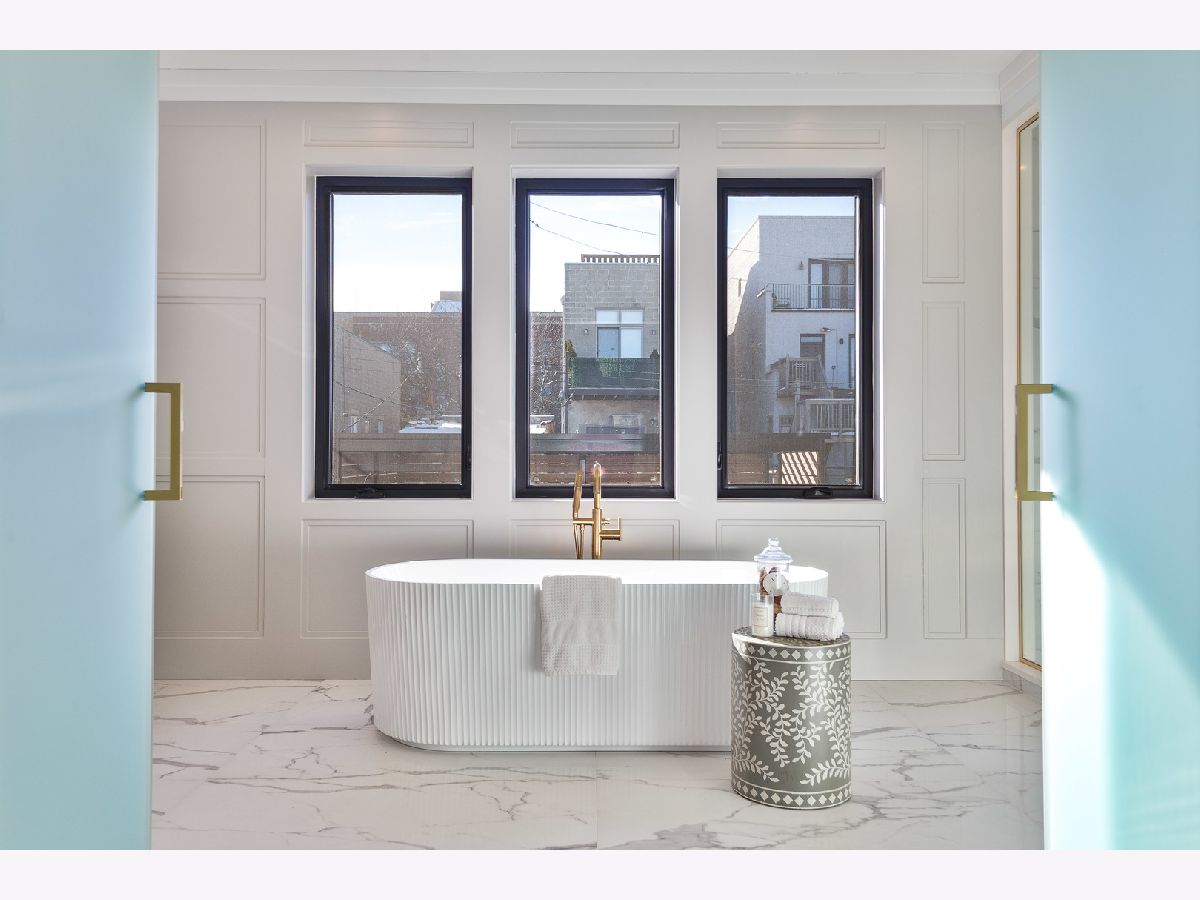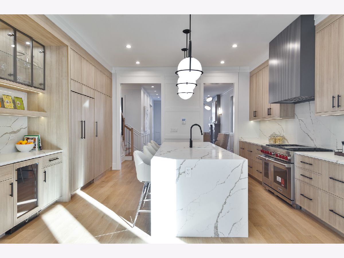 Exceptional 5 bed, 4.2 bath new construction single-family home in prime West Lakeview location. Great curb appeal with nice landscaping and brick paver walkway. Striking facade with Hardie lap + board and batten siding, limestone front steps, and modern black accents. Spacious floor plan with great attention given to fixtures and finish materials. Combined living/dining room features floor-to-ceiling windows offering ample natural light, beautiful custom millwork, and fireplace. Chef quality kitchen equipped with professional grade Wolf/Sub-Zero appliances, large island with waterfall counter and bar seating, contemporary slim shaker cabinetry with under counter lighting, stunning quartz counters and backsplash, butler pantry with open shelving and glass uppers, and walk-in pantry. Adjoining family room highlighted by coffered ceilings features second fireplace flanked by custom built-ins, and large windows overlooking the backyard. Rear mudroom with built-in storage. Spacious primary bedroom includes tray ceiling and custom millwork, two walk-in closets with custom organizers, and spa like ensuite bath with freestanding soaking tub, frameless glass steam shower, vanity with dual sinks and quartz countertops, and heated flooring. Two additional bedrooms with ensuite baths, and laundry with washer/dryer complete the upper level. Finished basement with radiant heated flooring throughout includes recreation room with wet bar + beverage center, two guest bedrooms - one with ensuite full bath, half bath, storage, mechanicals, and second laundry with washer/dryer, storage, and sink. Statement lighting, 5 1/4" white oak flooring, designer fixtures and finishes, wood railings with metal balusters, built-out closets, and skylights. Enclosed backyard with brick paver patio. Detached two-car garage featuring roof deck with pergola, 2 electric car charging plugs, and drywalled interior. Awesome location, steps to all that Lakeview has to offer! Easy access to all your favorite spots for food, entertainment and shopping. Conveniently located by parks and public transportation.