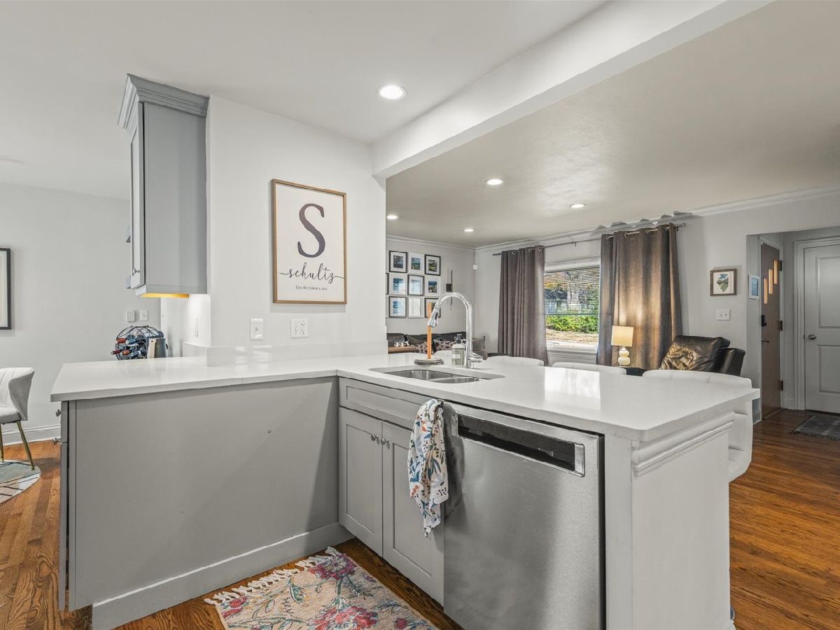 Wow! Prepare to be impressed. This move-in ready home blends timeless charm with modern comfort. Enter into a bright, open space filled with thoughtful updates. The stunning kitchen features custom gray shaker-style, soft-close cabinets that extend to the ceiling, pull-out drawers, a pull-out garbage and recycling bin, under-cabinet lighting, and elegant white quartz countertops with a breakfast bar for seating. Enjoy the GE stainless-steel appliances and a lighted pantry for added convenience. The main level highlights gorgeous original hardwood floors, crisp white trim and paneled doors, crown molding, and a spacious semi-open concept living area. Newer first-floor windows, garage door, and storm door. Two updated full baths feature modern finishes and fixtures. The hall bath includes a shower-tub combo, while the new en-suite bath boasts a marble, walk-in shower and vanity top. The fully finished lower level is a showstopper, offering an expansive additional living space with newer LVP flooring, a dry bar with cabinetry, and a large laundry room complete with built-in cabinets and shelving. The basement has also been professionally waterproofed for additional peace of mind. New Stainless-steel refrigerator, Dishwasher (2024), Hot water tank (2022), furnace (2018), electrical upgrades, and roof (2020). Property being sold as-is.