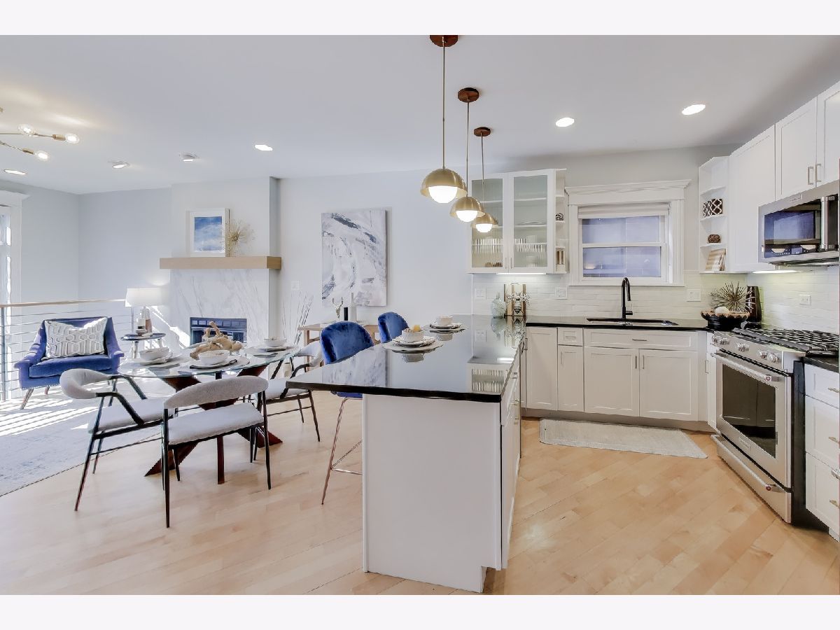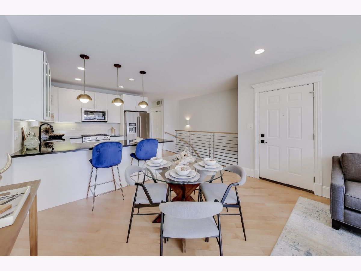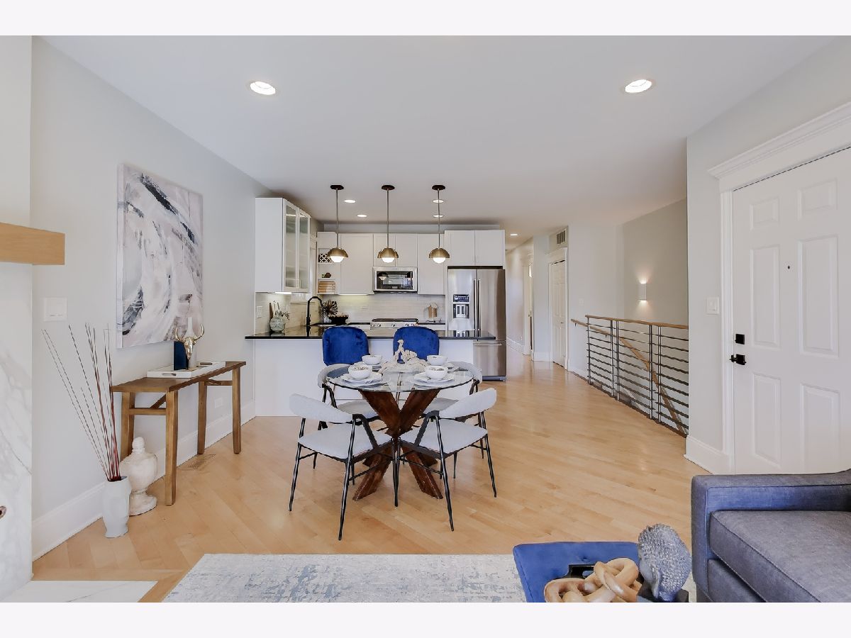 Welcome to this fantastic south facing duplex in an unbeatable Bucktown location. This incredibly bright 3BR/3BA home is in an intimate 6-unit all-brick building, with no split faced block. As you step foot in this spacious condo, you're immediate greeted with an open living/dining room that's absolutely flooded with light. The open kitchen boasts KitchenAid stainless steel appliances, gorgeous white cabinets with stylish brass & black fixtures, a designer tile backsplash, granite countertops, eat-in peninsula and a large pantry. There are 2 bedrooms on the upper level that includes a large primary suite that can easily accommodate a king-sized bedroom set, and a natural stone bathroom with double vanities and a walk-in shower. The 2nd bedroom is very spacious and right next door for that peace of mind if you were to use it as your child's bedroom or nursery. The convenient 2nd full bathroom is also nicely finished with Grohe fixtures and granite. The MASSIVE lower level family room with soaring ceilings & lovely built-in shelving is great for that big comfortable sectional couch, giant TV, and even a separate play space for the little ones. The 3rd bedroom is a great size and perfect for the guest room and office combo. The 3rd full bathroom is also nicely appointed. Storage is not an issue here with a linen closet and a coat closet on the main level. The lower level features 3, yes THREE, additional closet along with a laundry room and extra storage room in the common area. Go ahead, go to Costco all you want! Two fire places, a central vacuum system, a back balcony, and tandem TWO CAR PARKING (tandem, one carport, one outdoor parking space) make this The One you've been searching for. Steps to the 606 Trail, Metra, Blue Line El, dining, shops, and nightlife. Pulaski International School district (an authorized International Baccalaureate school).