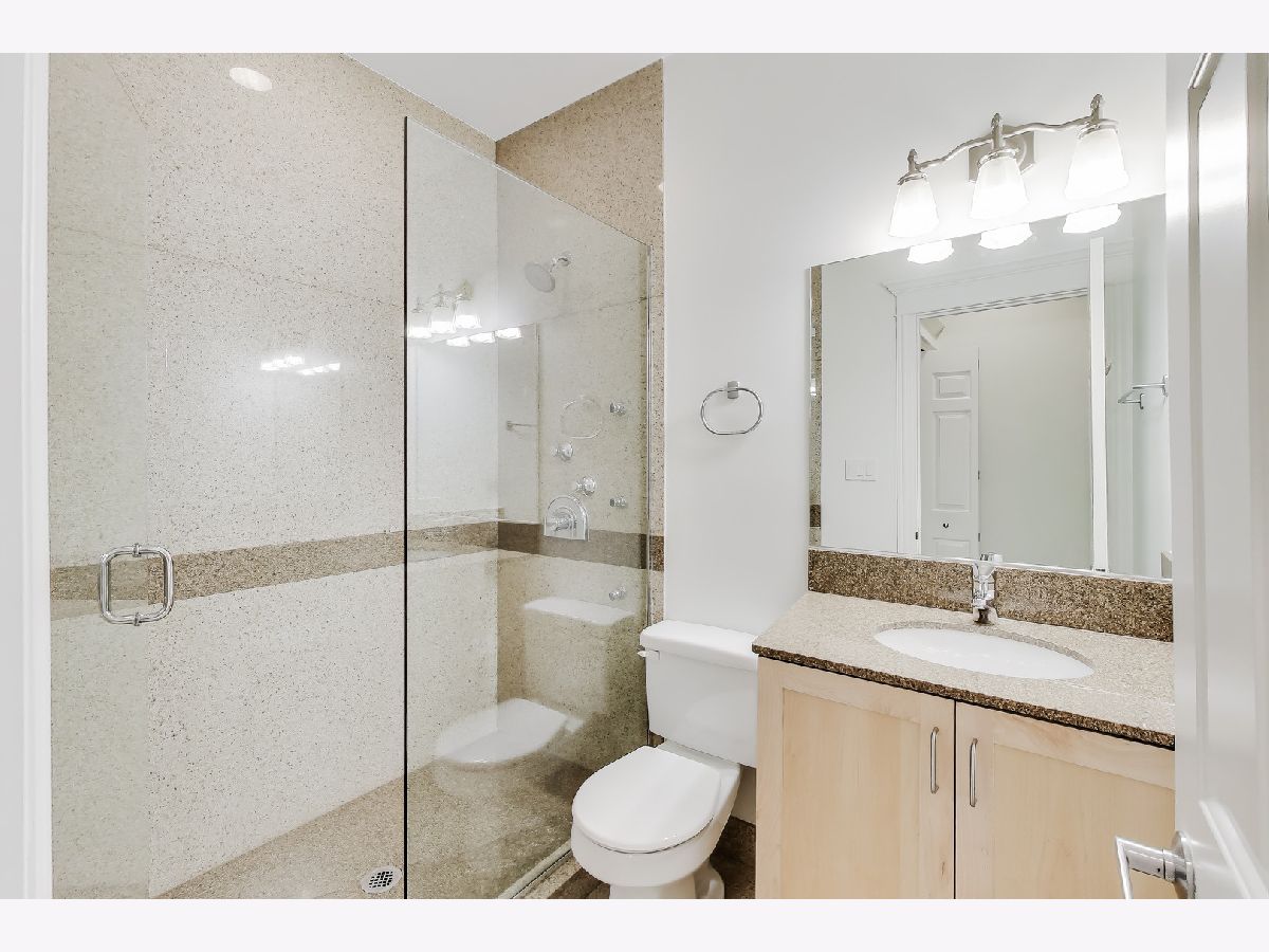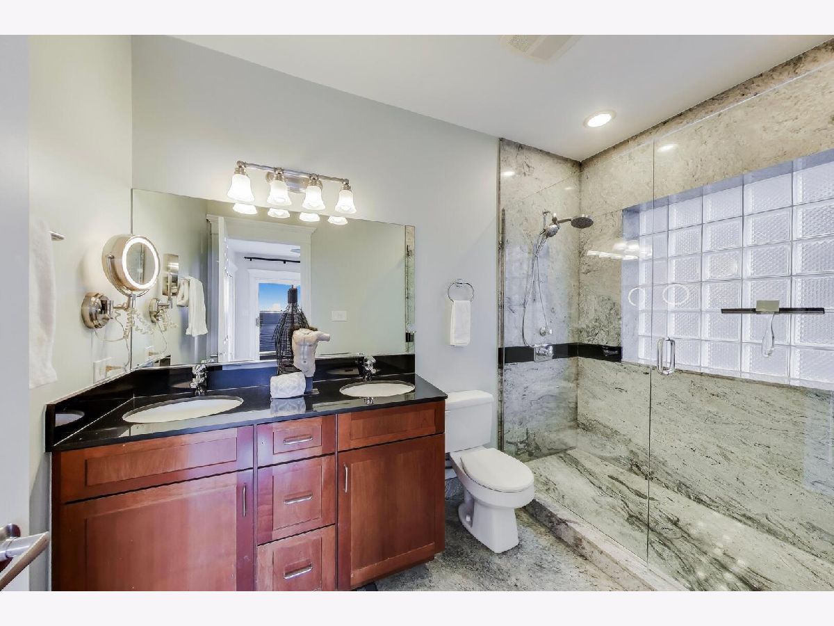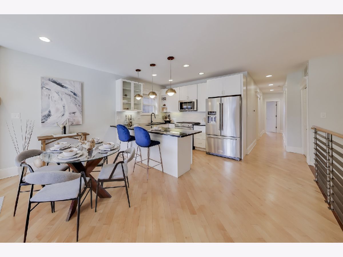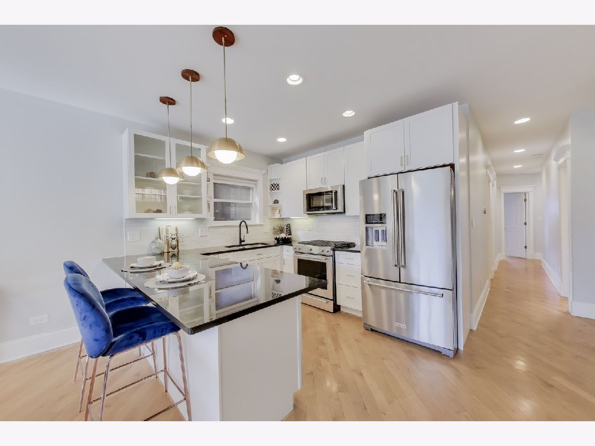 Welcome to this fantastic south facing duplex in an unbeatable Bucktown location. This incredibly bright 3BR/3BA home is in an intimate 6-unit all-brick building, with no split faced block. As you step foot in this spacious condo, you're immediate greeted with an open living/dining room that's absolutely flooded with light. The open kitchen boasts KitchenAid stainless steel appliances, gorgeous white cabinets with stylish brass & black fixtures, a designer tile backsplash, granite countertops, eat-in peninsula and a large pantry. There are 2 bedrooms on the upper level that includes a large primary suite that can easily accommodate a king-sized bedroom set, and a natural stone bathroom with double vanities and a walk-in shower. The 2nd bedroom is very spacious and right next door for that peace of mind if you were to use it as your child's bedroom or nursery. The convenient 2nd full bathroom is also nicely finished with Grohe fixtures and granite. The MASSIVE lower level family room with soaring ceilings & lovely built-in shelving is great for that big comfortable sectional couch, giant TV, and even a separate play space for the little ones. The 3rd bedroom is a great size and perfect for the guest room and office combo. The 3rd full bathroom is also nicely appointed. Storage is not an issue here with a linen closet and a coat closet on the main level. The lower level features 3, yes THREE, additional closet along with a laundry room and extra storage room in the common area. Go ahead, go to Costco all you want! Two fire places, a central vacuum system, a back balcony, and tandem TWO CAR PARKING (tandem, one carport, one outdoor parking space) make this The One you've been searching for. Steps to the 606 Trail, Metra, Blue Line El, dining, shops, and nightlife. Pulaski International School district (an authorized International Baccalaureate school).